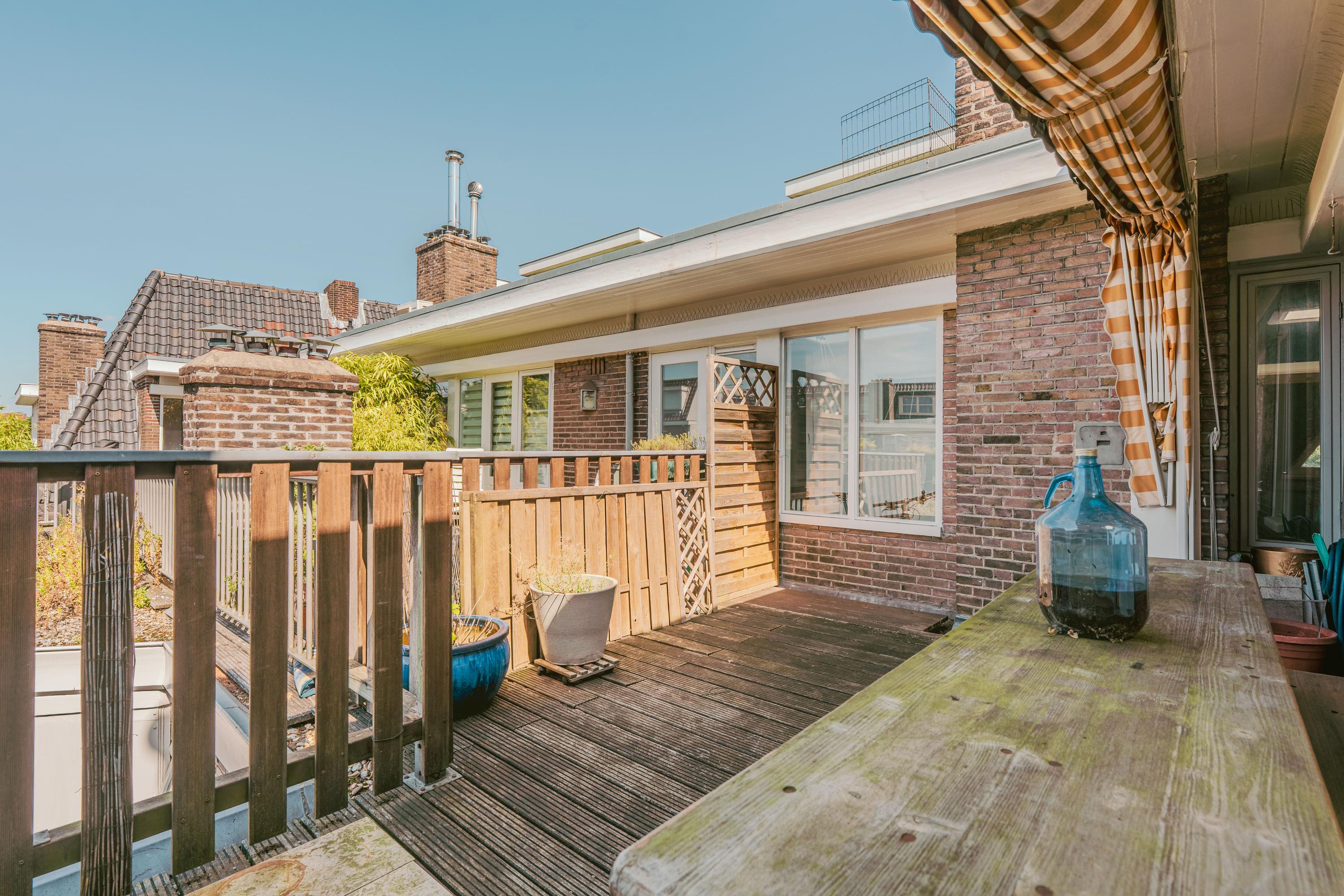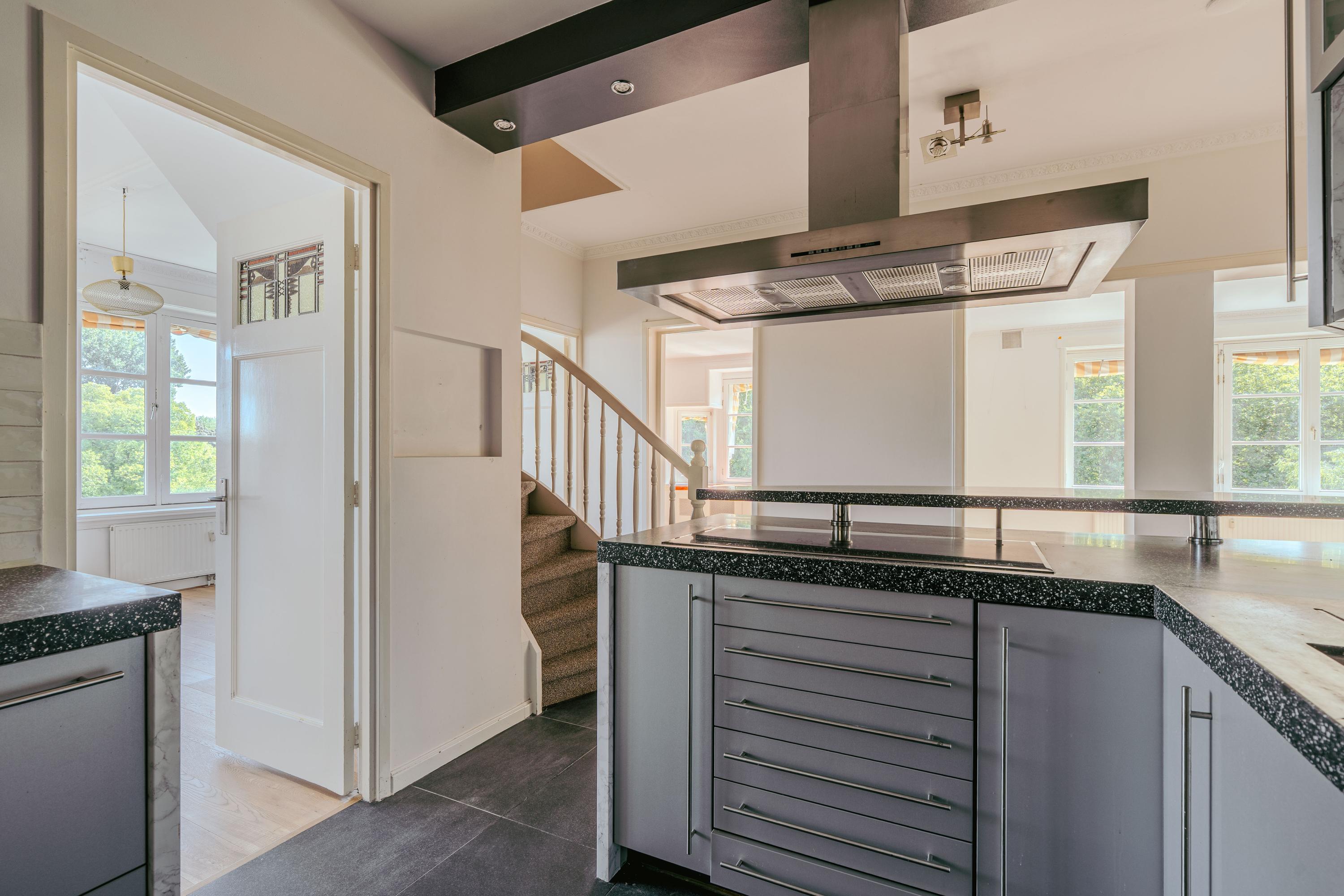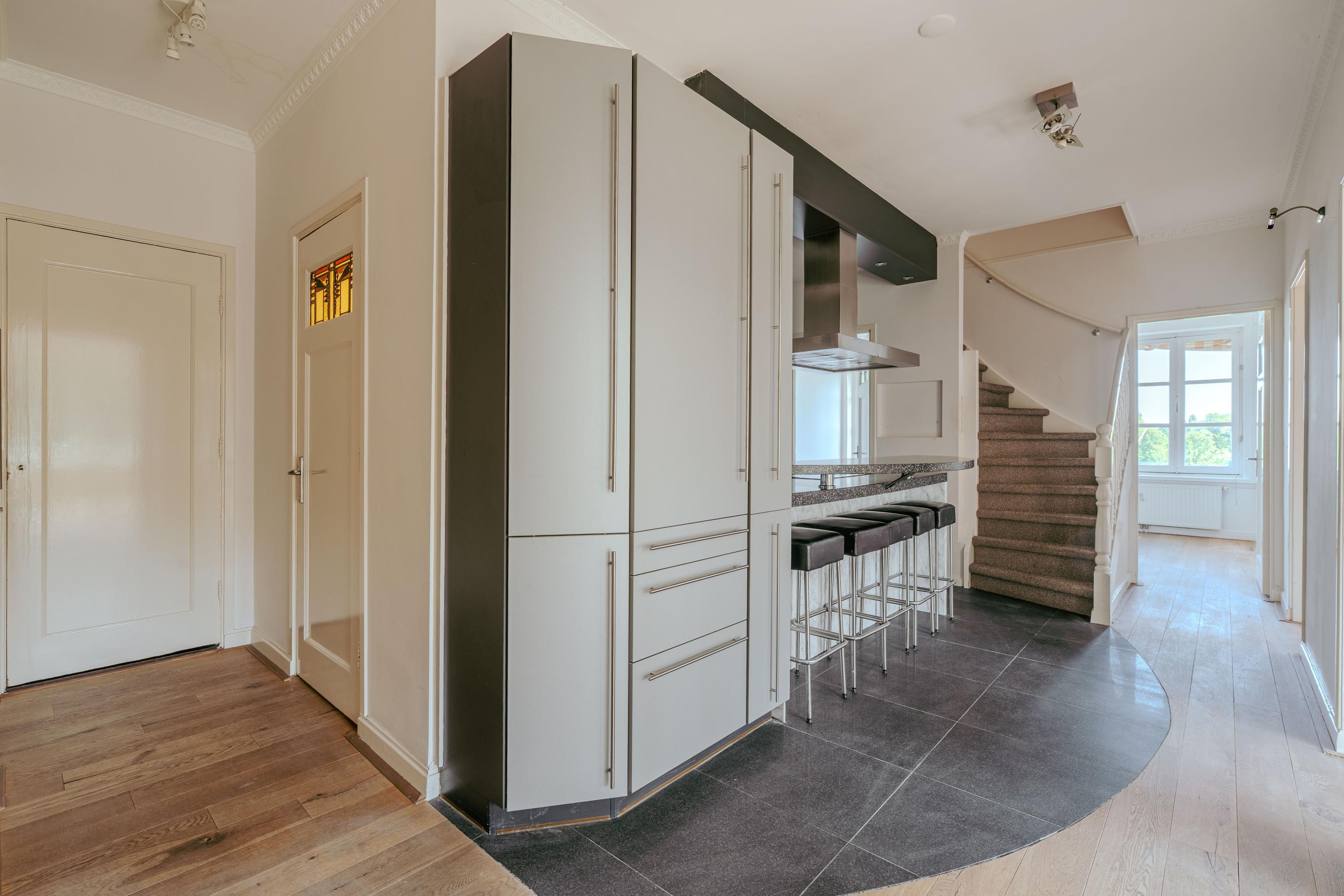 A unique feature is the separate studio on this floor, complete with its own kitchen and bathroom, making it ideal as a guest suite, nanny quarters, or an independent workspace. At the rear is the delightful roof terrace, facing west. Here you can enjoy peace and quiet while basking in the afternoon and evening sun, with views over the surrounding greenery.