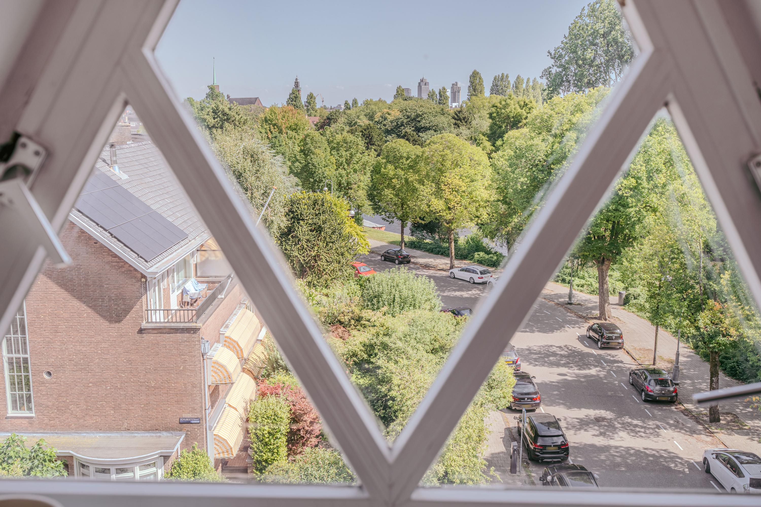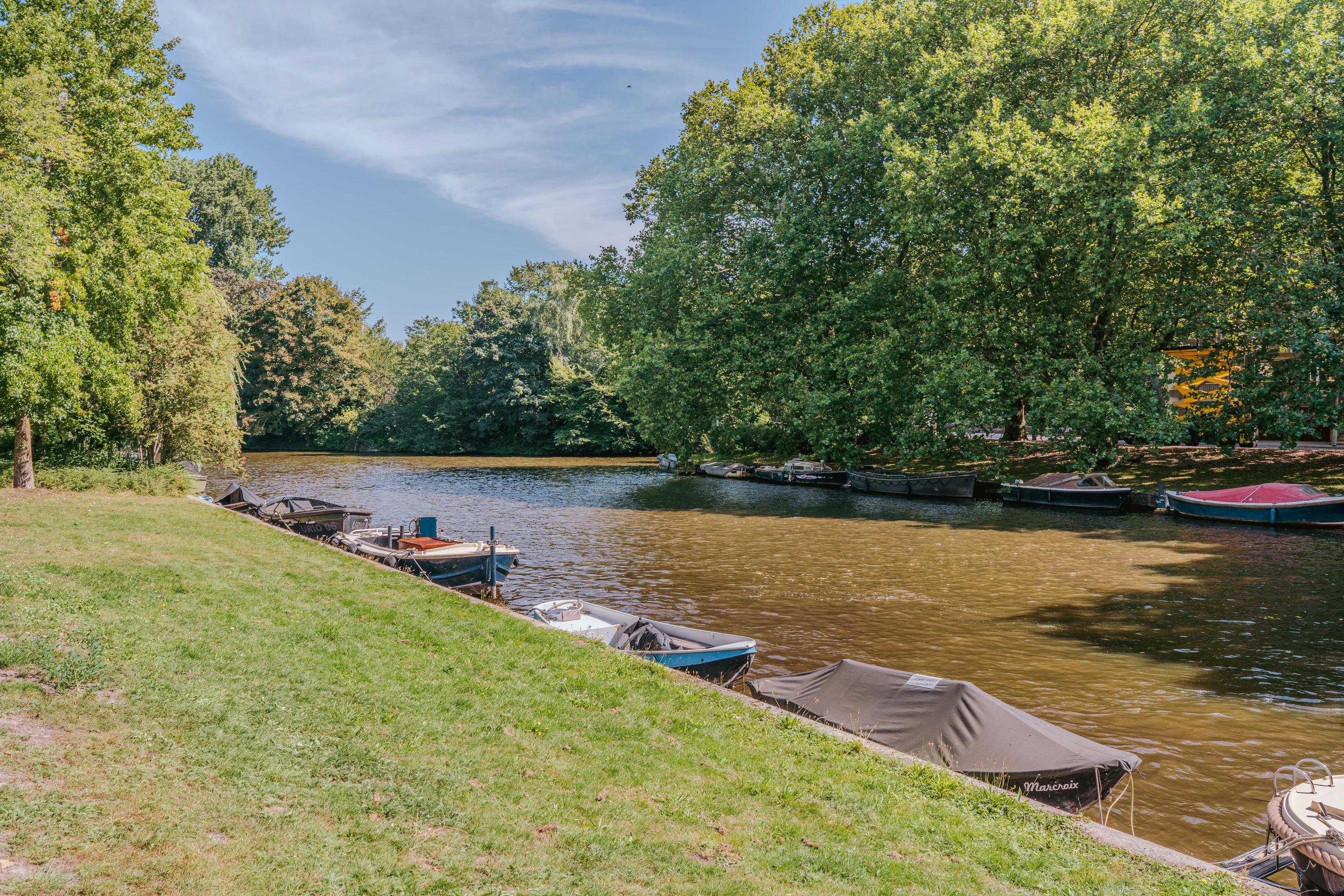 In a prime location in Amsterdam South, directly on the water and overlooking the Beatrixpark, lies this corner apartment of approximately 184 m². The apartment is spread over the third and fourth floors and features five bedrooms, including a studio with its own kitchen, three bathrooms, and a west-facing roof terrace.