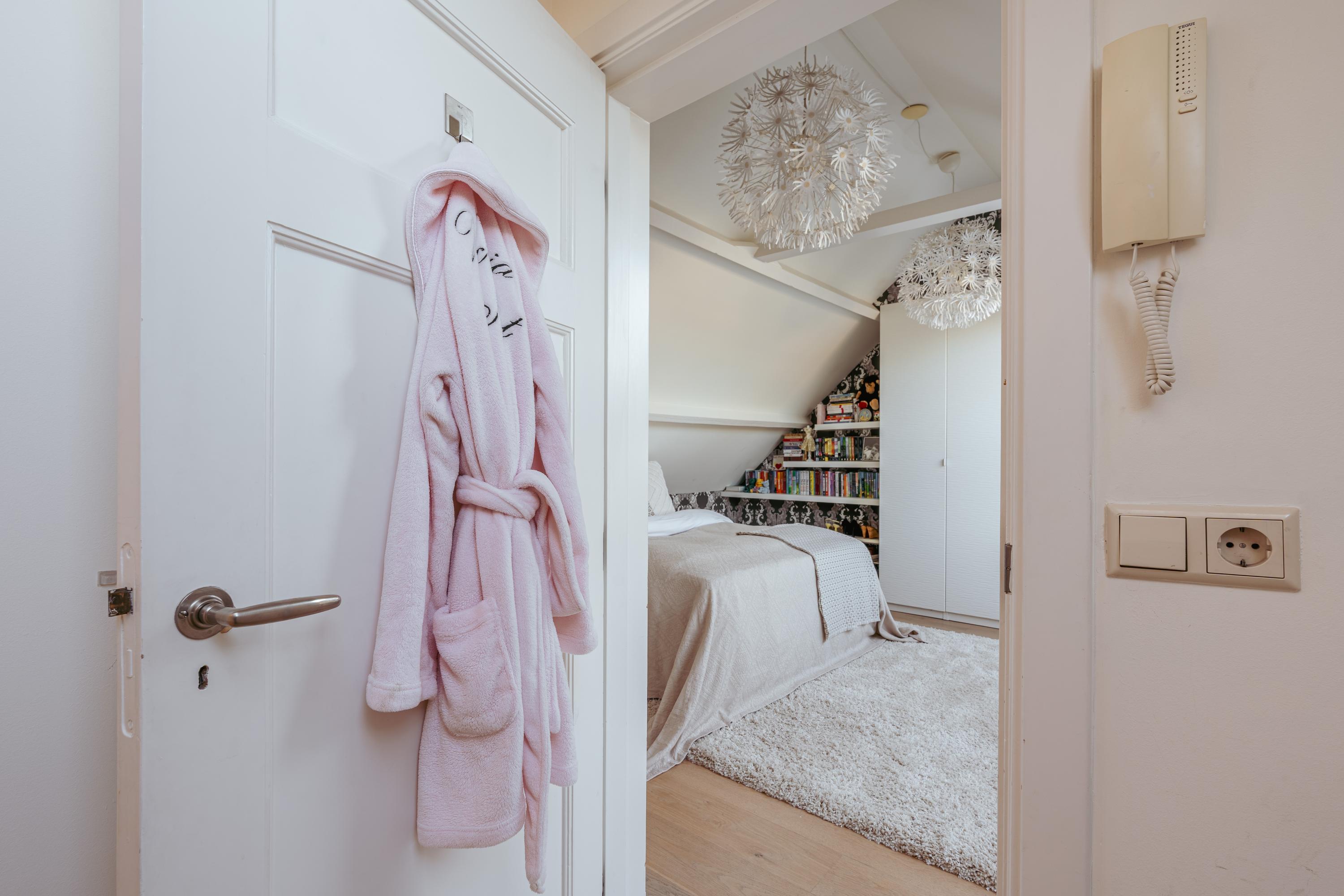 Landing with access to the third bedroom at the rear. There is also a dressing room with practical and beautifully finished built-in wardrobes, which can easily be converted into an additional bedroom or workspace. At the front is the fourth bedroom, with access to a particularly deep and wide balcony of approximately 13 m². This property is uniquely positioned on the street, enjoying no direct overlooking from neighbouring properties, ensuring additional privacy.