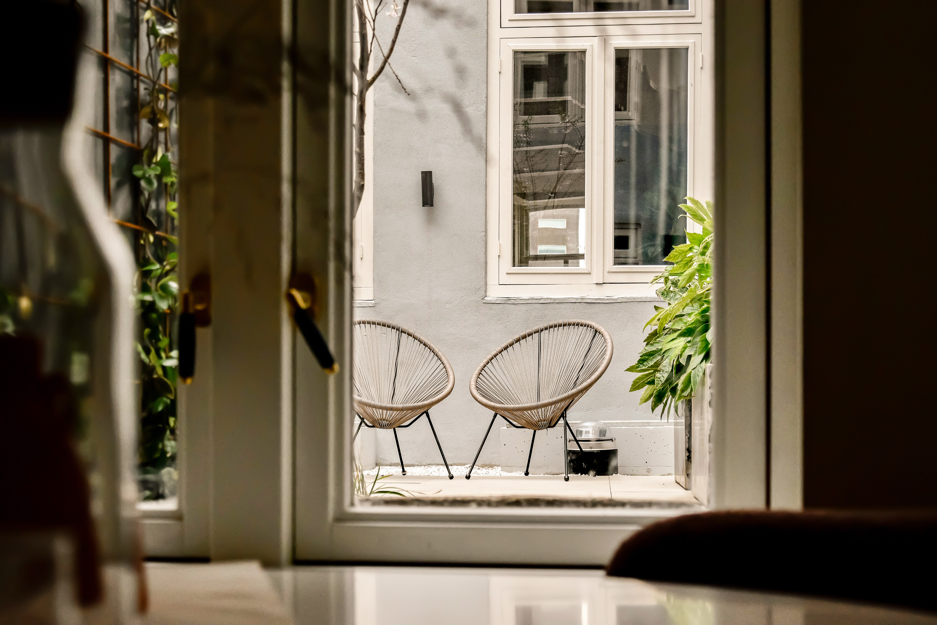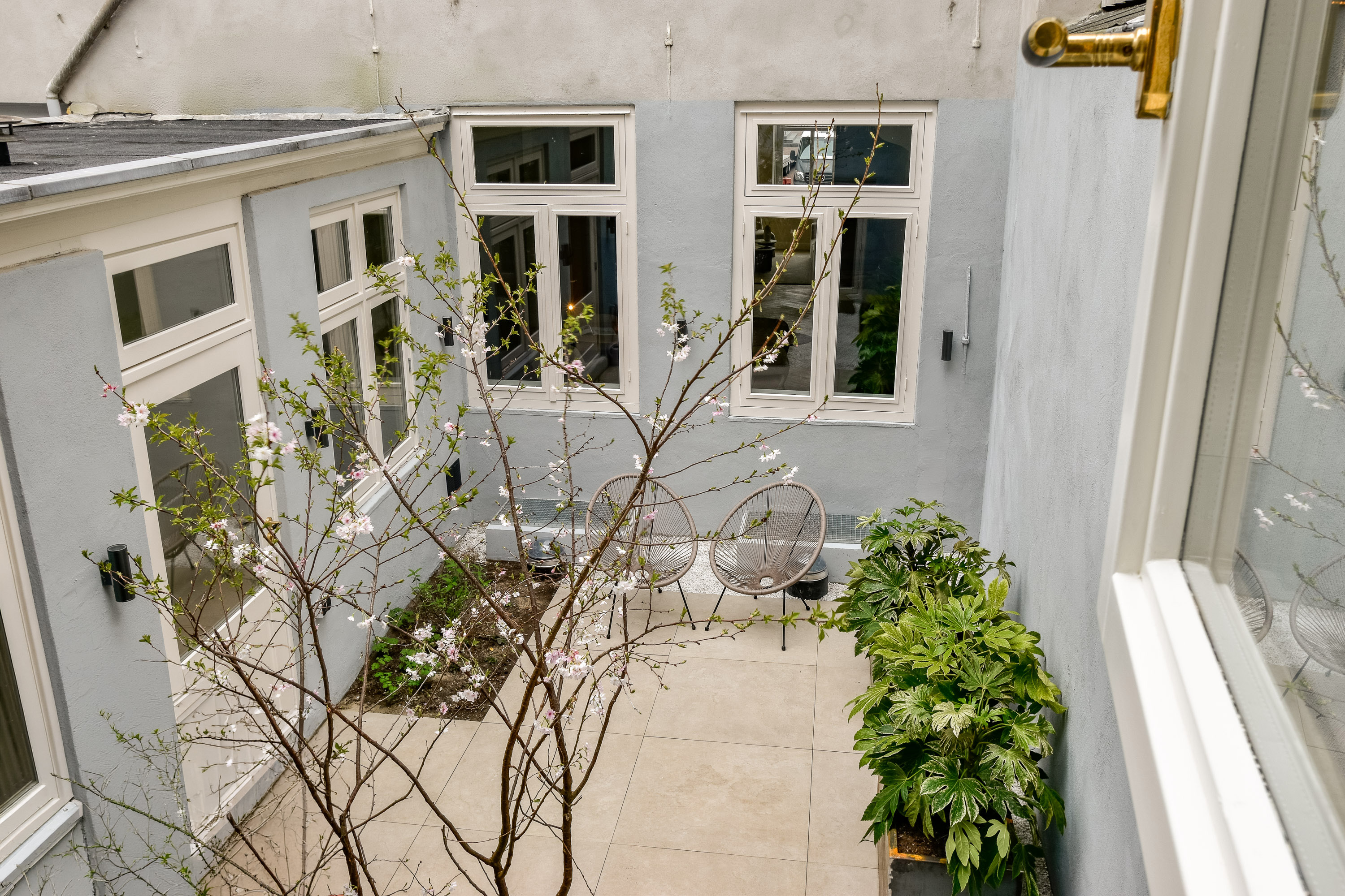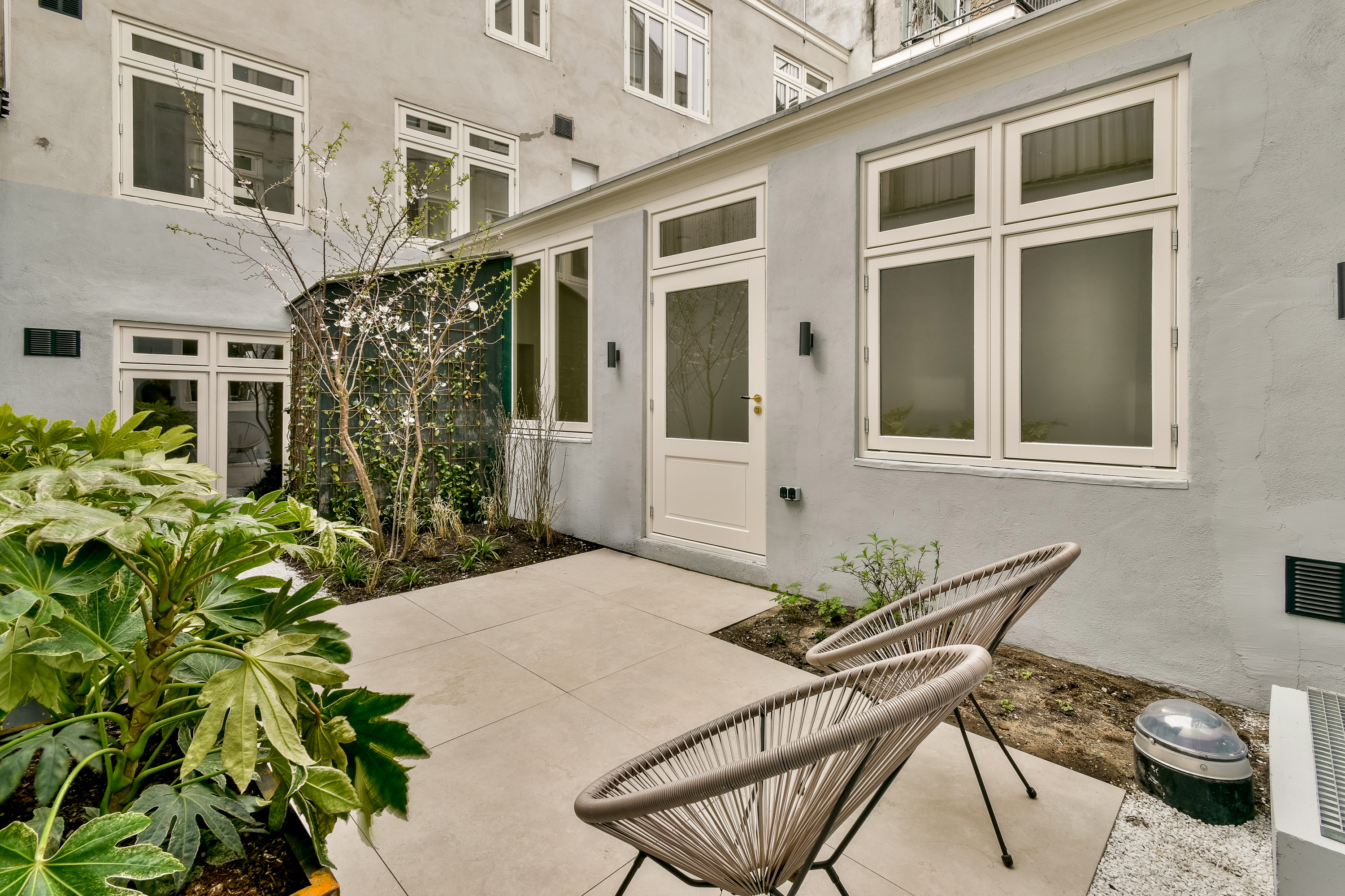 The entrance is located on the ground floor. Here you step into a bright and spacious living area, where a generous lounge and dining space seamlessly blend together. The modern open kitchen connects the two areas and is fitted with a cooking island and high-quality built-in appliances—a true eye-catcher for cooking enthusiasts. From the dining area, large French doors open onto the charming (inner) garden, a sheltered private retreat in the heart of the home, away from the city bustle. Here, you can enjoy a wonderful indoor-outdoor living experience. At the rear, there is an additional room, accessible both from the garden and via the hallway next to the dining room. This space features a second kitchen and therefore offers numerous possibilities, such as a home office, guest accommodation, or hobby room. Ample built-in cupboards on this floor ensure sufficient storage space.