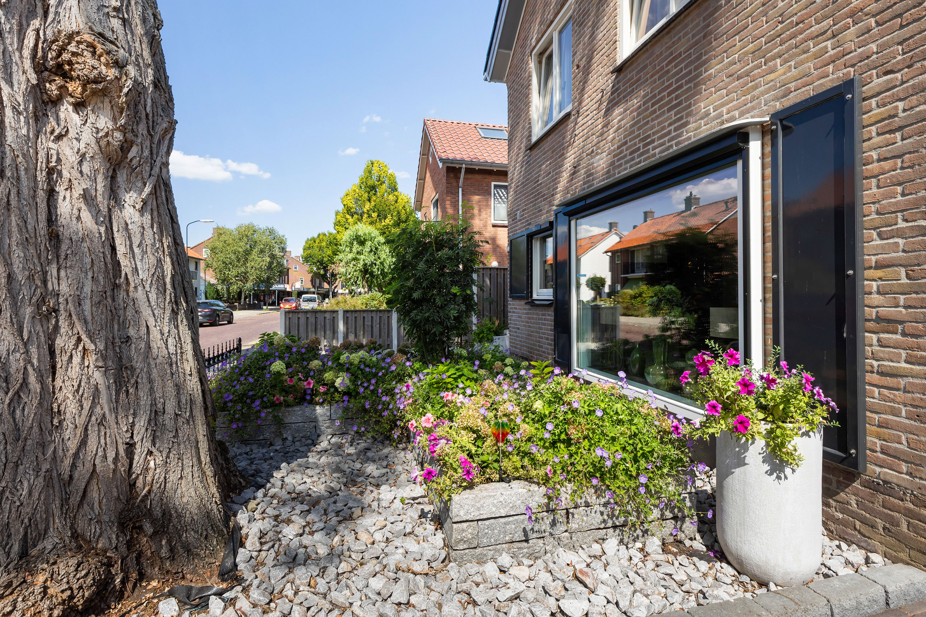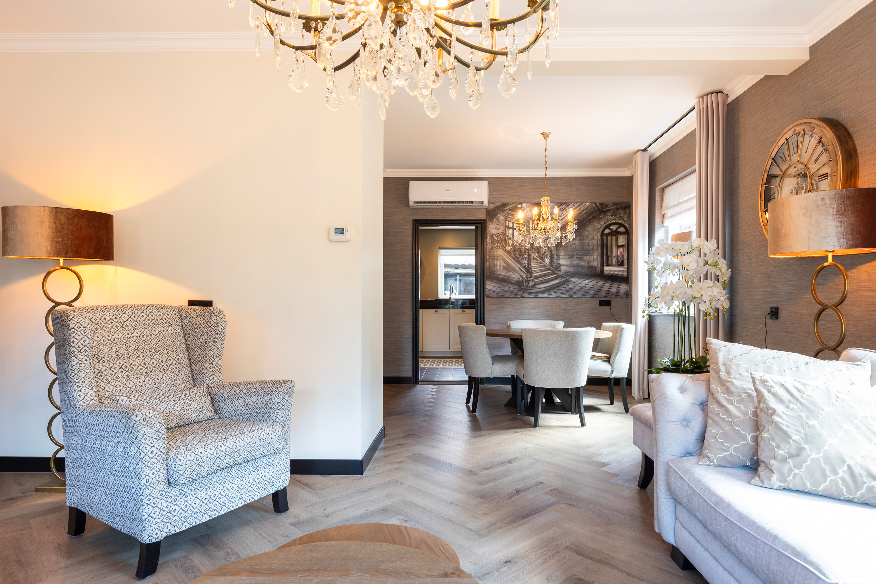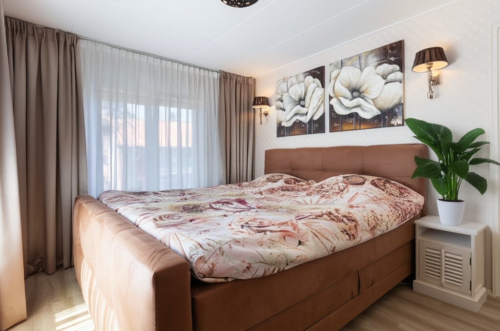 Detached house Apeldoorn offers an elegant combination of timeless character and contemporary comfort. This recently modernized home unfolds across a generous 120 m² living area, set on a 330 m² plot, and features four bedrooms and one bathroom. A notable sense of scale and refinement flows through each space, from the welcoming entrance to the spacious L-shaped living room, finished with white-washed oak patterned PVC flooring, crisp stucco, and impactful daylight from generous windows. Air conditioning and underfloor heating deliver year-round comfort, controlled via an efficient HR-combi boiler.