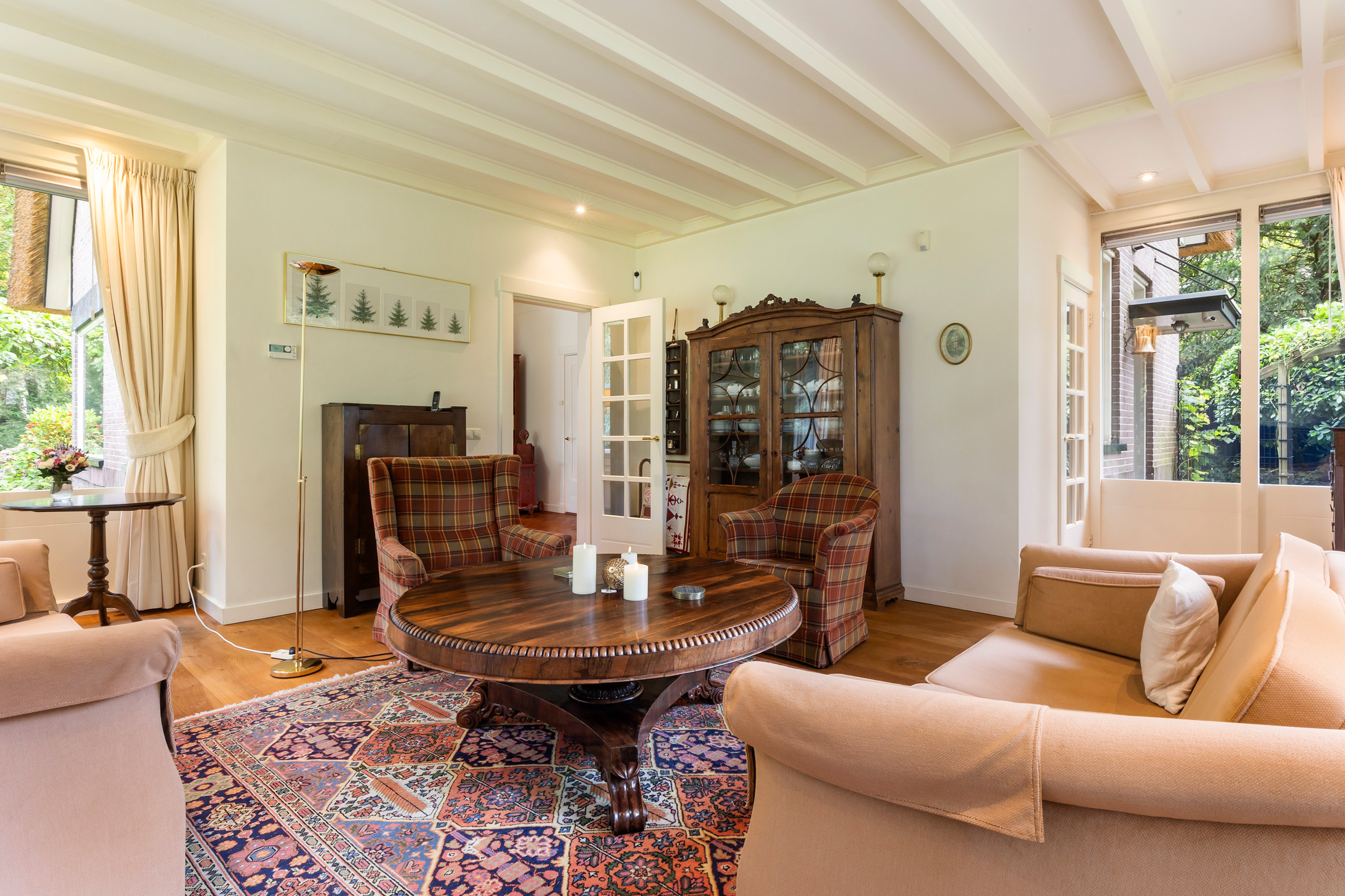 The villa exudes understated grandeur, enhanced by the distinctive windows with insulated glazing in wooden frames, the carefully restored wooden sills, and authentic architectural details that have been lovingly preserved. The garden lighting features original old lanterns from Paleis Het Loo – a unique and elegant accent that lends the property its special allure.
