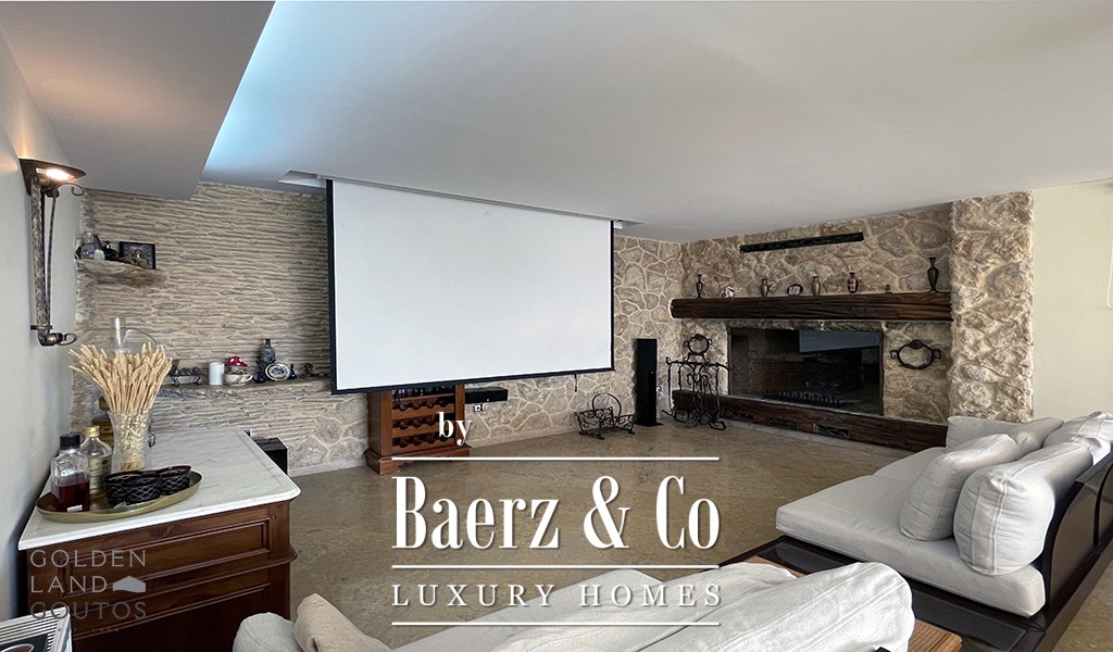 Expansive living spaces flow outward to a meticulously landscaped garden, offering a swimming pool and BBQ area that invite moments of leisure or convivial gatherings. The playroom and ample storage balance relaxation and practicality, and the underground parking accommodates between four and seven vehicles for added discretion. Beyond the gates, Anavissos rewards residents with tranquil beaches, acclaimed seafood restaurants, and immediate access to Athens via well-connected roads—a lifestyle marked by both coastal calm and cosmopolitan vitality. This villa for sale in Athens is a discerning choice for those seeking architecture, provenance, and contemporary comfort in a singular Mediterranean setting.