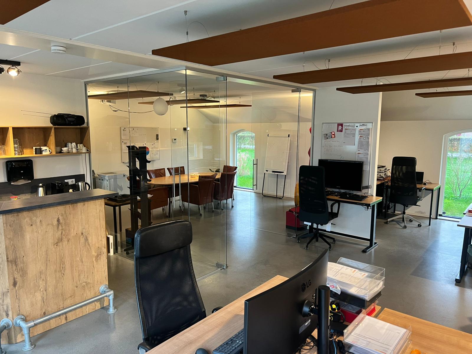 The office area has an additional heat pump (Innova 10 Hp monobloc) for rapid heating/cooling