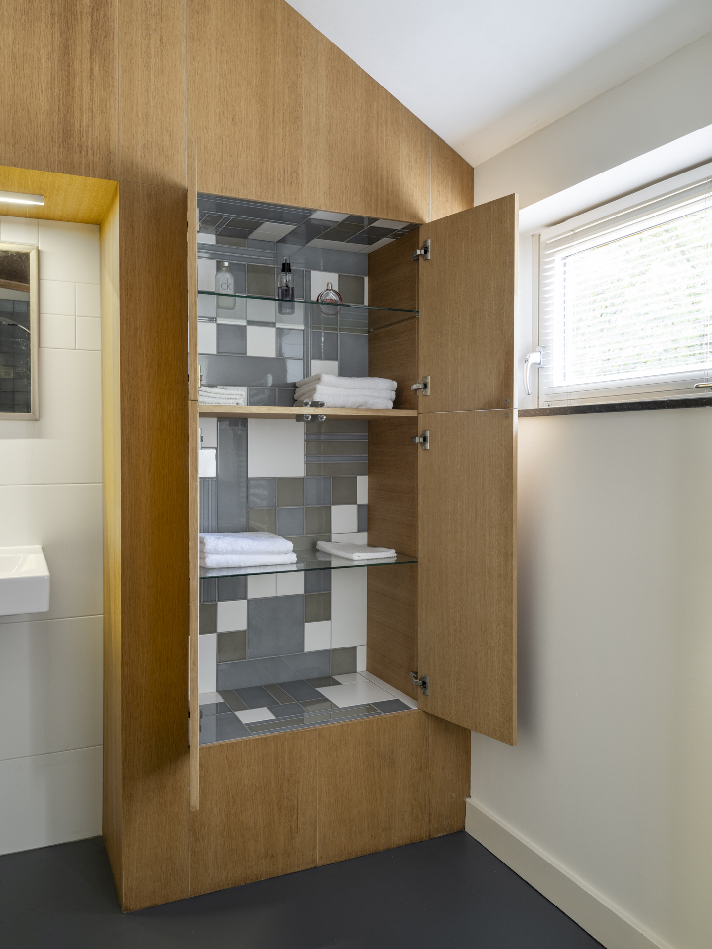 Hall with built-in cupboard and laundry area.