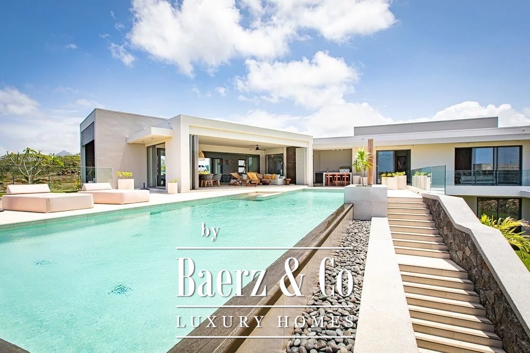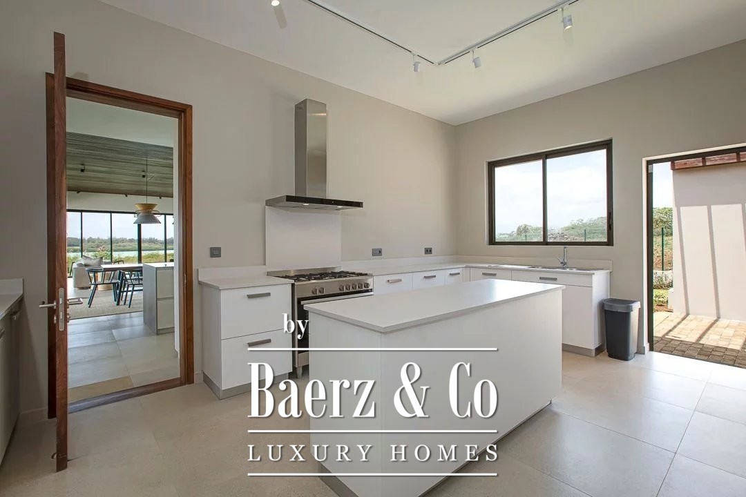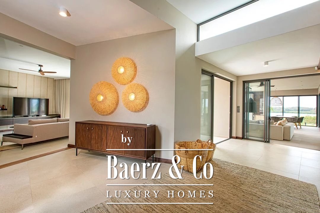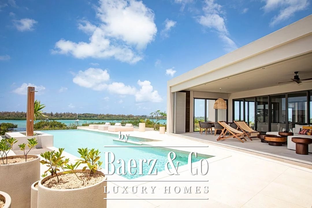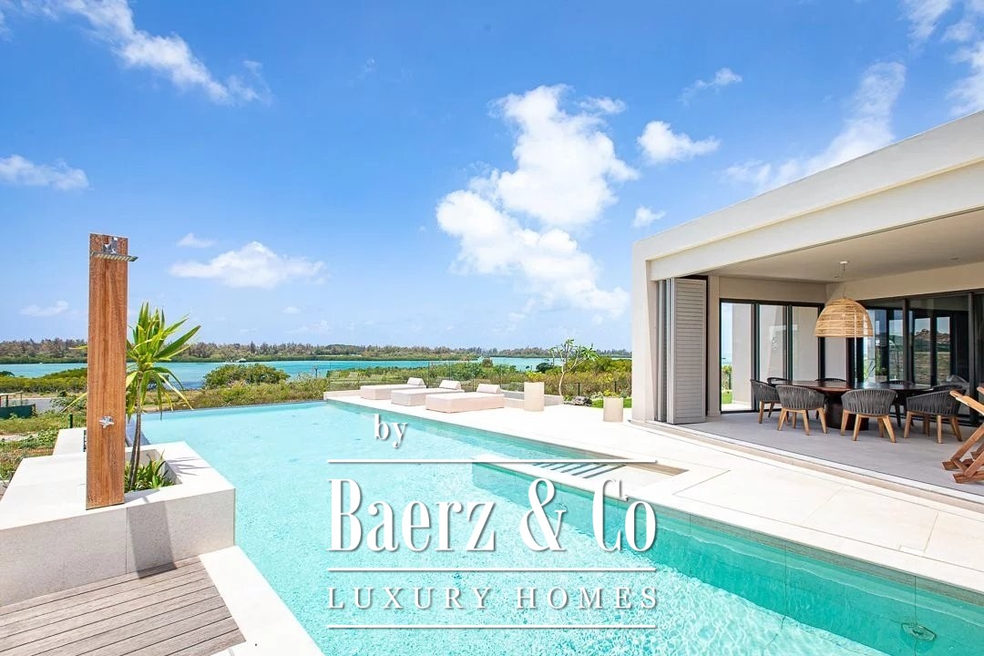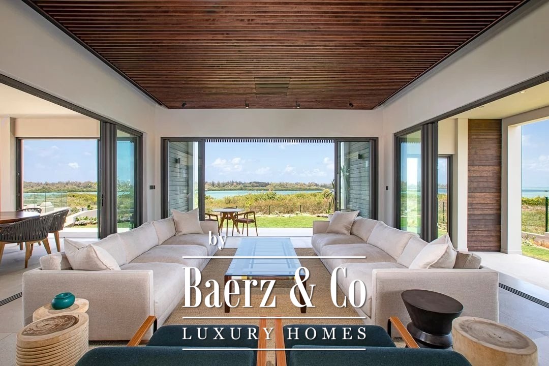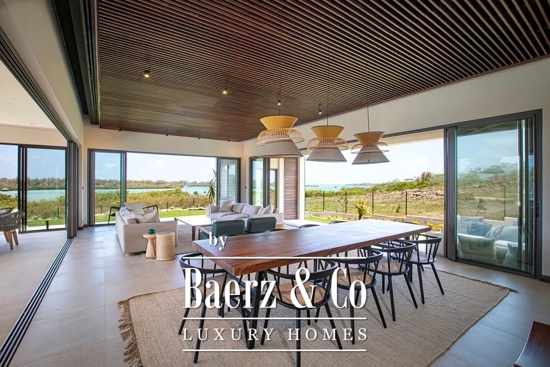 Villa Beau Champ with lagoon access sets a refined standard for coastal architecture on the east coast of Mauritius. This exceptional 445 m² villa, situated in the select East Rive neighborhood just steps from East Rive Park, is oriented to maximize the expansive panoramic views across the lagoon and towards Ile aux Cerfs. The villa is poised on a 2,079 m² elevated plot, offering both privacy and a direct connection to the water via a private pontoon.
