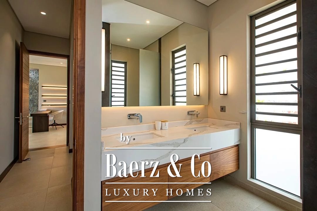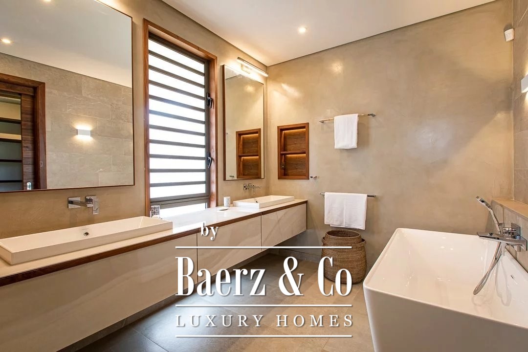 Amenities include full air conditioning, furnished interiors, barbecue, a security system with cameras, and a tropical garden that acts as a private sanctuary. The villa’s immediate access to the lagoon, proximity to amenities, and front-line sea location place it within easy reach of transport and the beach, yet it remains a true sanctuary within Beau Champ. Rare in the market, this luxury villa for sale in Beau Champ combines a sense of timeless design with effortless Mauritian living.