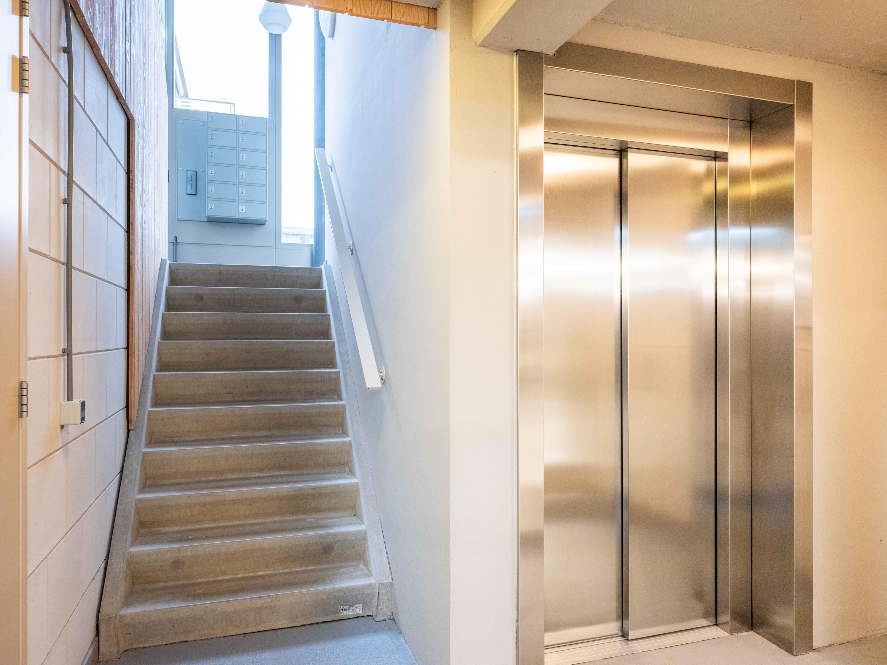 You enter the building with lift and staircase via the central entrance or the parking garage.