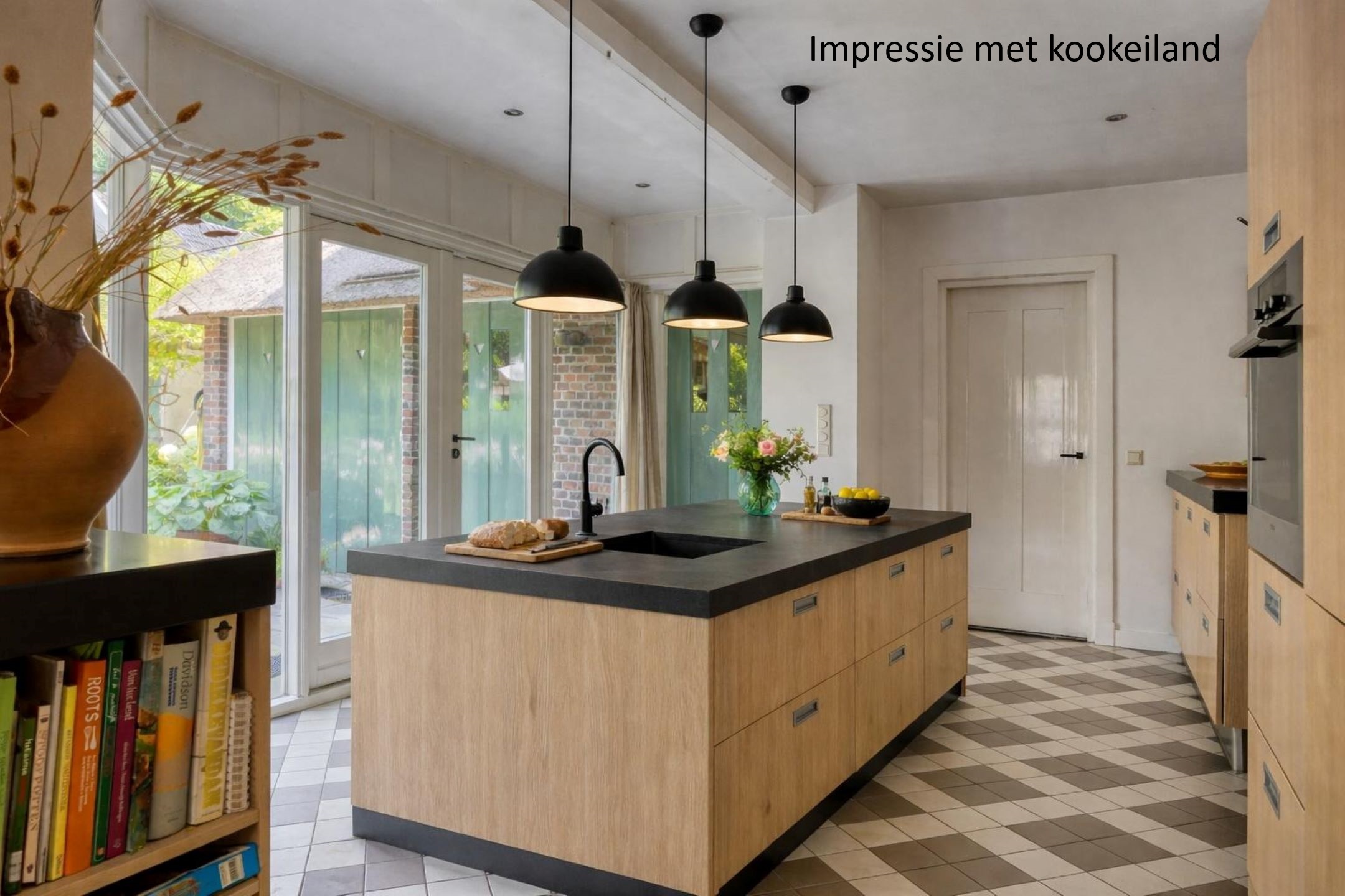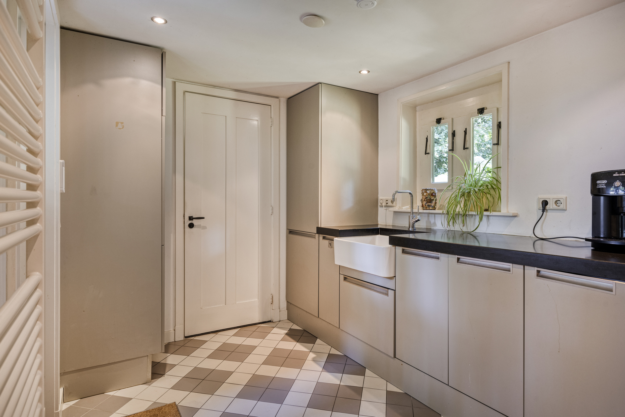 Via the spacious driveway with parking for several cars you reach the entrance of the villa. The hallway provides access to the living room and the spacious kitchen-diner. The kitchen is equipped with underfloor heating and various built-in appliances, including a Bosch combi microwave, AEG induction hob, dishwasher, fridge-freezer and recirculation hood. French doors provide direct access to the terrace and the lovely rear garden.