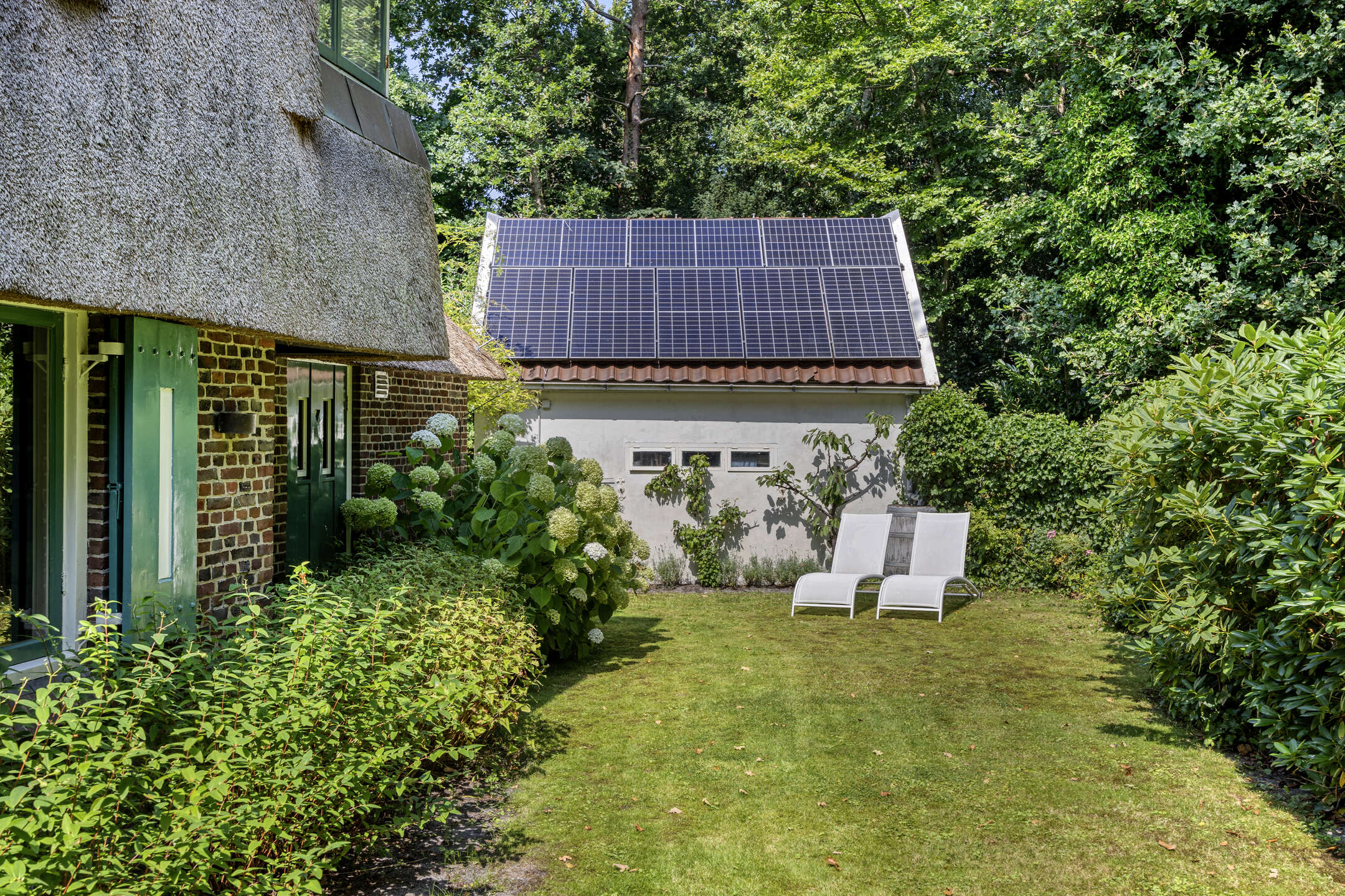 There is also a large garage/shed with 8 solar panels on the roof. A well pump provides efficient irrigation of the garden using groundwater.