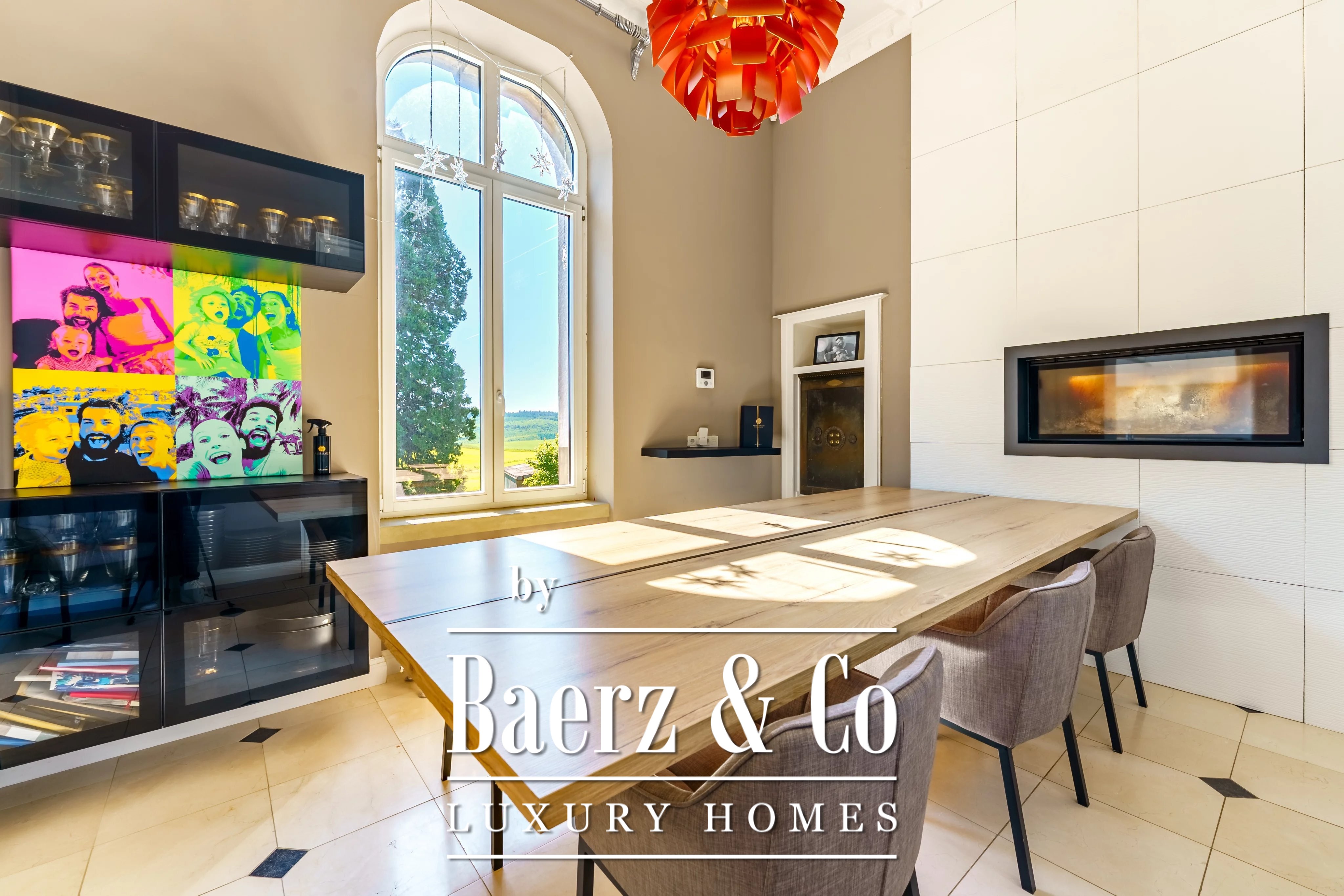This manor house Boevange is a study in quiet grandeur, set in the tranquil heart of a Luxembourg village. Built in 1909 and meticulously restored in 2022, the property balances architectural heritage with considered modernity. Offering 375 m² of living space within a total surface area of 500 m², each room is proportioned for both practicality and atmosphere, further enhanced by ceilings that rise to four metres.
