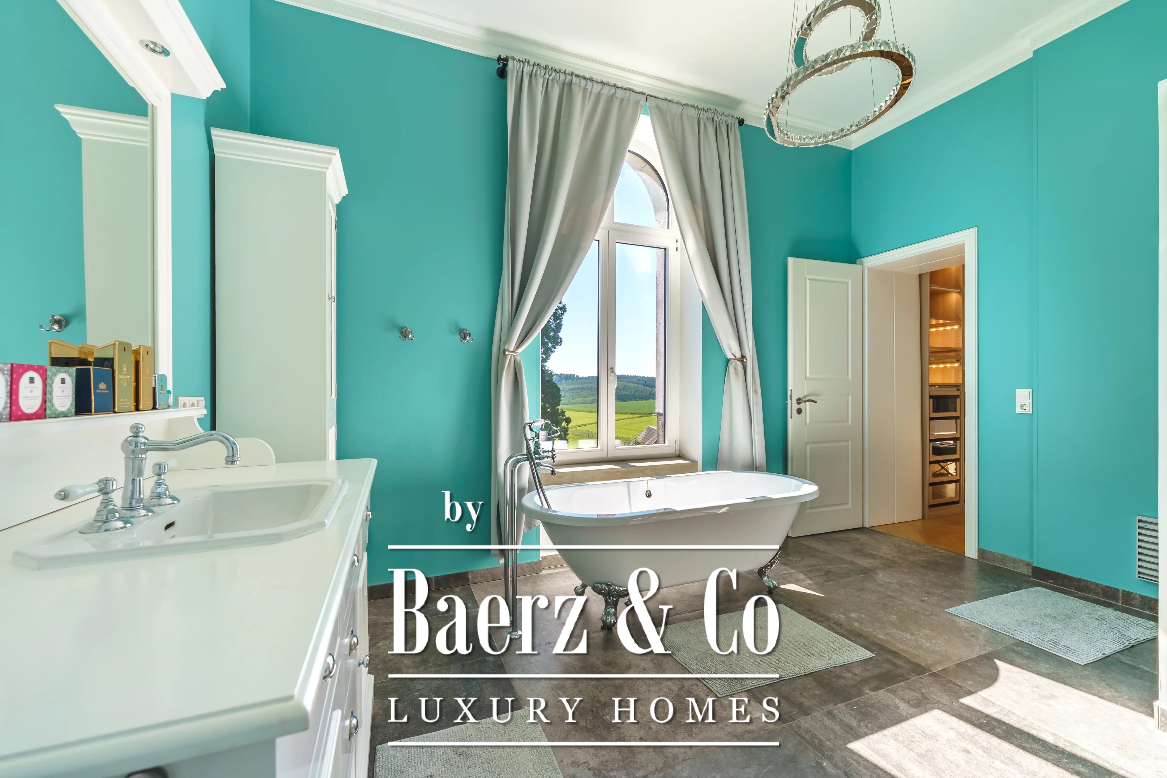 Sustainable living is seamlessly integrated, with 150 rooftop solar panels delivering 30 kW alongside underfloor heating and a wood-burning BRUNNER fireplace. Amenities include intelligent heating control, a full security suite, wine cellar, and garage for one car. The manor house for rent in Boevange stands as a rare intersection of provenance and present-day comfort.