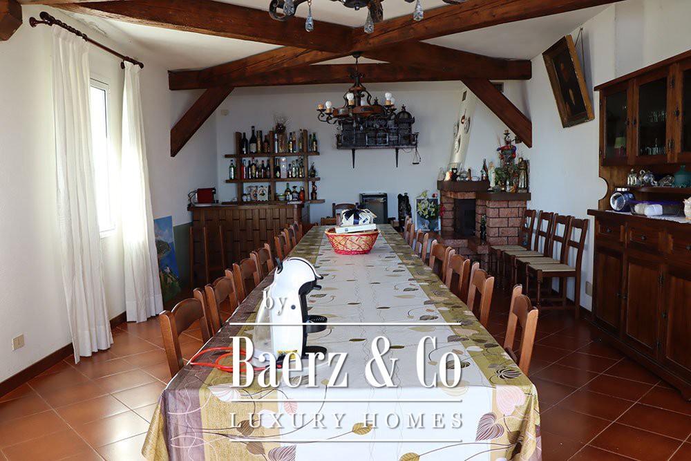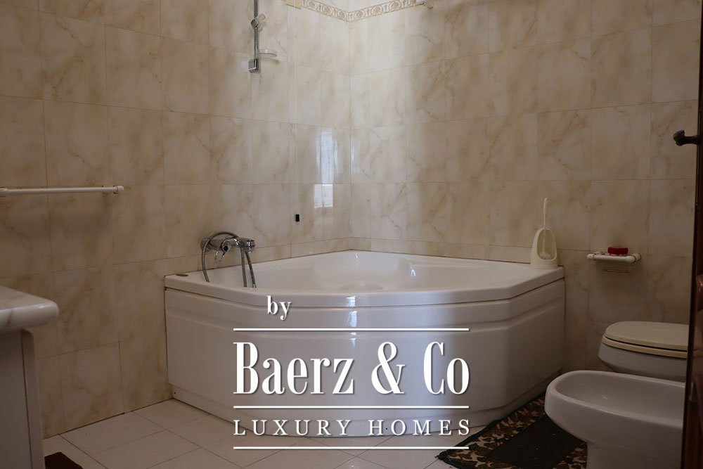 Distributed across three levels, the villa creates flexibility for both entertaining and private retreat. The ground floor features a traditional tavern with oven and BBQ, a magazino, a bedroom, and a bathroom. From here, living expands onto a vast terrace and the surrounding garden, an inviting canvas for an infinity pool.