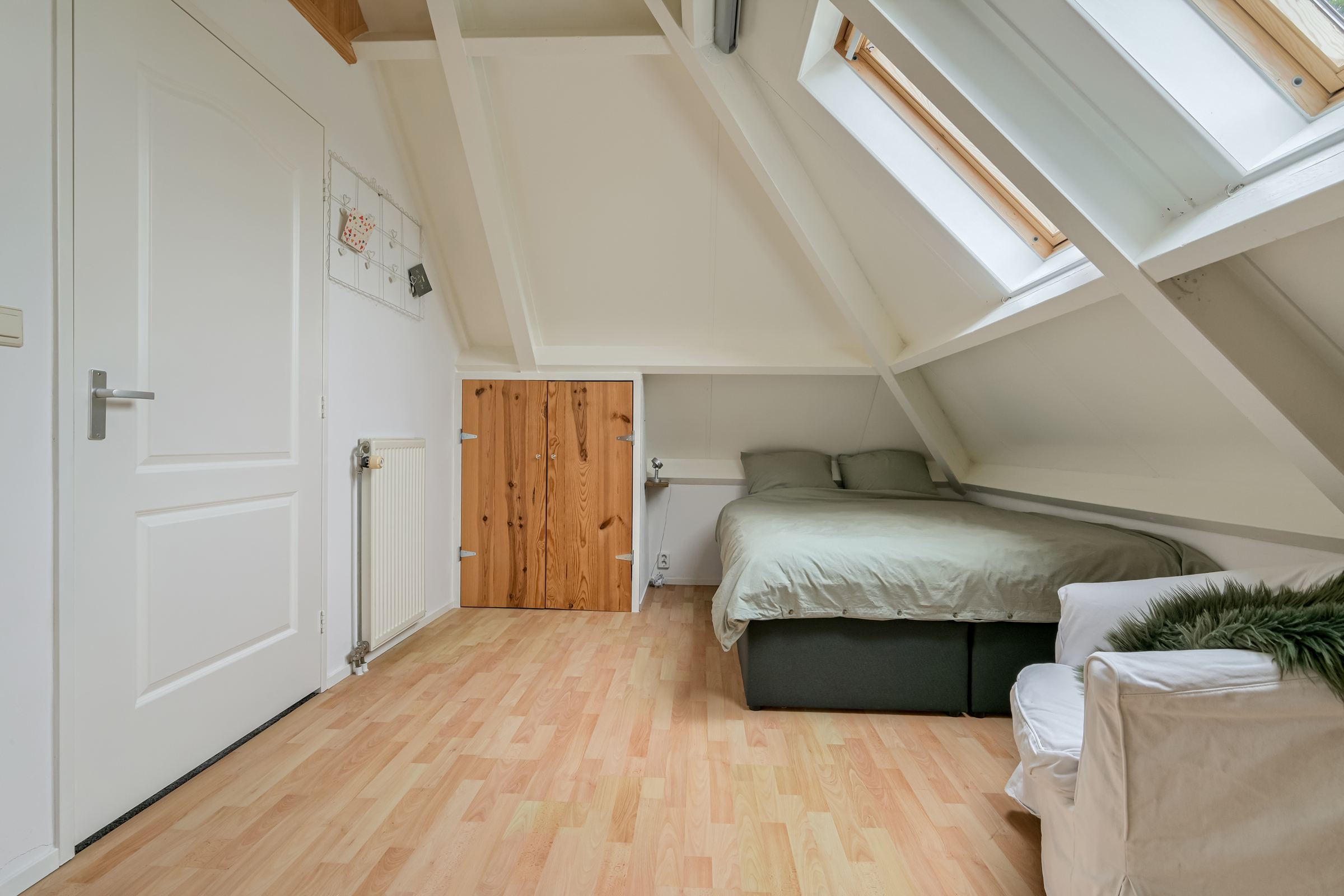 Large rear bedroom with storage space on both sides behind the knee walls.