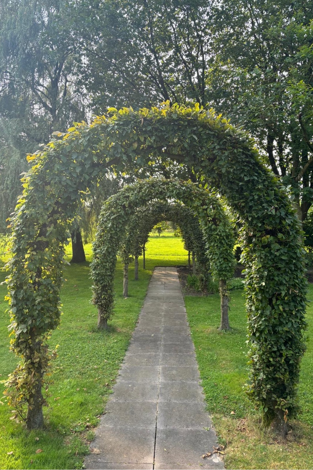 The spacious garden, with adjacent pastureland, offers complete privacy. Behind the house and next to the outbuilding, a stunning veranda has been created—an ideal spot to enjoy the magnificent garden.