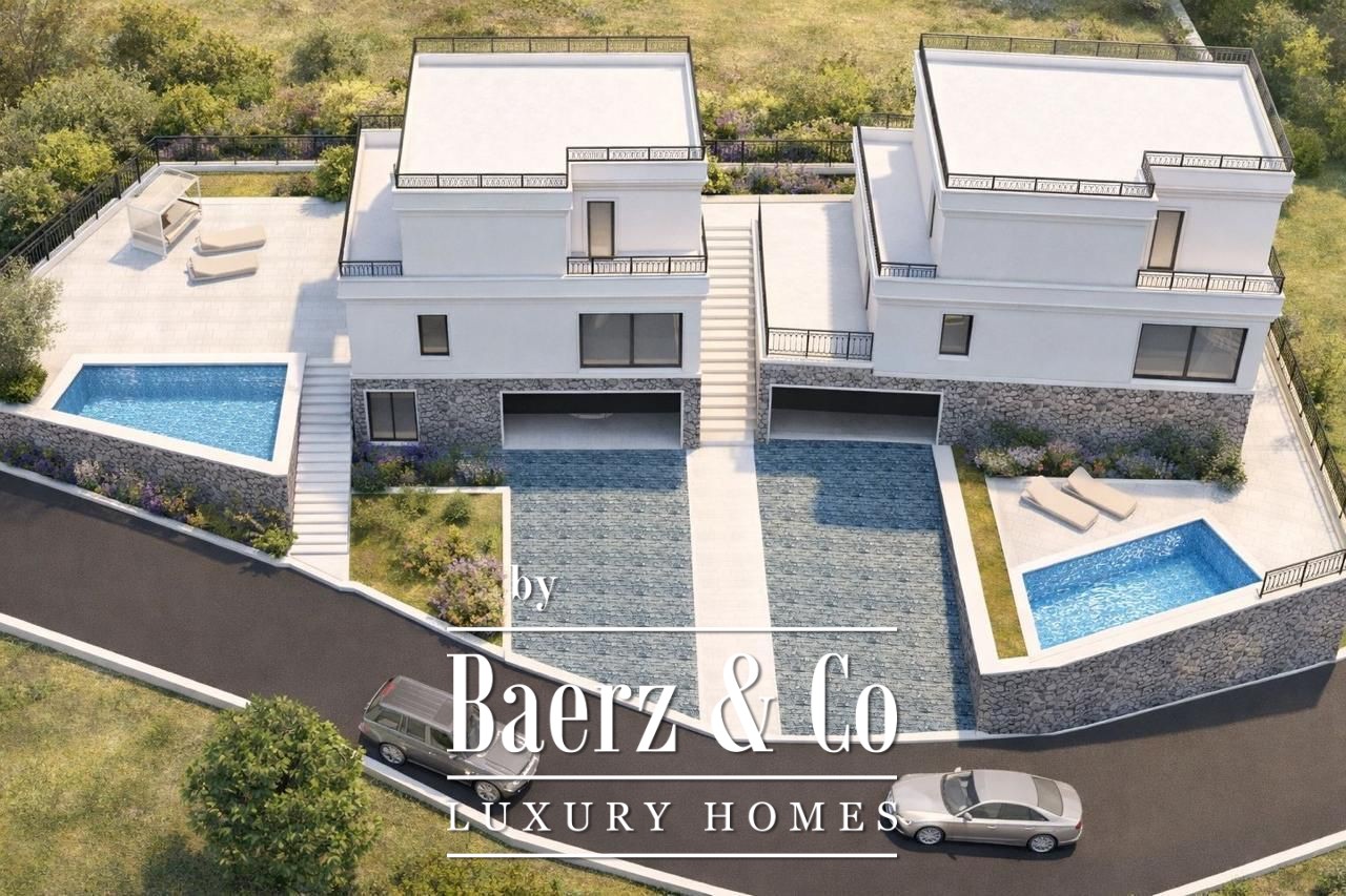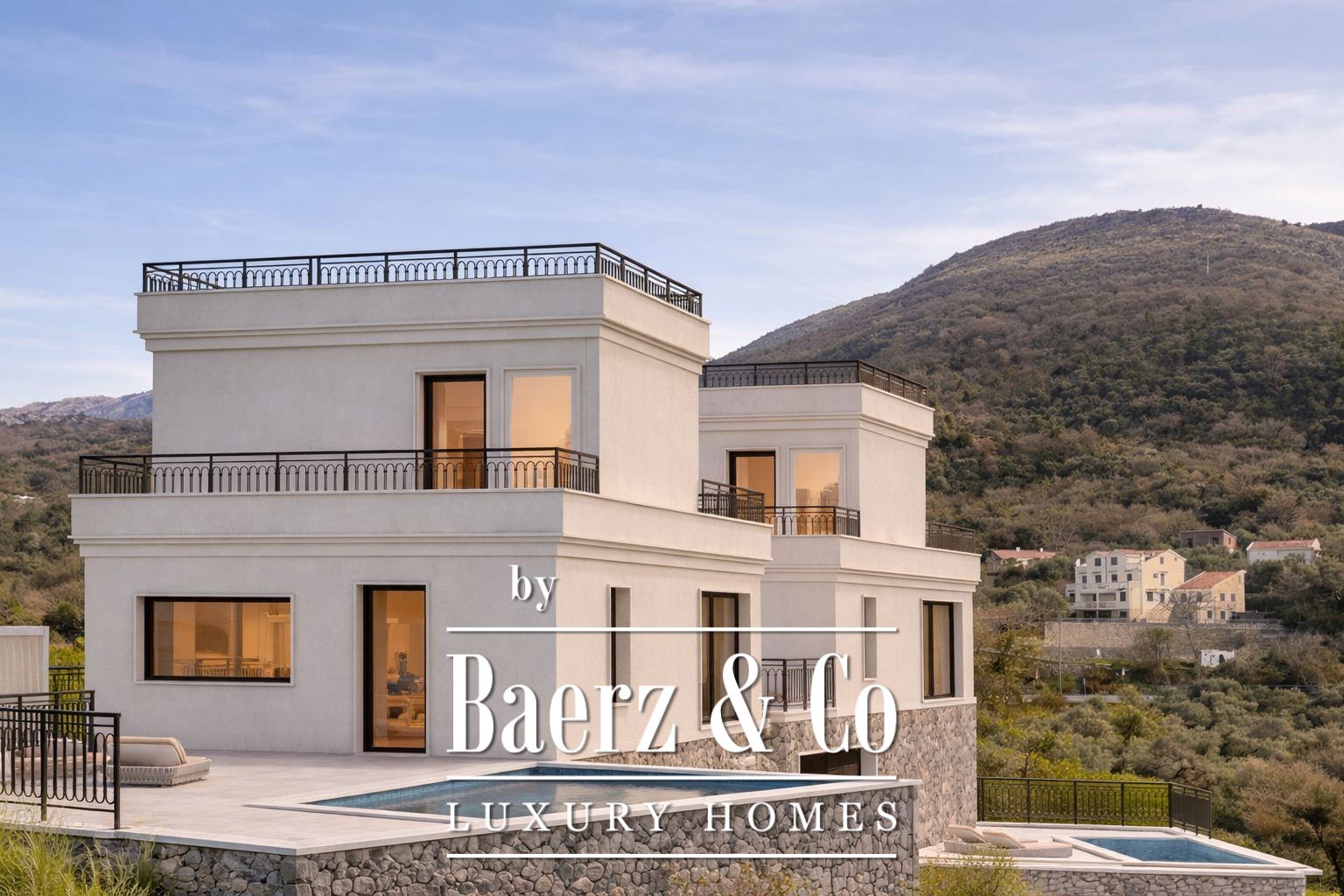 Modern villa Budva offers a refined blend of privacy and coastal luxury, set just 5.5 km from the center of Budva. This thoughtfully designed villa provides 300 m² of living space on a 150 m² plot. Surrounded by natural greenery, it is only 350 meters from the Adriatic Sea, capturing expansive views of the mountains and water.
