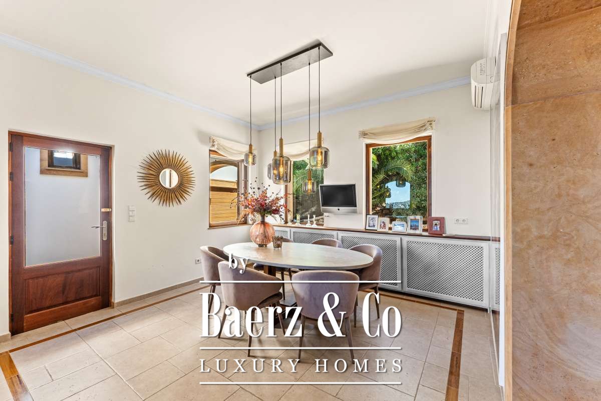 Panoramic sea and city vistas unfold across the infinity pool and lounge terraces, where mature gardens with palm trees and wild borders shape a private oasis. Everyday moments transition seamlessly outdoors, from breakfast on the southeast-facing terrace to evenings beside the pool. Secure access, ample parking, garage and 24-hour security deliver both comfort and discretion, making this villa in Can Furnet a considered choice for those seeking a luxury villa for sale in Can Furnet with all the essentials for lasting enjoyment in Ibiza.