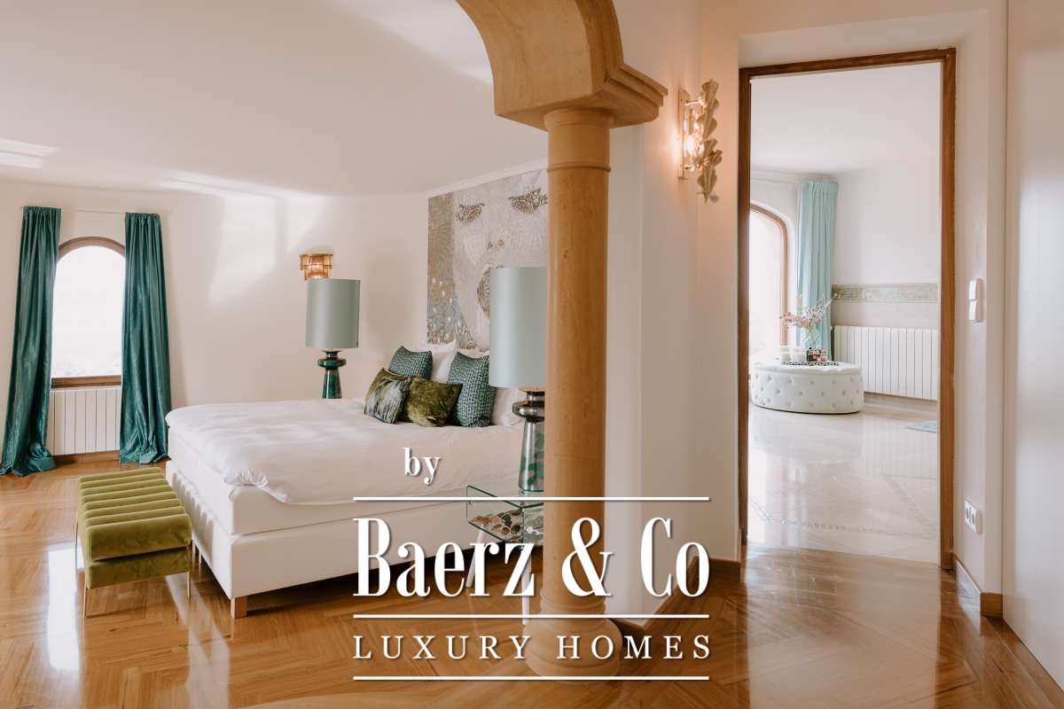 Villa Can Furnet with Panoramic Sea and City Views commands a privileged position within one of Ibiza’s most discreet and guarded residential enclaves. This villa articulates a rare sense of privacy, space and calm, yet Ibiza Town and Marina Botafoch remain within a ten-minute drive. The villa offers 992 m² of interior living over a 2,504 m² plot, with eight bedrooms and nine bathrooms, including two separate guest apartments with private entrances, thoughtfully designed for guests or staff who value privacy.