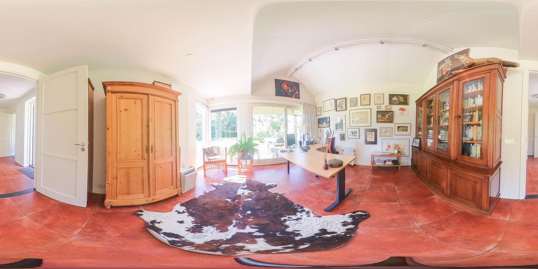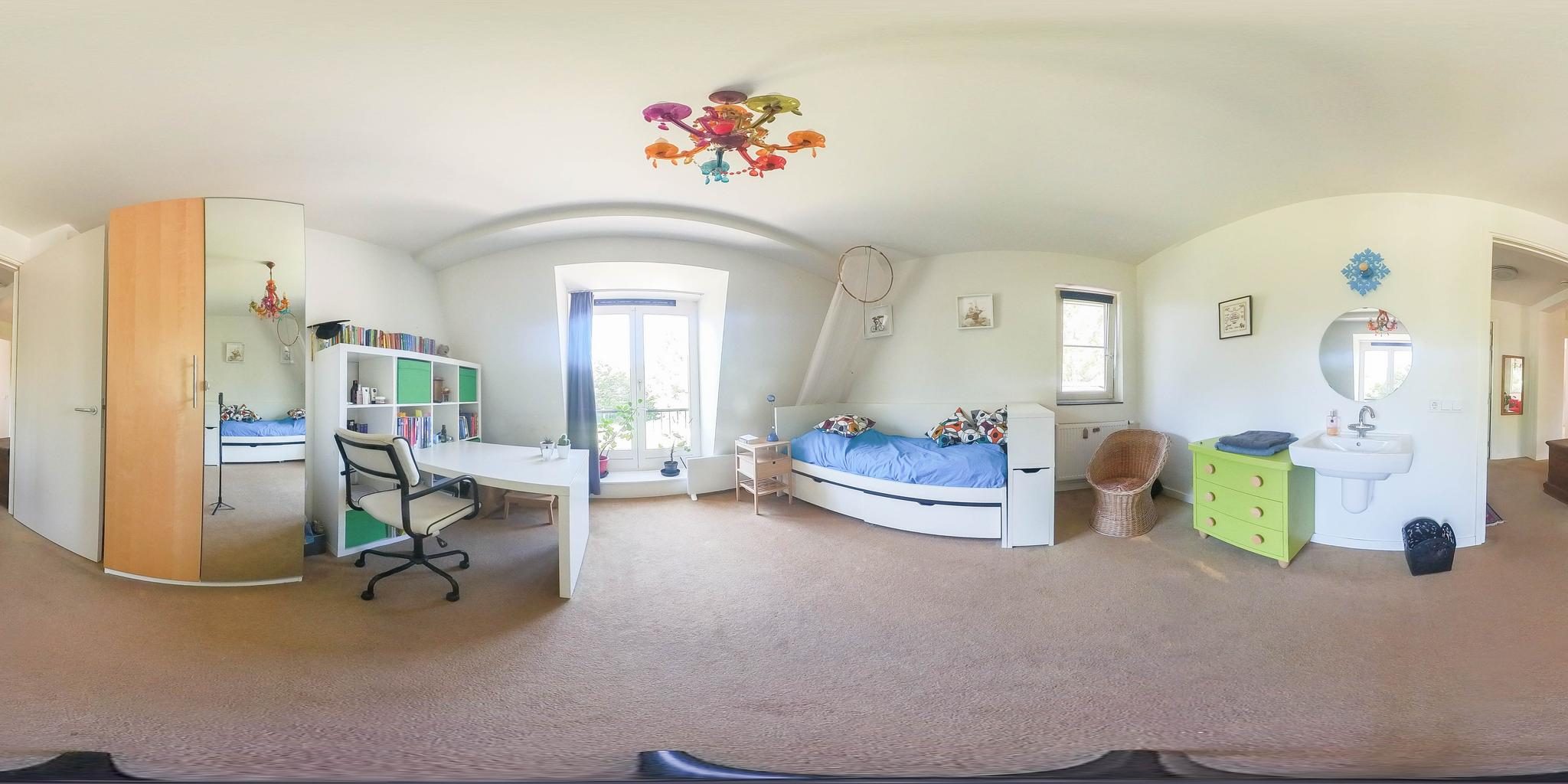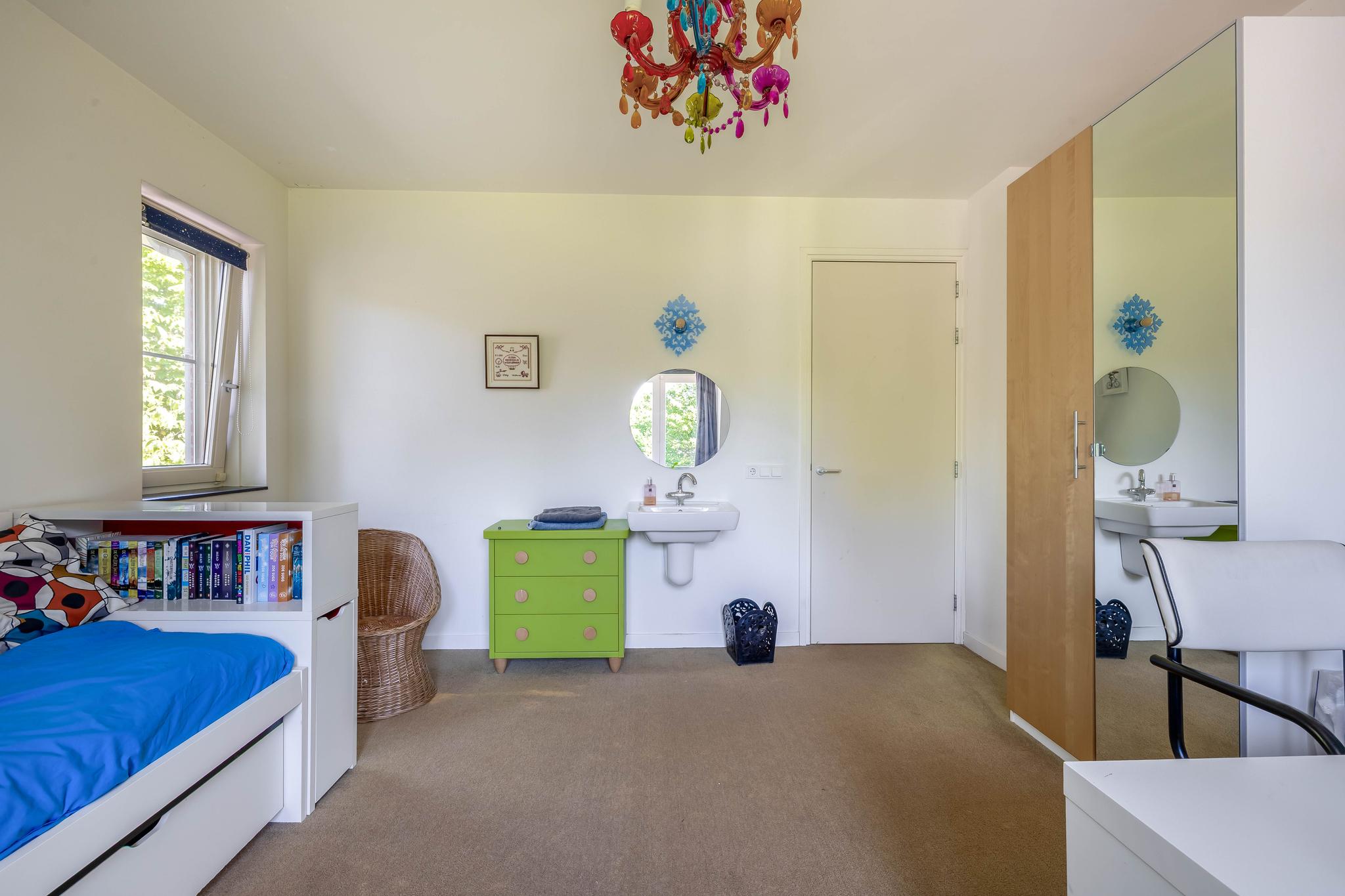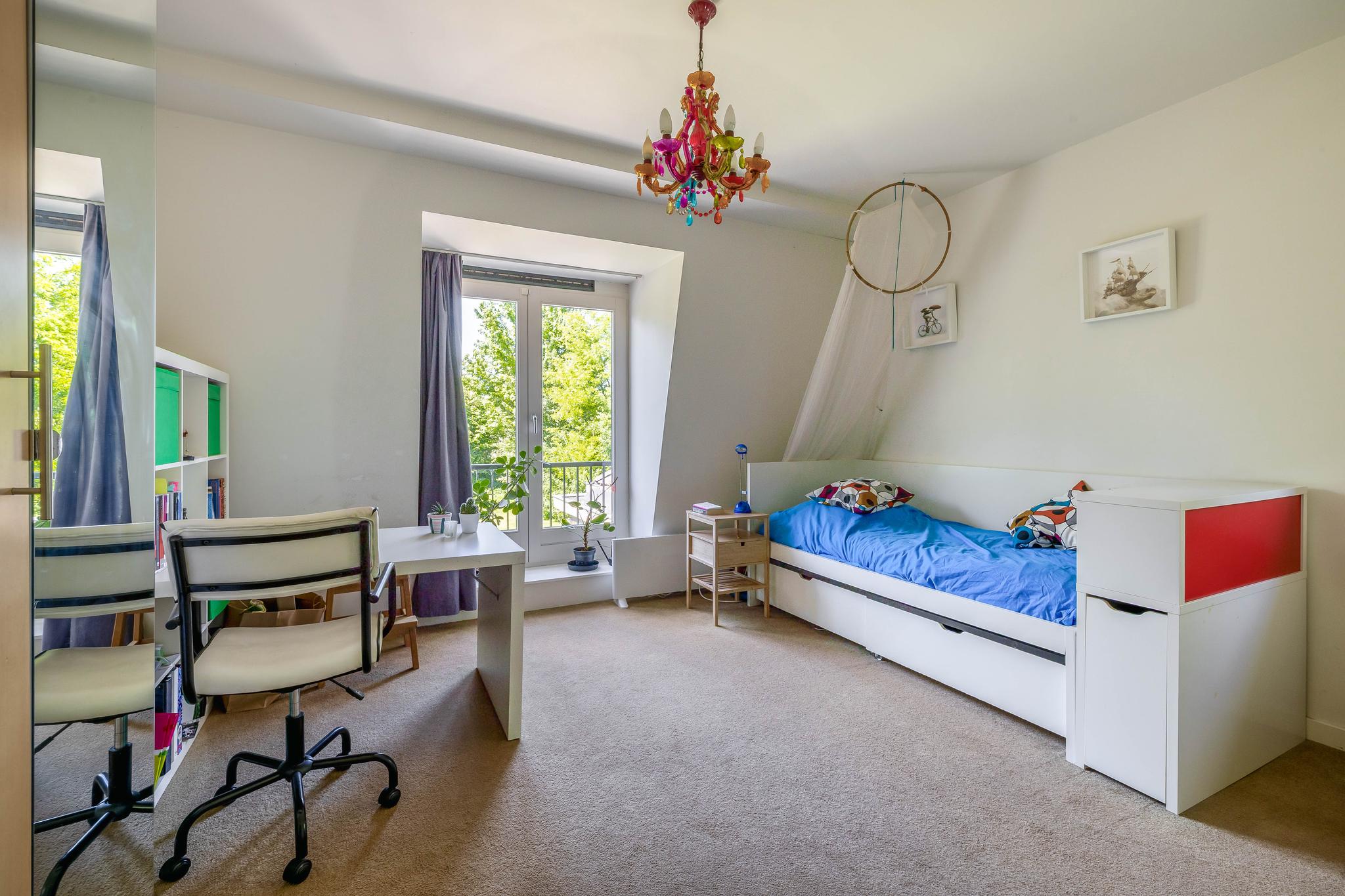 A fixed open staircase from the landing leads to the spacious attic. This space could be converted into an extra room. It houses the heat pump installation and the solar boiler. There is also cupboard space under the sloping roof and two Velux skylights provide daylight.