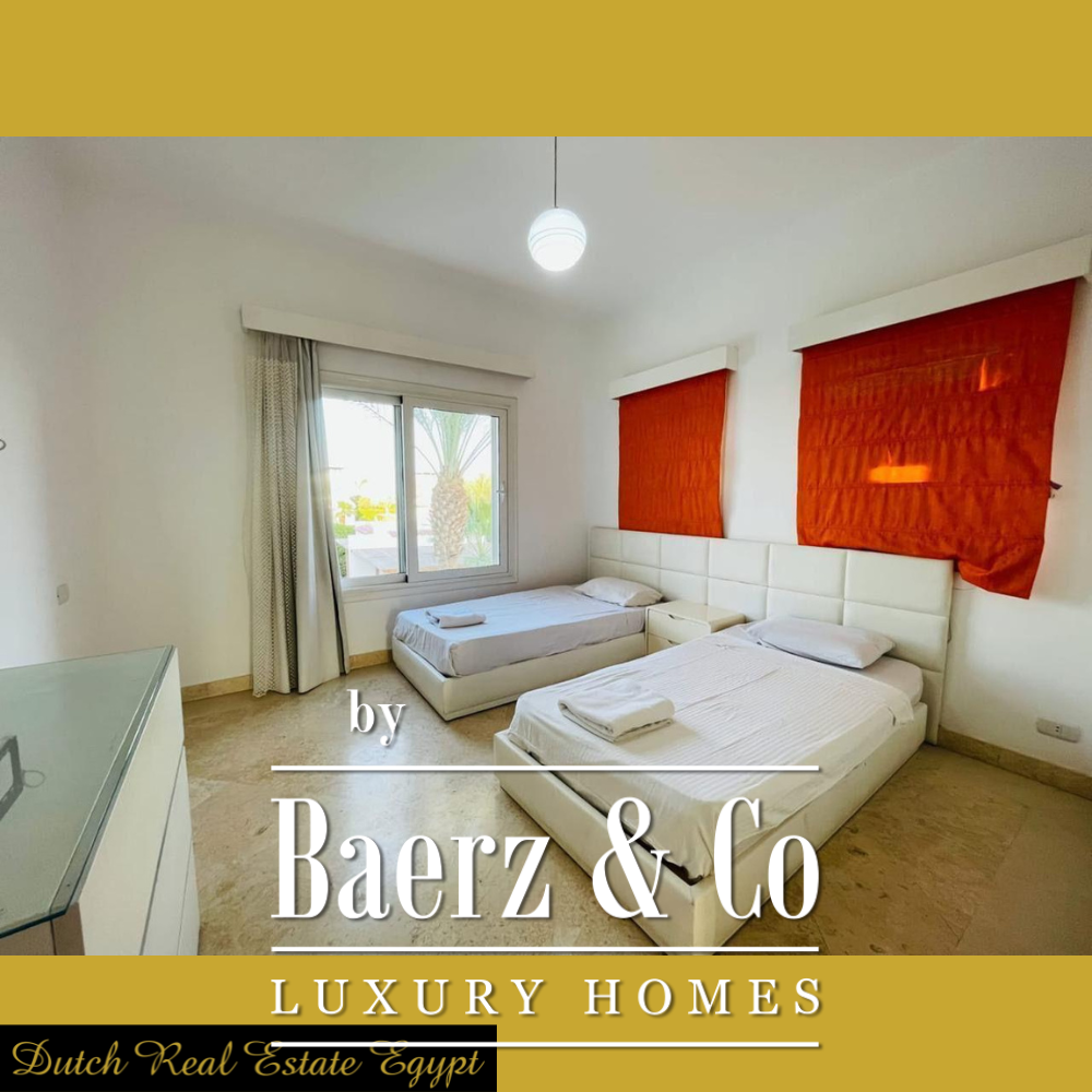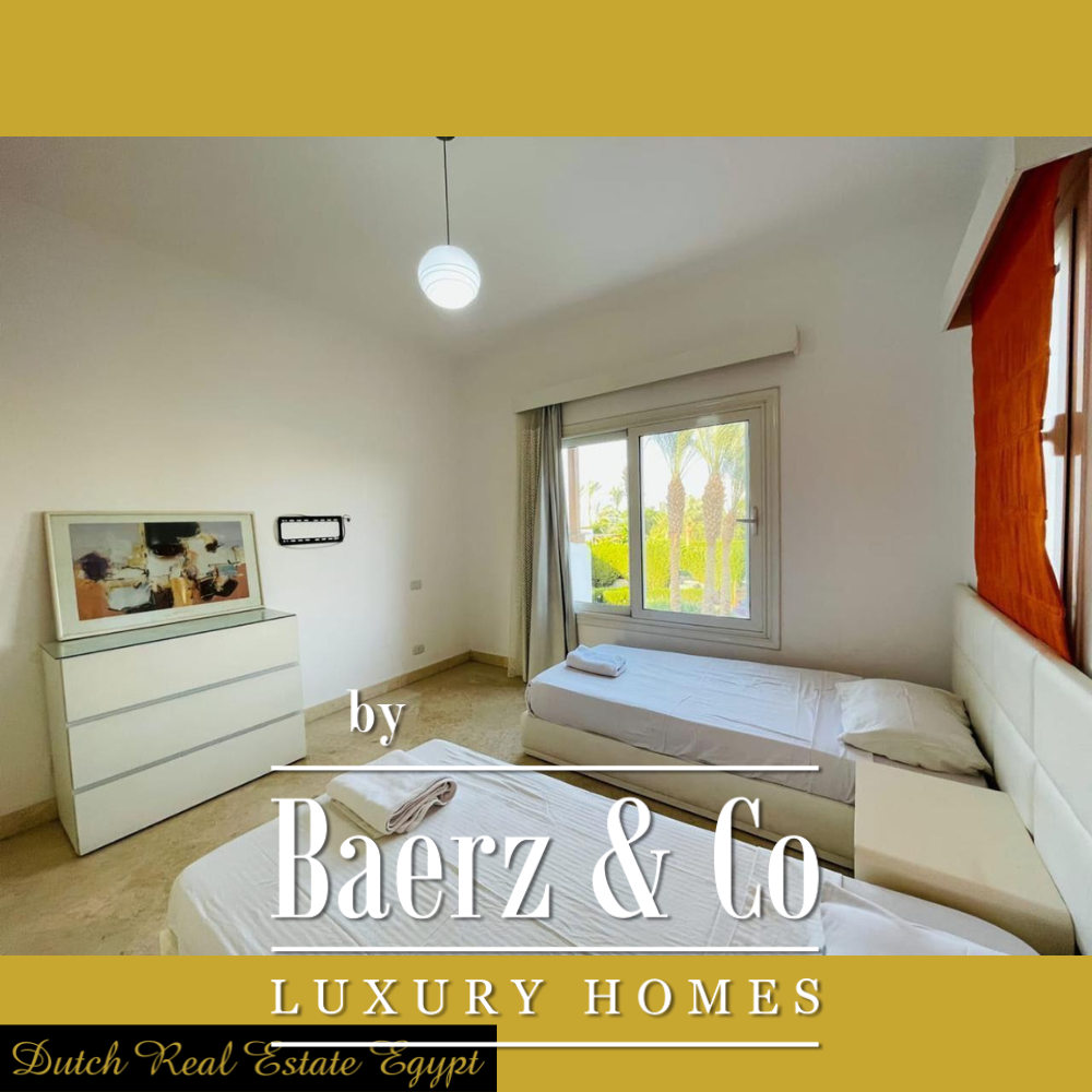 The property includes a balcony, a patio for sheltered outdoor living, and secure parking space, blending everyday comfort with elegant simplicity. Residents enjoy proximity to El Gouna’s international-standard amenities, including 17 hotels, two championship golf courses, three marinas, and 100 restaurants along 10 km of pristine shoreline. Local highlights such as New Marina and TU Berlin Campus are easily accessible, as is both private and international airport access, emphasizing discreet convenience. This villa combines architectural poise with lifestyle privilege, offering an assured base on Egypt’s celebrated Red Sea coast for those seeking a property of substance and serenity. Villa El Gouna offers an enviable balance between tranquility and world-class resort living.
