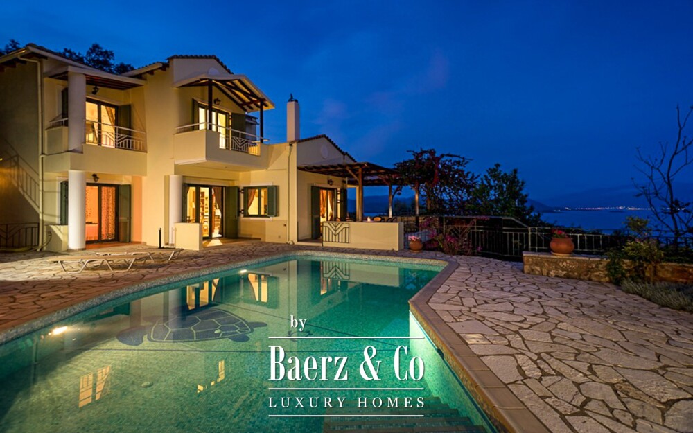 Villa Ellomeno with sea views represents a rare combination of privacy, design, and location. This 225 m² villa is set on a 4,000 m² plot within an olive grove just 300 meters from the sea on Lefkada's east coast. The property is positioned between Perigiali and Nikiana, offering sweeping sea vistas towards nearby islands and the mainland, with Passa Beach within walking distance and convenient access to both Nikiana and Nidri.