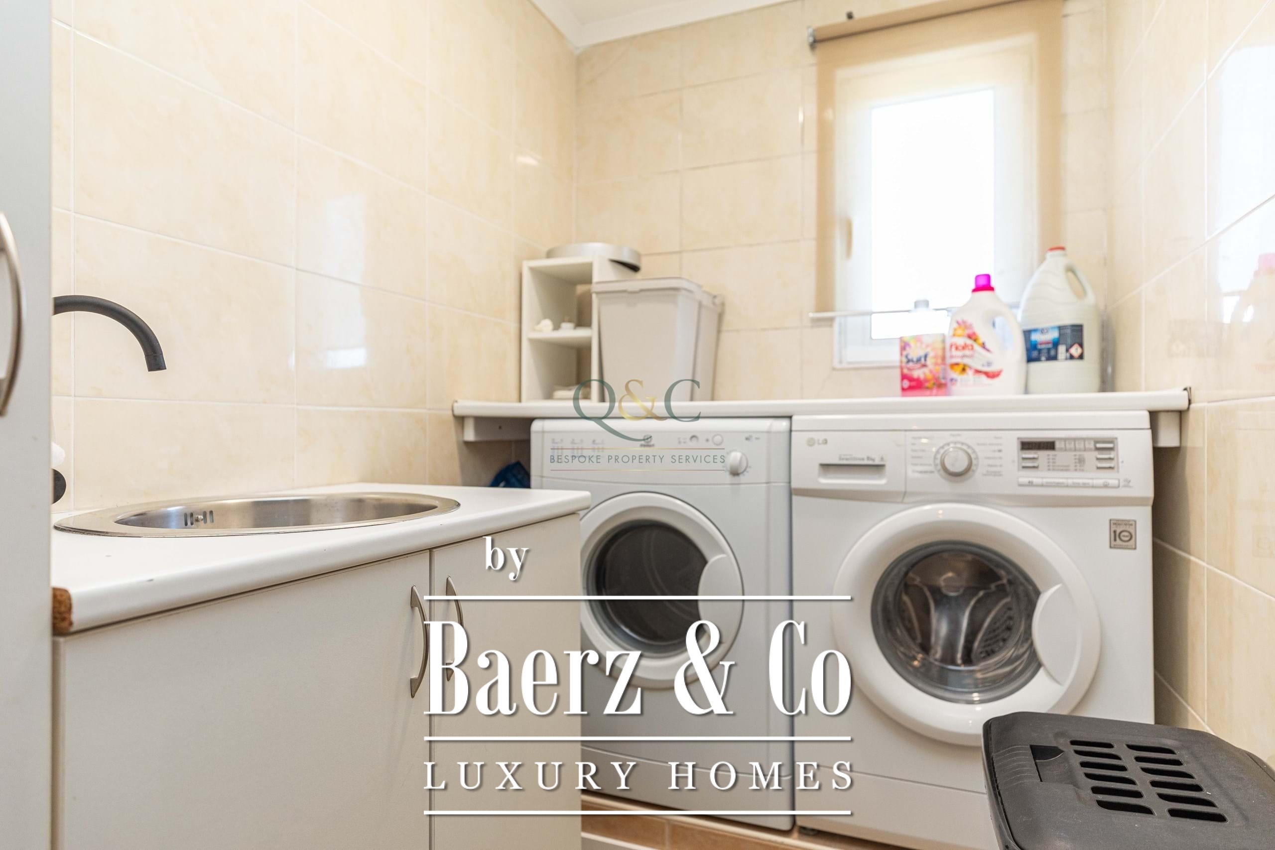 There are three generous double bedrooms, including two with recently refurbished en-suite bathrooms. The primary suite features a walk-in wardrobe and dressing area, while the third bedroom offers double doors leading straight to the swimming pool terrace. A large family bathroom includes a bath, substantial walk-in shower, and double vanity. Utility needs are met with a dedicated laundry room, storage spaces, and an equipped kitchen.