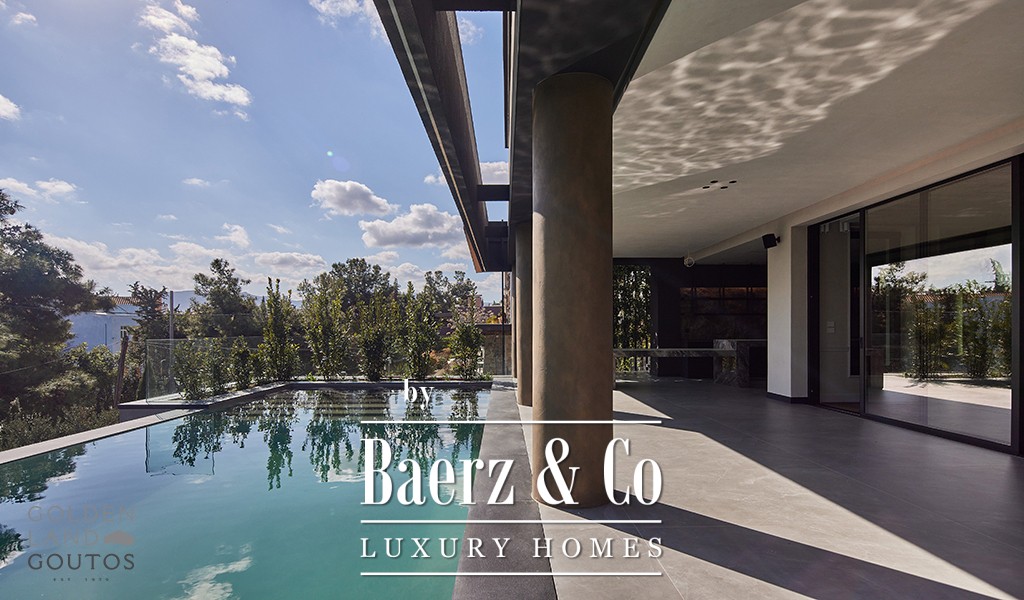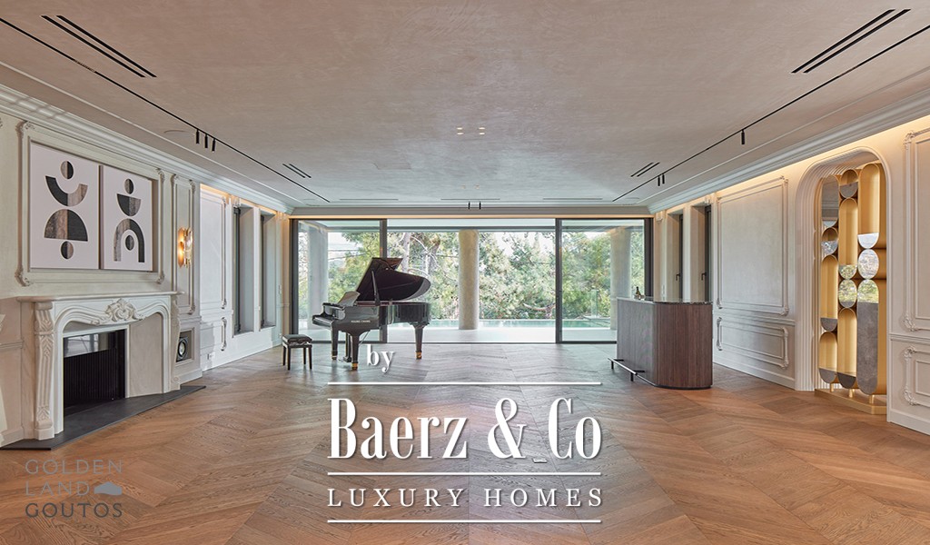For leisure, Villa Filothei Athens delivers an indoor pool, an outdoor infinity pool, a spa zone for gym and massage, a cinema room, and a wine cellar. Terraces and gardens interconnect with the interior, blurring boundaries for indoor-outdoor living. The property has a three-car indoor garage and easy access to Athens' main arteries and international airport. Finishes are considered, from high ceilings to polished wooden floors, affirming a cultured sense of arrival. This is an investment opportunity ready for immediate occupancy, merging architectural discipline with lived luxury.