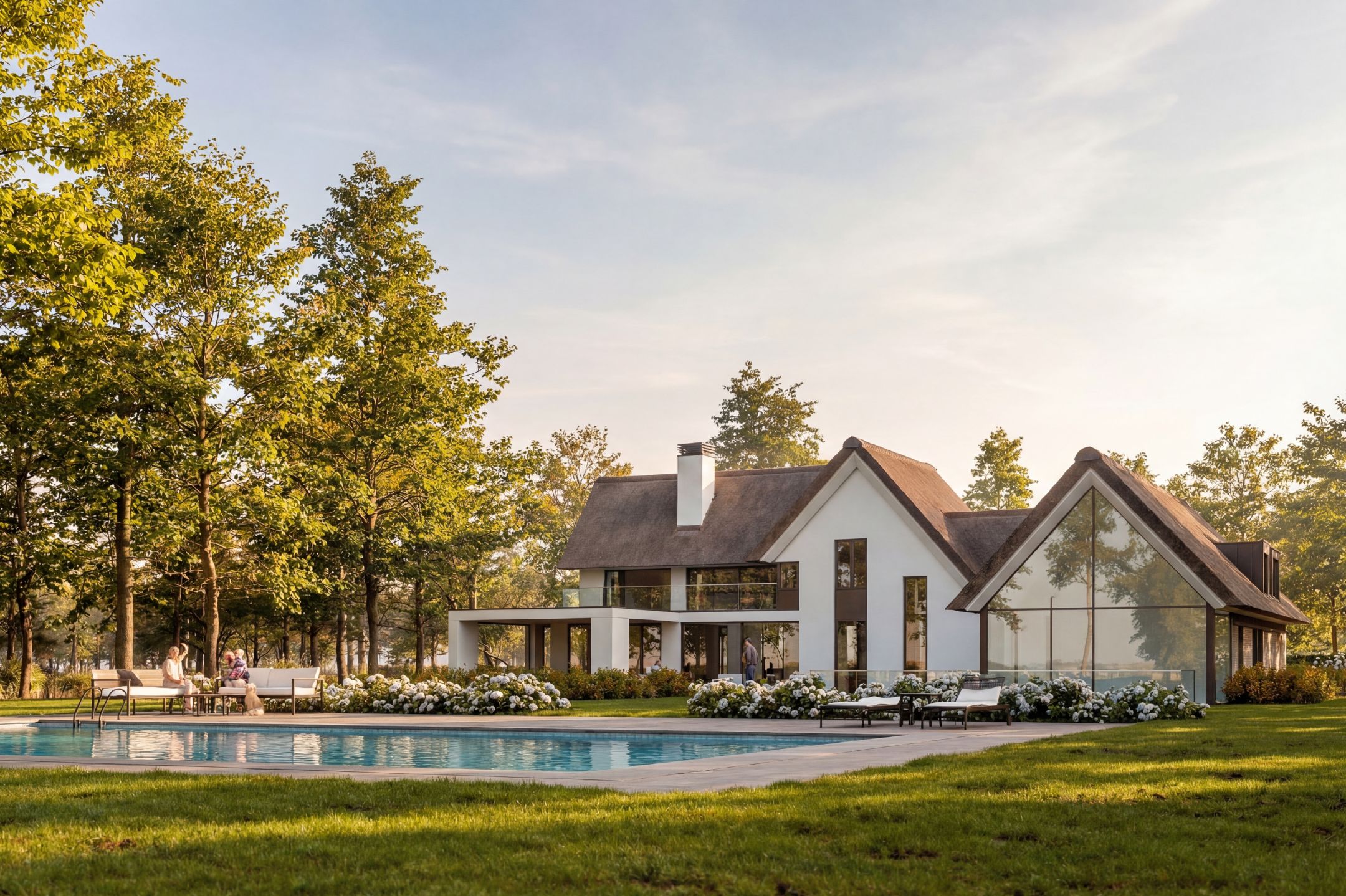 Between two cities in Twente, Enschede and Hengelo, in the green hamlet of Driene, a unique residential project has been developed: Het Zeldam Estate. Nestled in a leafy setting with stately manor houses, vast natural surroundings and within walking distance of the Driene golf course, this former historic farmstead is being given a new lease on life as an exclusive residential estate.