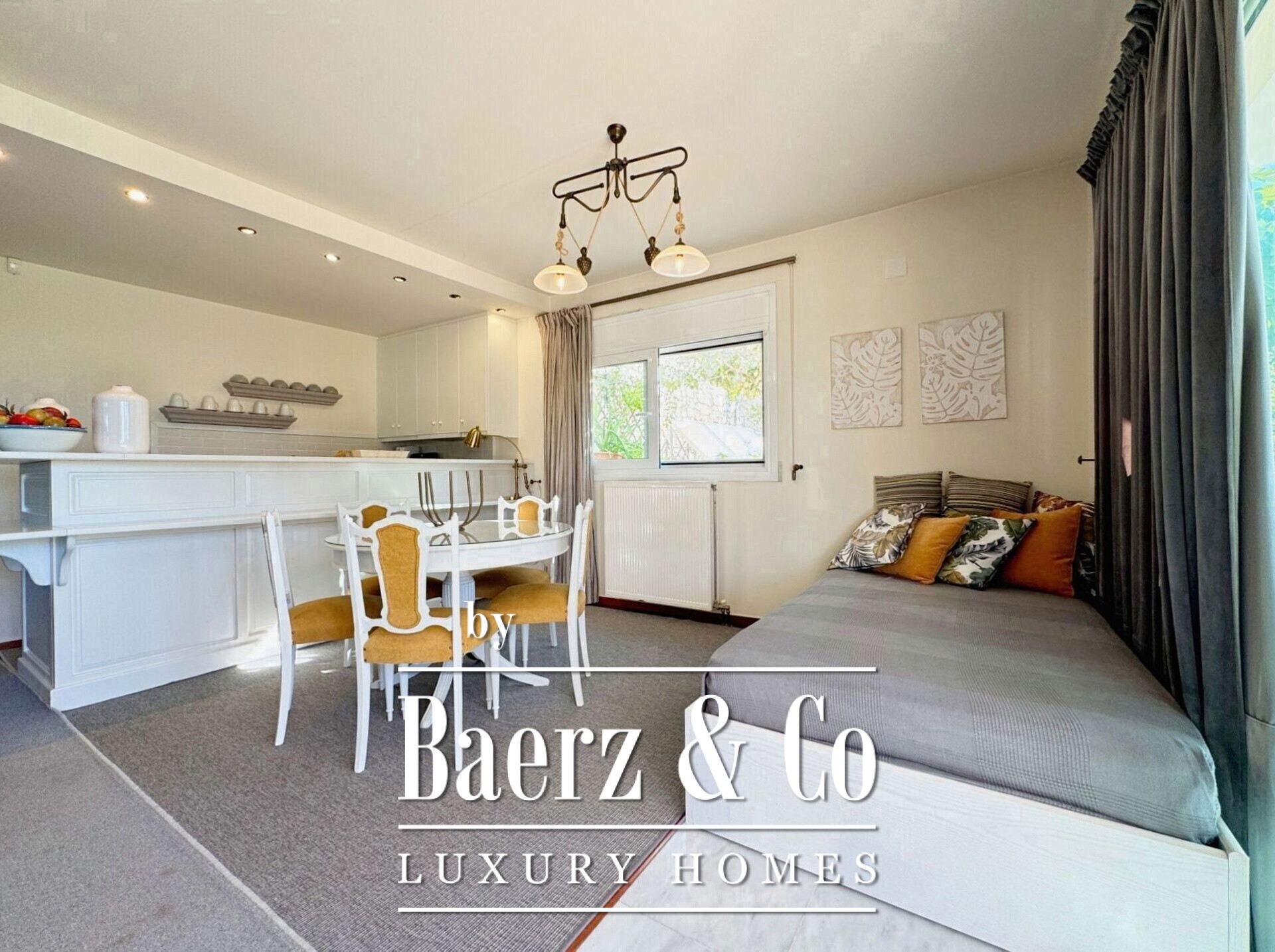 A completely independent ground-floor living space includes a lounge, bathroom, bedroom, and fully equipped kitchen with a bar, expanding the home’s versatility. In the basement, a versatile space with sports equipment and storage meets all practical needs, complemented by double glazed insulation, oil and air conditioning heating, and energy class C certification. With autonomy, quality materials, tranquil landscape, and the possibility for furnished acquisition, this detached house Kalamata provides a harmonious setting close to city and sea, and potential for rewarding rental income.