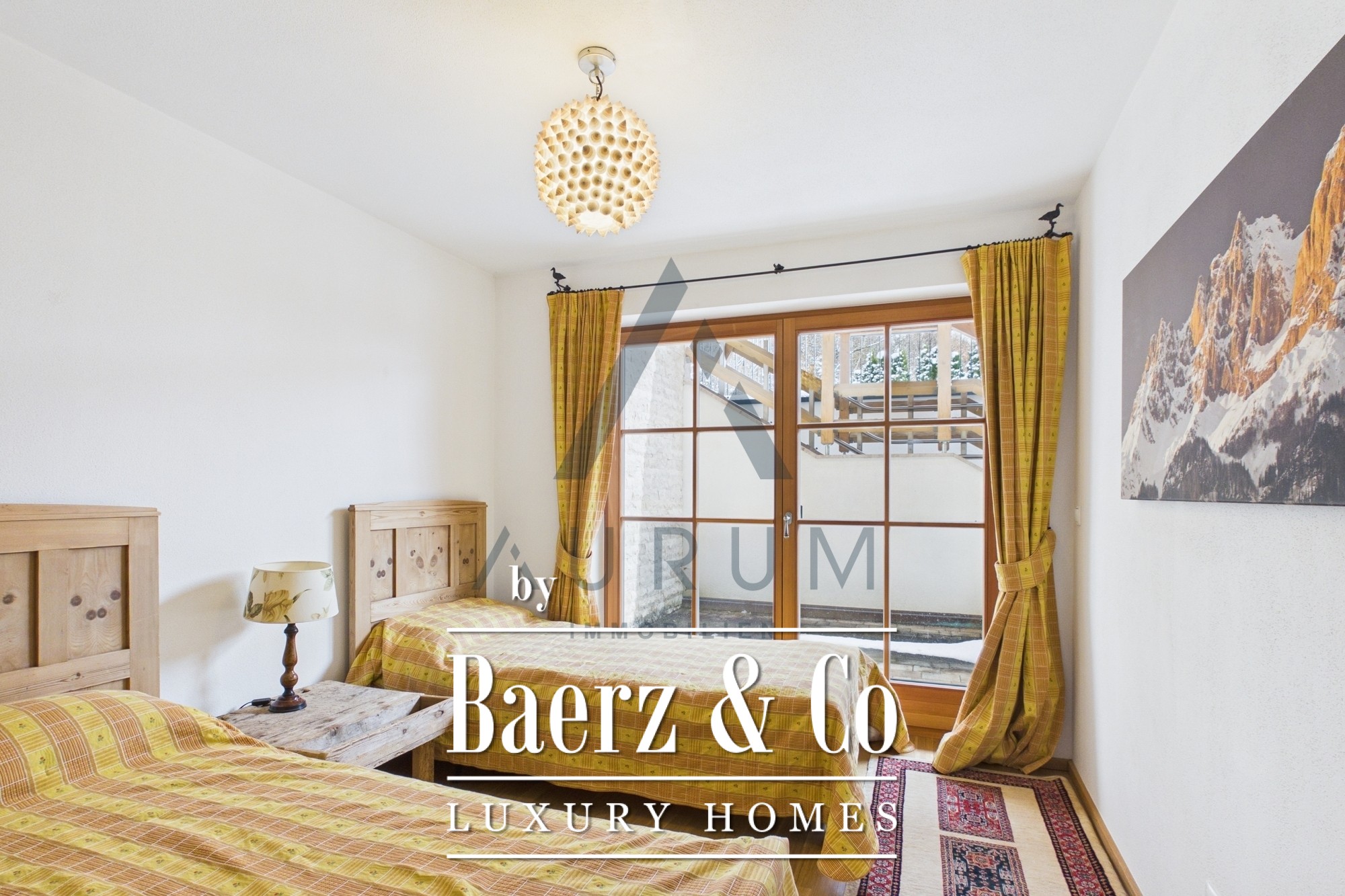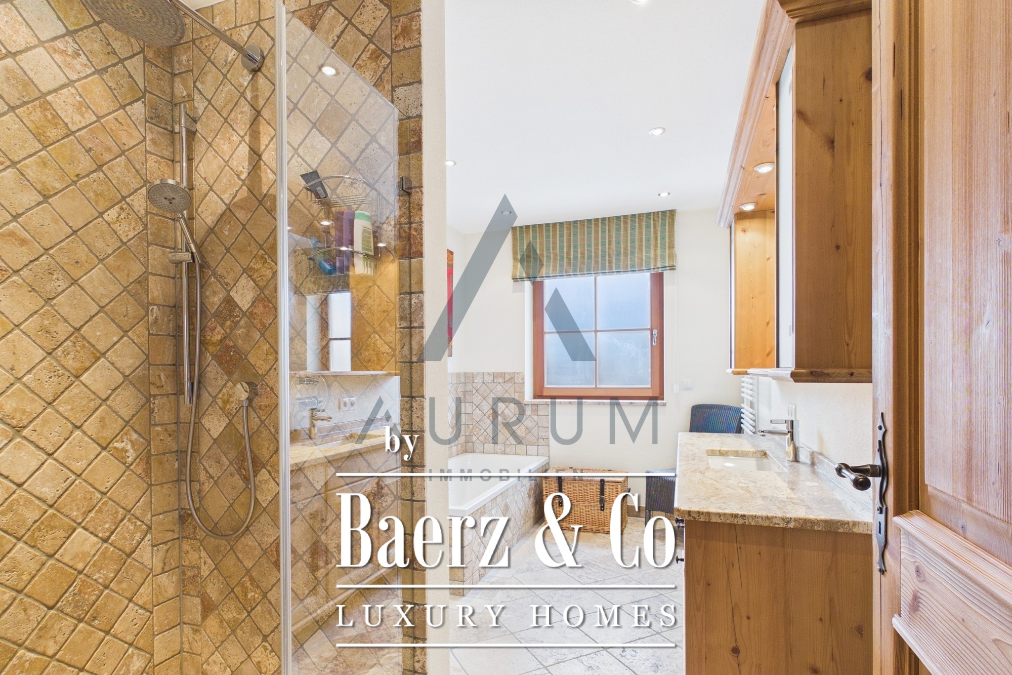 Practicality and refinement extend to a cloakroom, utility room, guests' WC, and external storage. Three carport parking spaces provide ease for arrivals and departures. The penthouse maisonette opens onto panoramic alpine vistas stretching from the Hahnenkamm range to the Hohe Salve. With the Kitzbühel-Kirchberg ski area at your doorstep and Kitzbühel only 6 km away, the rhythm of mountain living is defined by utmost privacy, quality, and timeless outlook.