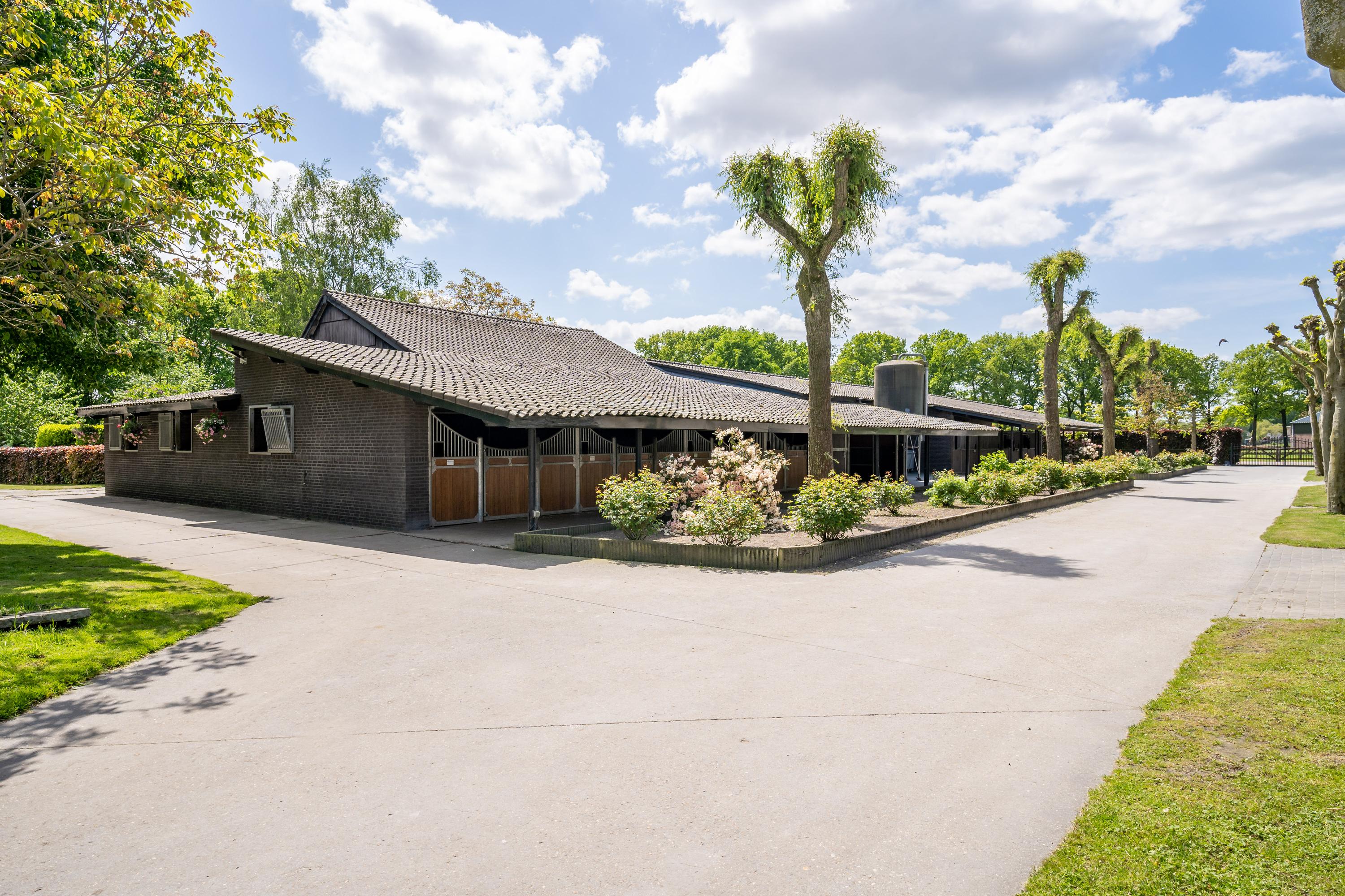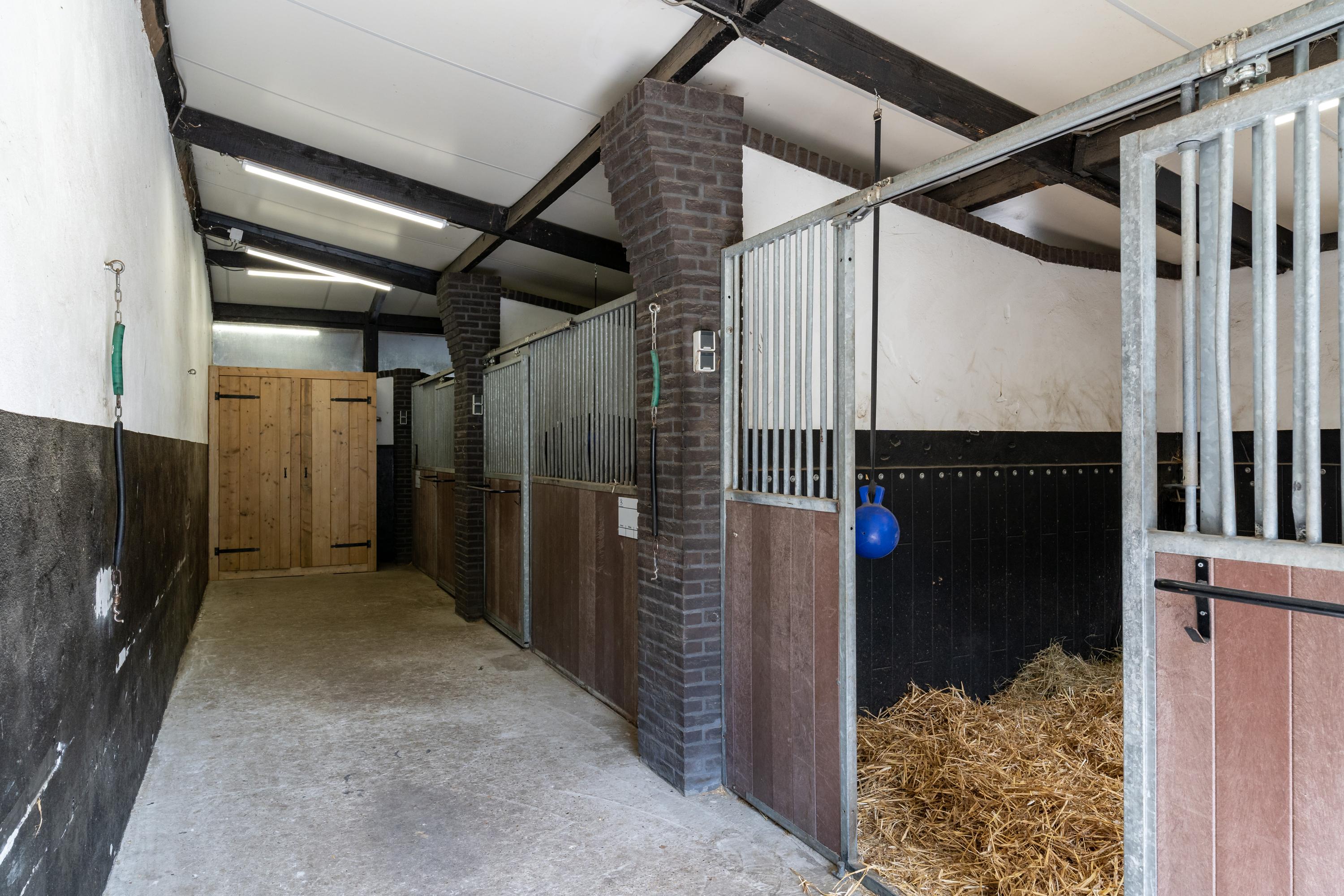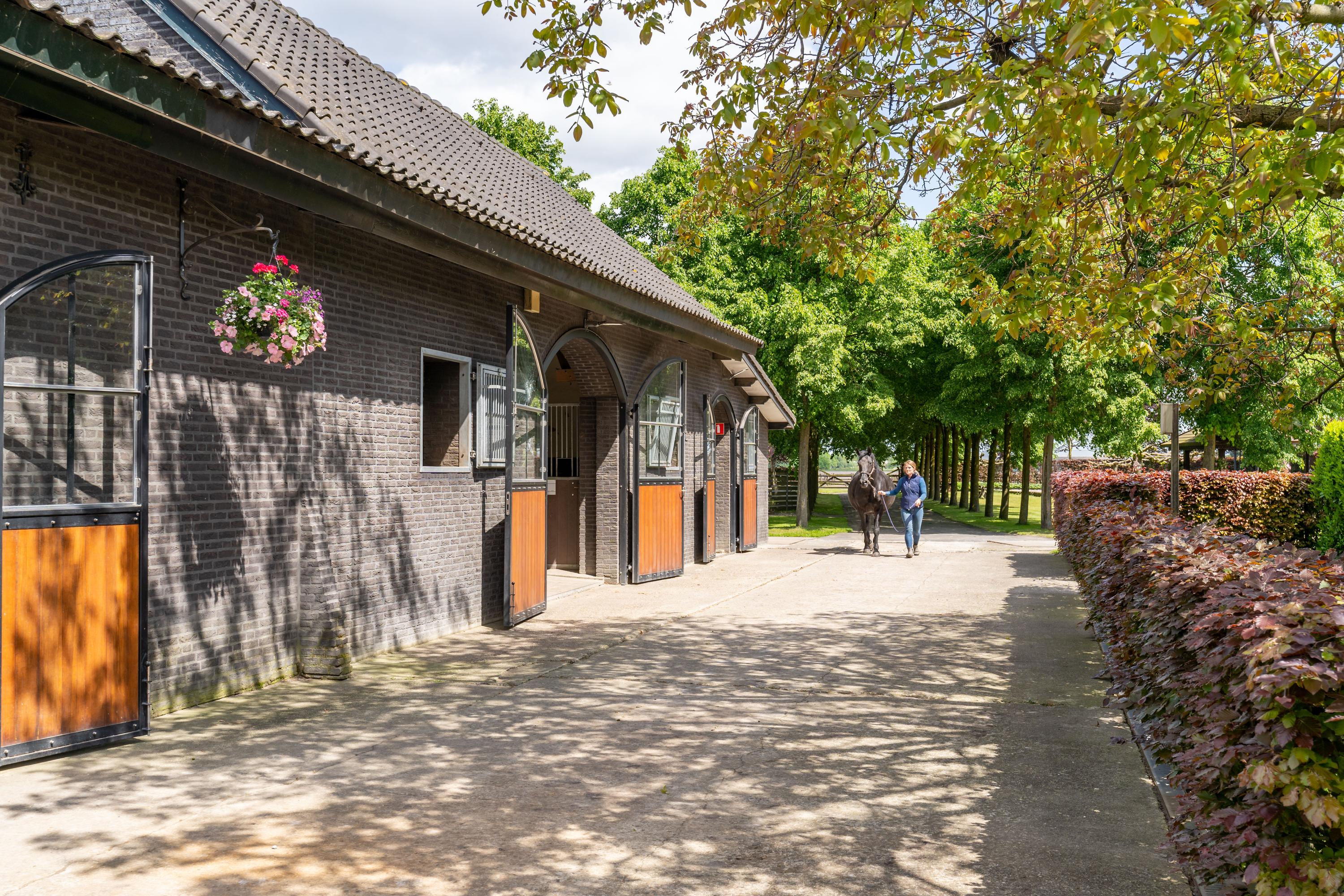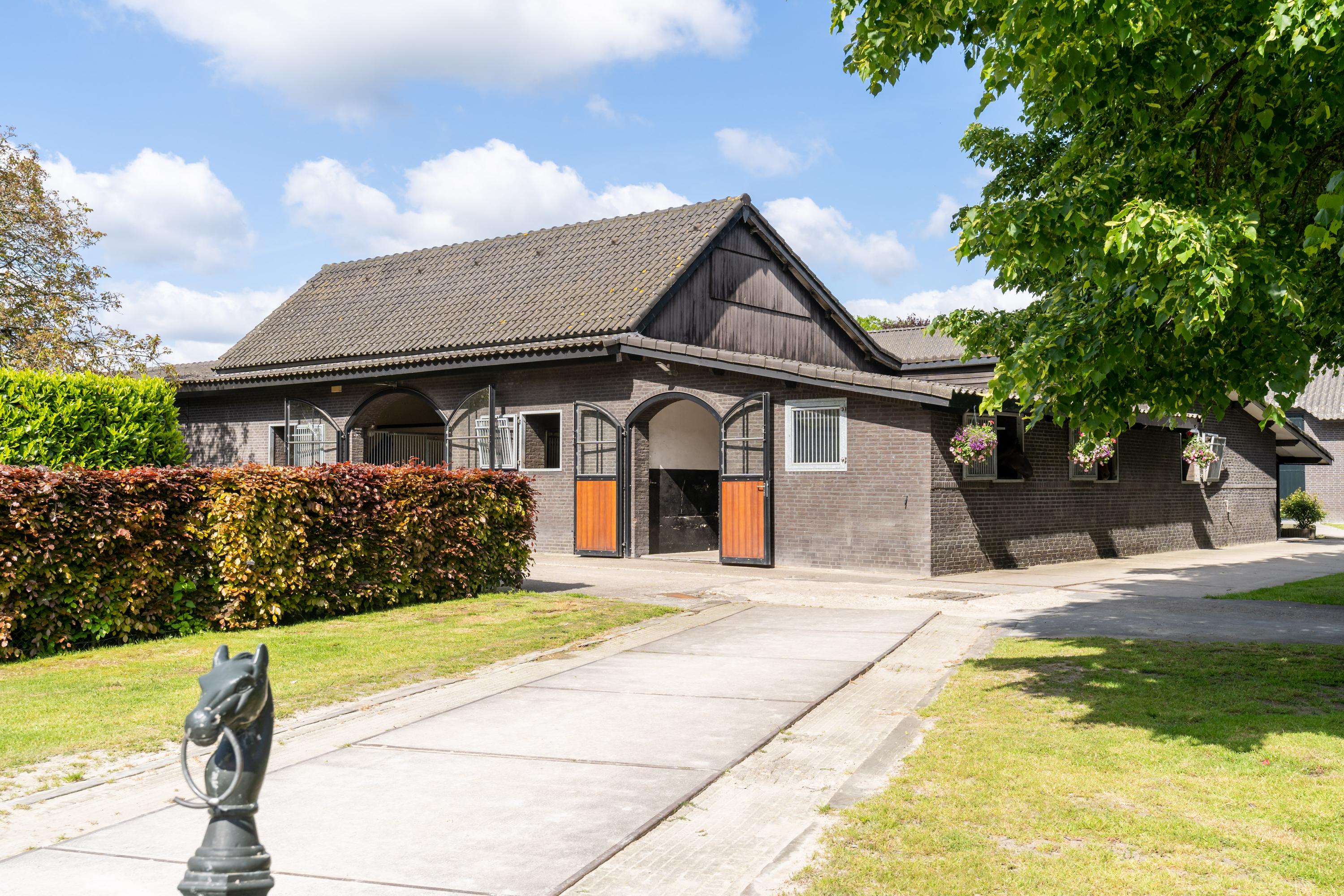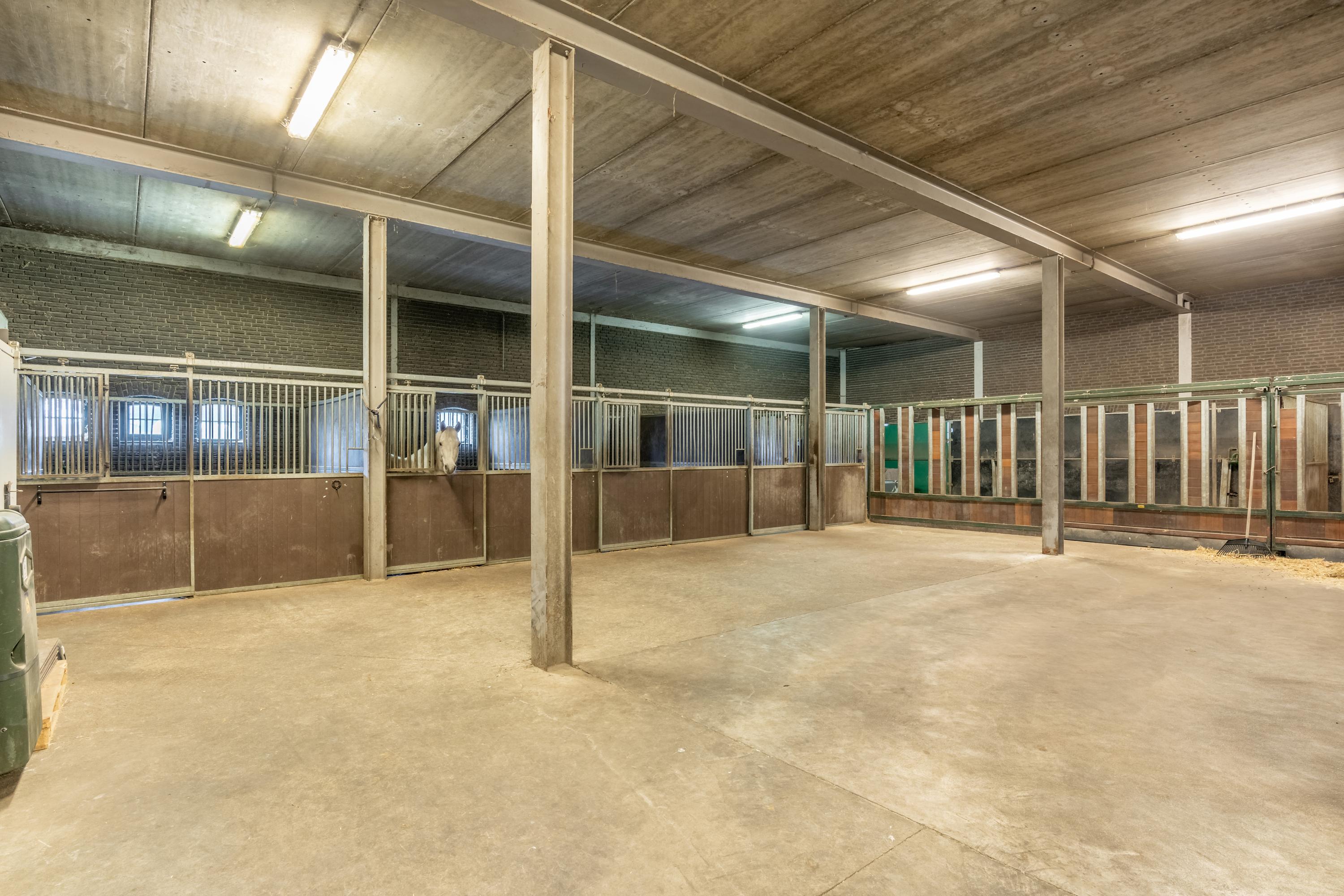 This beautiful, complete equestrian accommodation offers plenty of possibilities thanks to the presence of a detached house and living areas, a total of 33 horse stalls divided over various units, a spacious indoor and outdoor arena (approx. 22x62 metres), a storage shed with rearing stalls and large pastures. In addition, the property is situated in a beautiful location with plenty of privacy and on the edge of the Leenderbos forest with excellent riding opportunities!