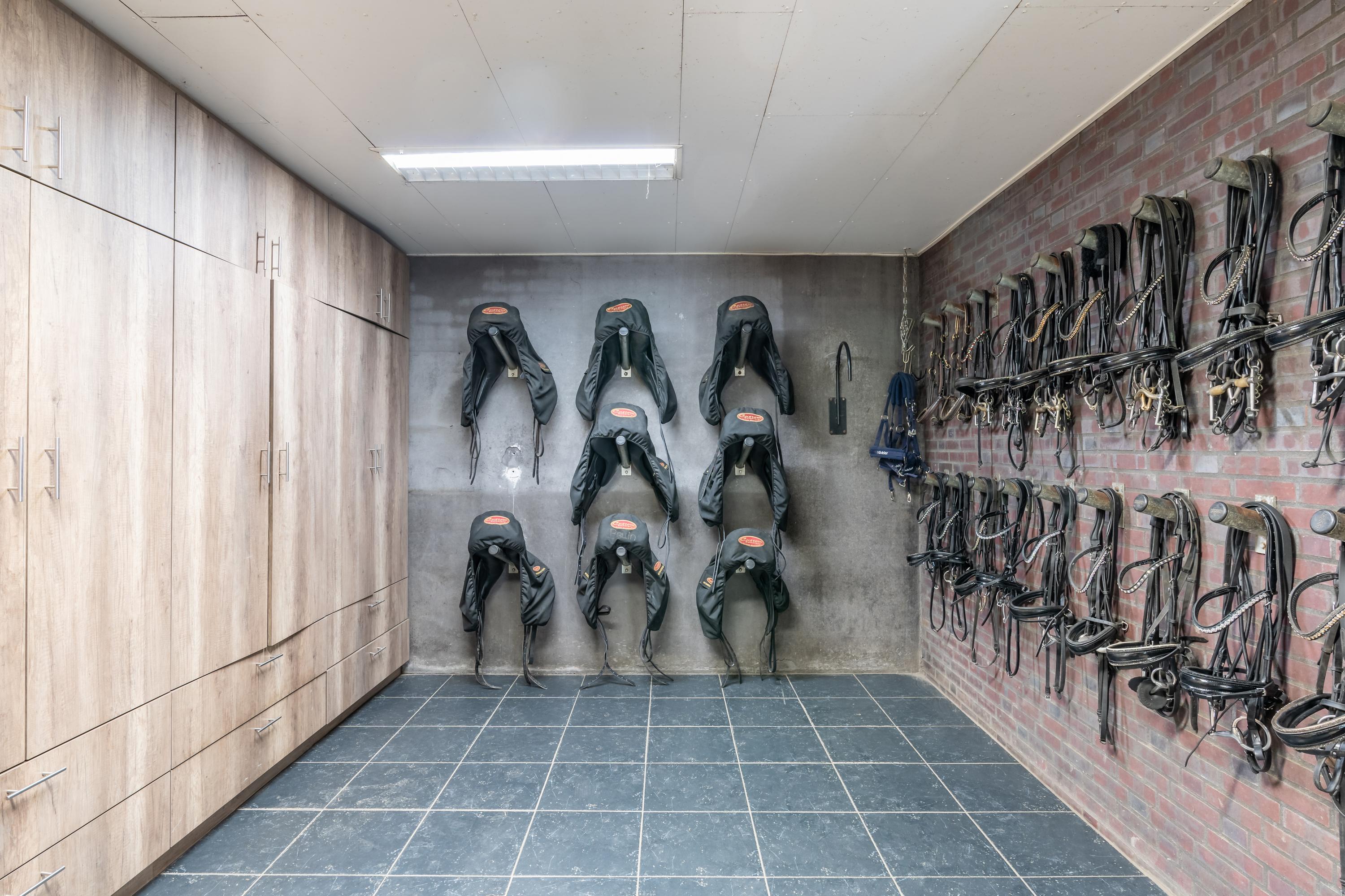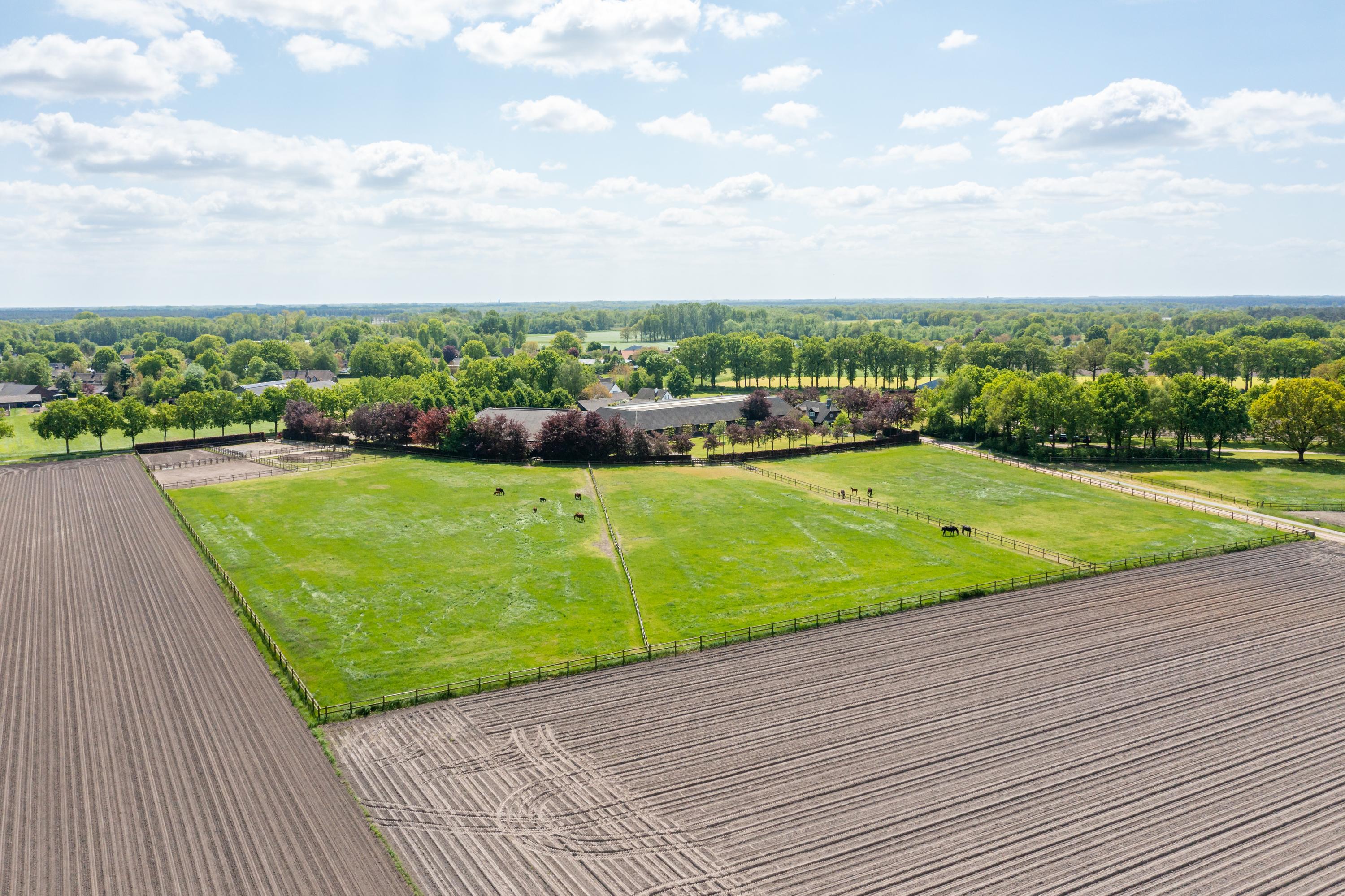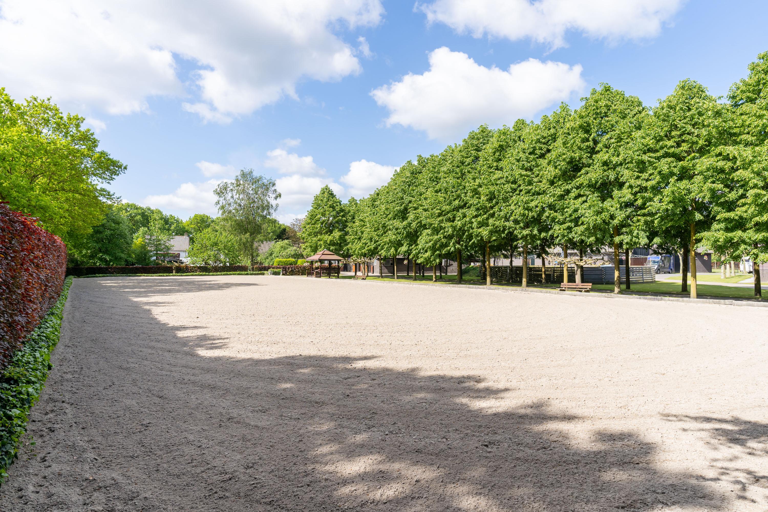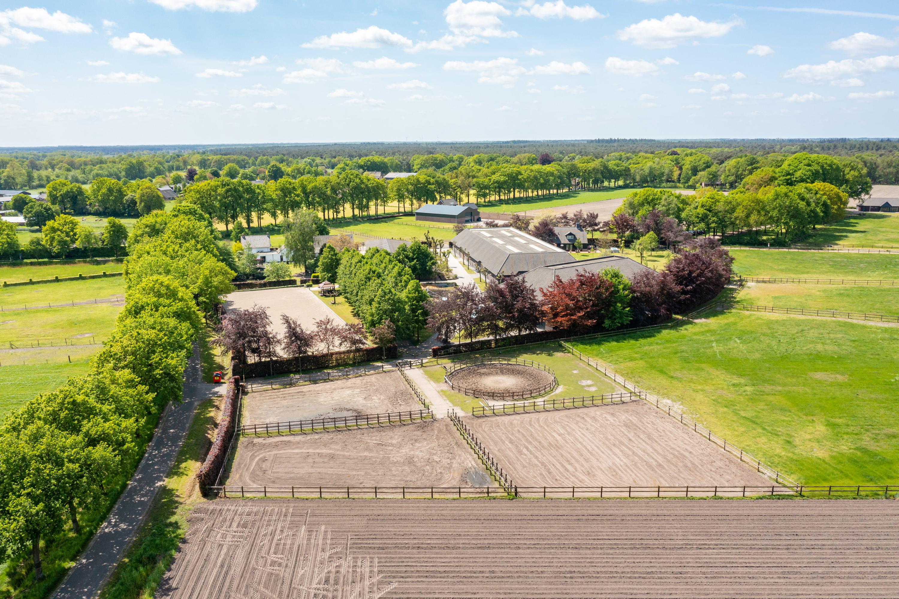 This beautiful, complete equestrian accommodation offers plenty of possibilities thanks to the presence of a detached house and living areas, a total of 33 horse stalls divided over various units, a spacious indoor and outdoor arena (approx. 22x62 metres), a storage shed with rearing stalls and large pastures. In addition, the property is situated in a beautiful location with plenty of privacy and on the edge of the Leenderbos forest with excellent riding opportunities!