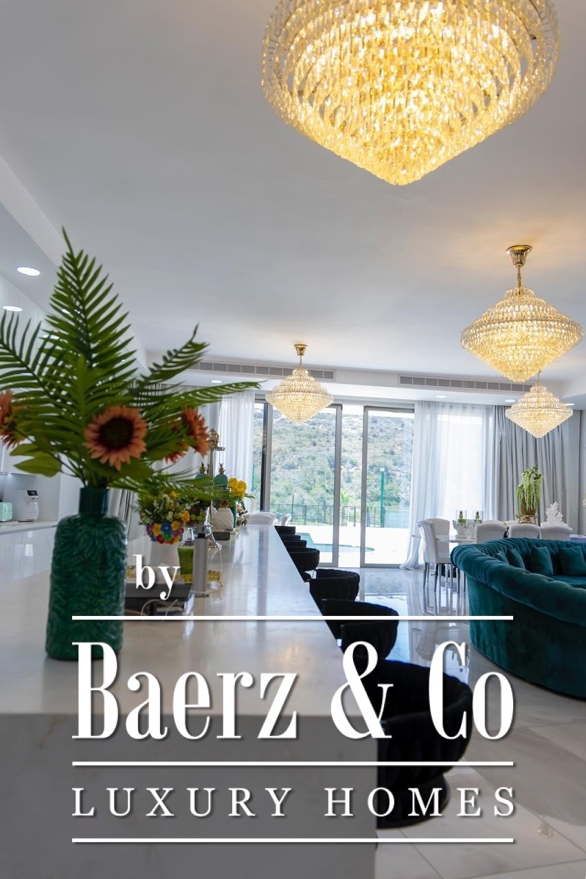 Crafted with elevated ceilings and fluid spatial transitions, the villa is arranged across two principal floors plus a full basement. Seven bedrooms are distributed for privacy and comfort, with five en-suite master suites, a guest room and separate housekeeper’s accommodation. Living spaces are defined by natural light and curated furnishings, underscored by premium finishes and a purposeful layout. Integrated smart home automation, underfloor heating and a VRV climate control system approach modern convenience with understated precision. A private cinema room and full CCTV security further express a discreet take on elite living.