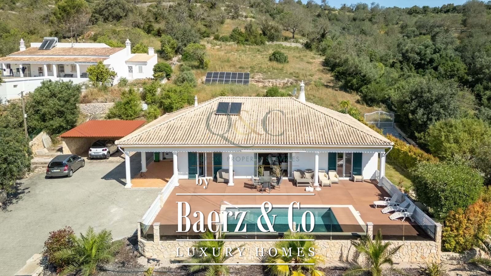 Twelve solar panels with four batteries, underfloor heating, double glazing, electric shutters, an alarm system, and air conditioning combine to offer modern energy efficiency and security. This well-kept home is suited to both full-time residence and as a tranquil holiday retreat, embodying the essence of a luxury villa for sale in Loulé.