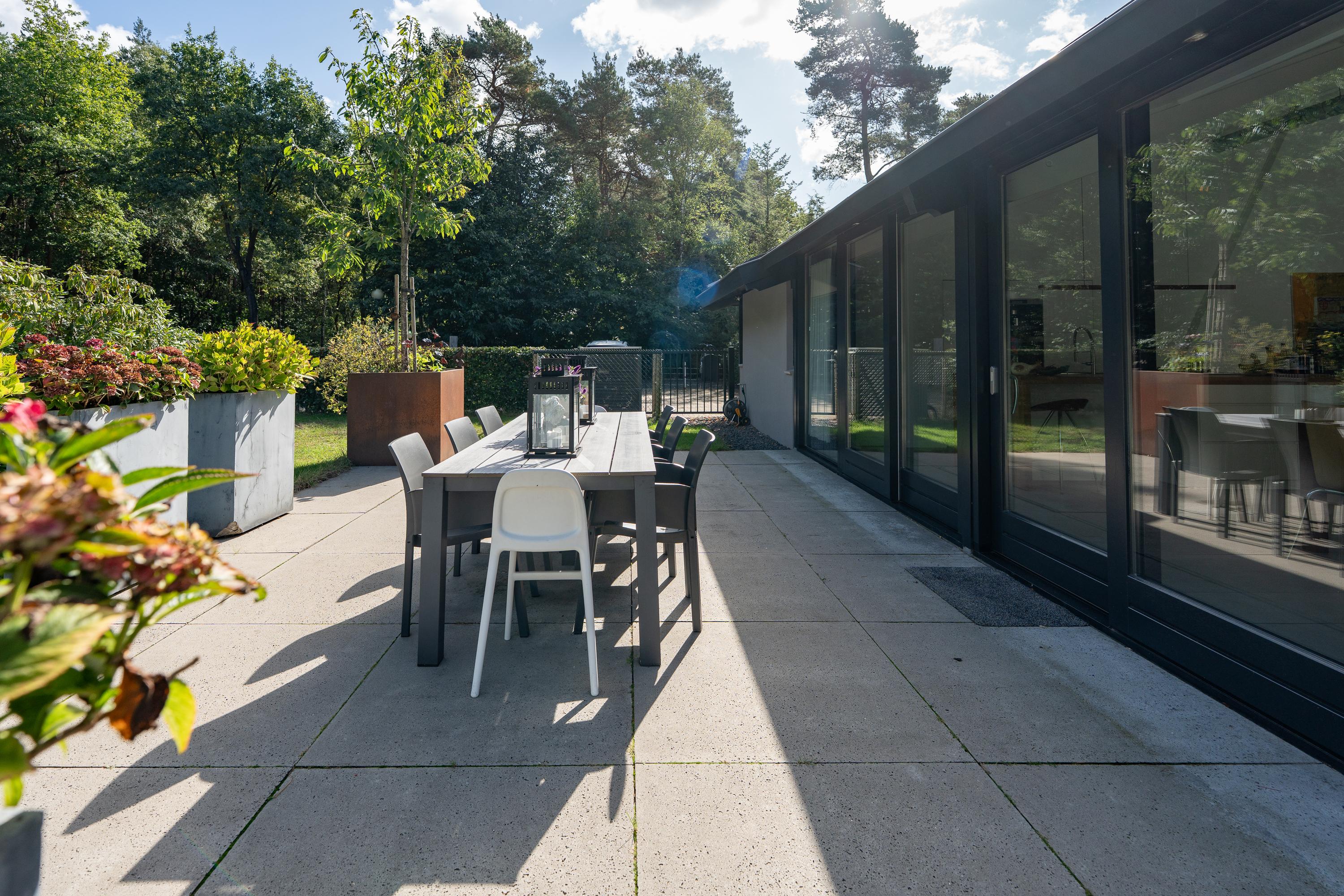 The property is surrounded by a well-maintained front, side and back garden, with several terraces so you can find a nice spot in the sun or shade at any time of the day. There is also an additional storage room. The fenced swimming pond is a real eye-catcher and gives the garden a special look. There is also ample parking space on the property.