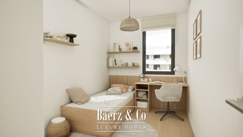 Two terraces together provide a total outdoor area of around 91 m², inviting a versatile experience of city and urban views. Natural light and smooth transitions between indoor and outdoor spaces enhance the sense of openness, beautifully balancing practicality with elegance. The penthouse is contained within a gated community, including amenities such as swimming pools, an indoor pool, spa, gym, coworking area, green spaces, private parking, lift, and storage room.