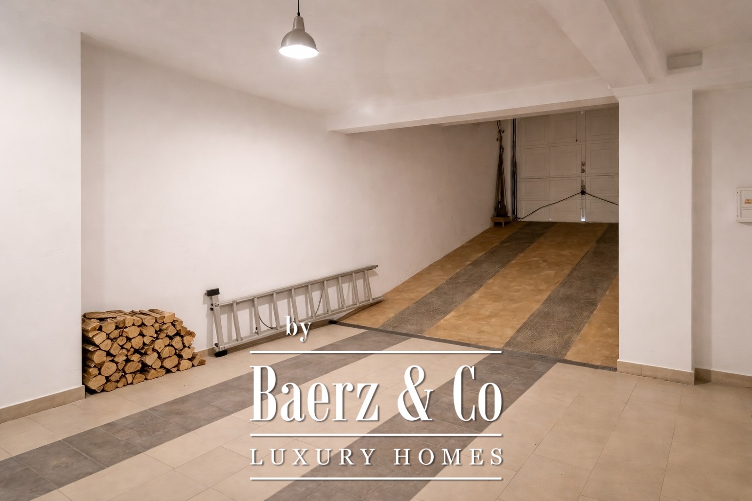 The home features four bedrooms and four bathrooms, complemented by thoughtful amenities including an internal elevator, fireplace, air conditioning, solar water heater, desalination system, double glazing, built-in wardrobes, laundry room, and storage rooms. A closed parking area, electric garage gate, and a roof garden enhance both convenience and security.