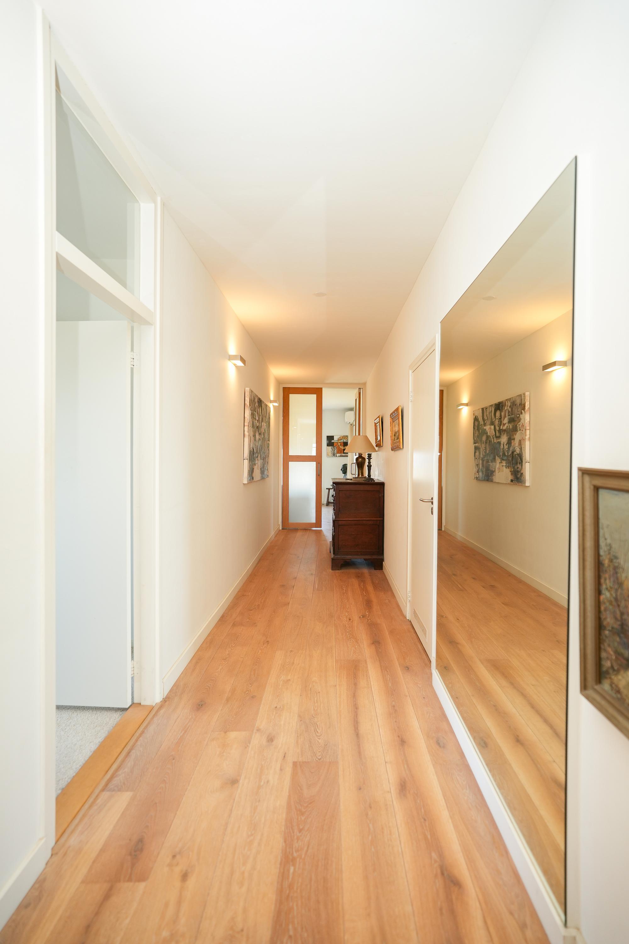 The apartment was created in 2009 by combining two separate units (numbers 44 and 46), resulting in an exceptionally spacious and well-organised home with a clear separation between the living area (44) and the sleeping wing (46). During this process, the apartment was fully and high-quality renovated. A solid oak floor in the living room and hallway, combined with clean finishes and abundant natural light, creates a warm and luxurious atmosphere. Large windows on all sides provide impressive sightlines and panoramic views over the Waal Bridge, the Ooijpolder and the city. Privacy, comfort and refined finishes come together here in a truly unique living experience.