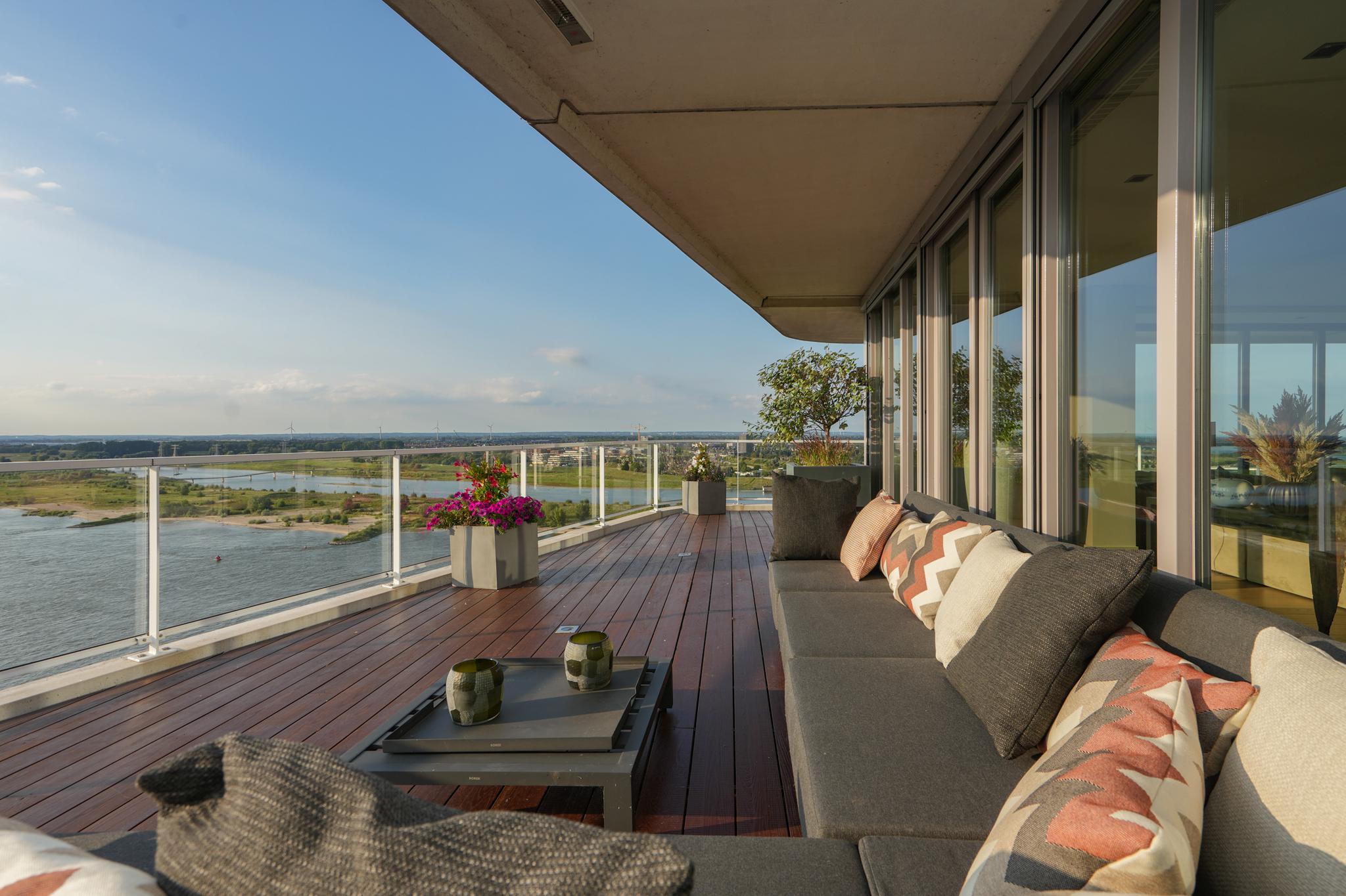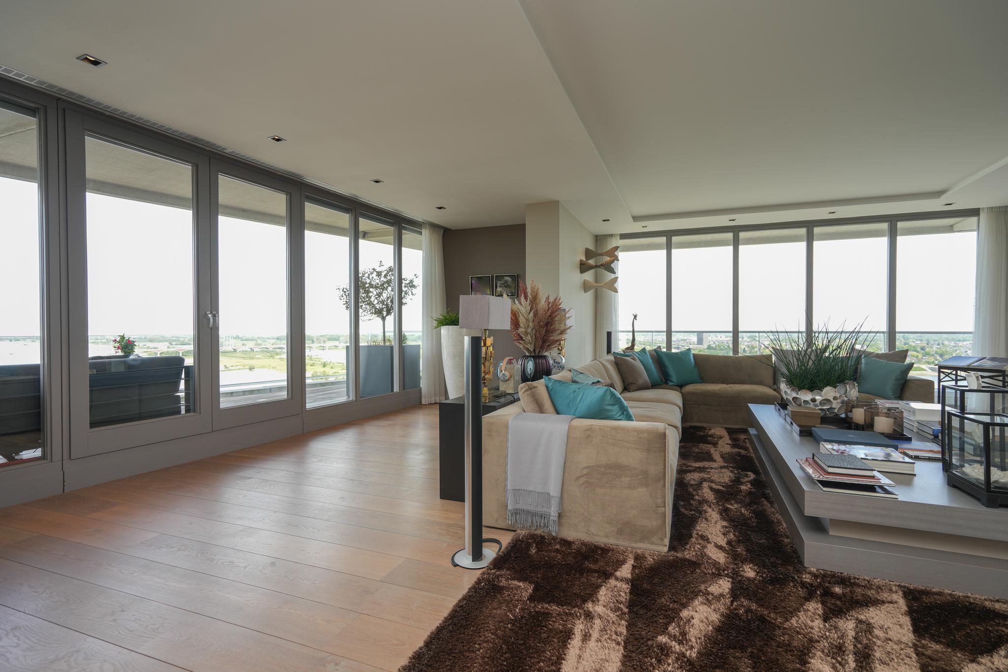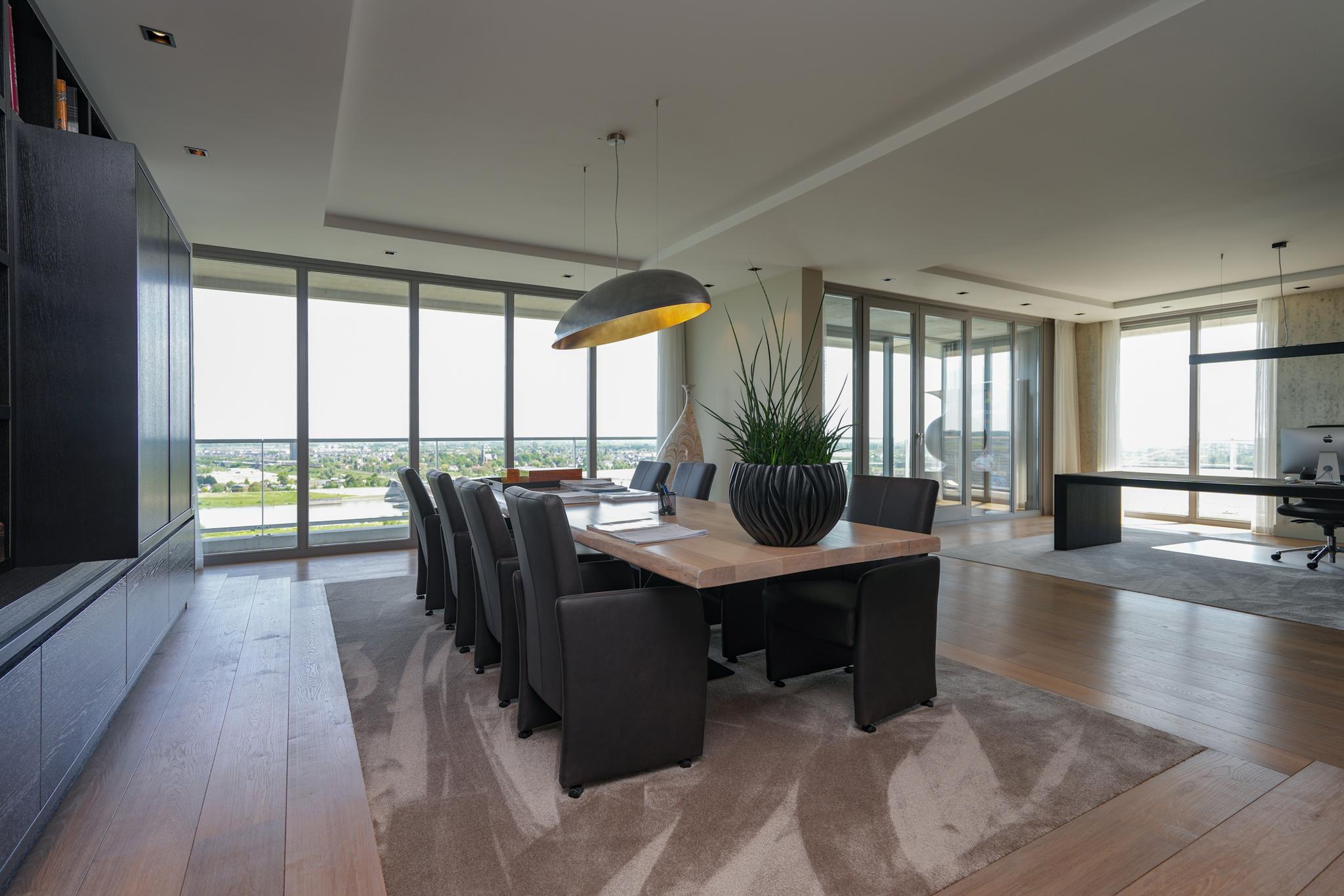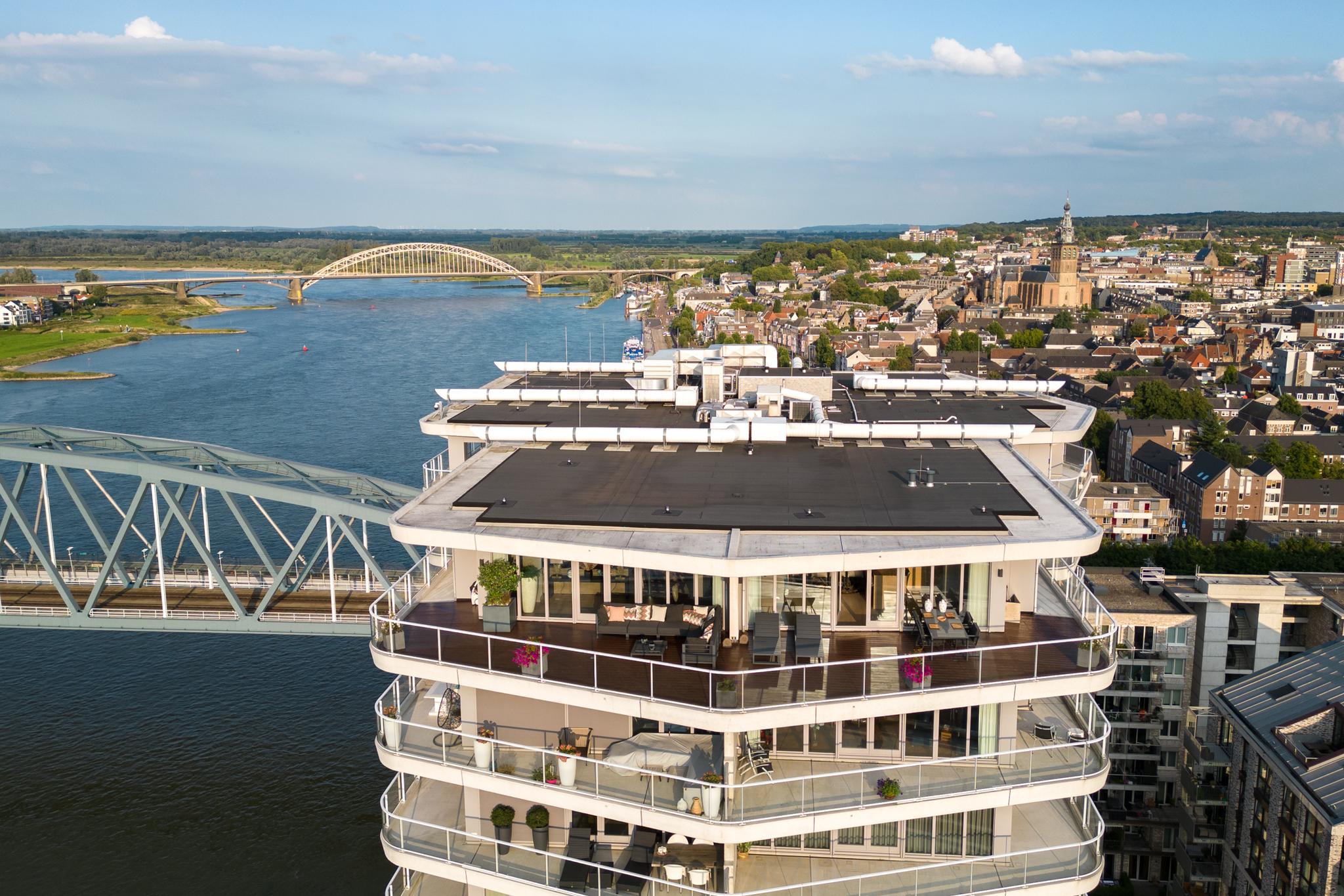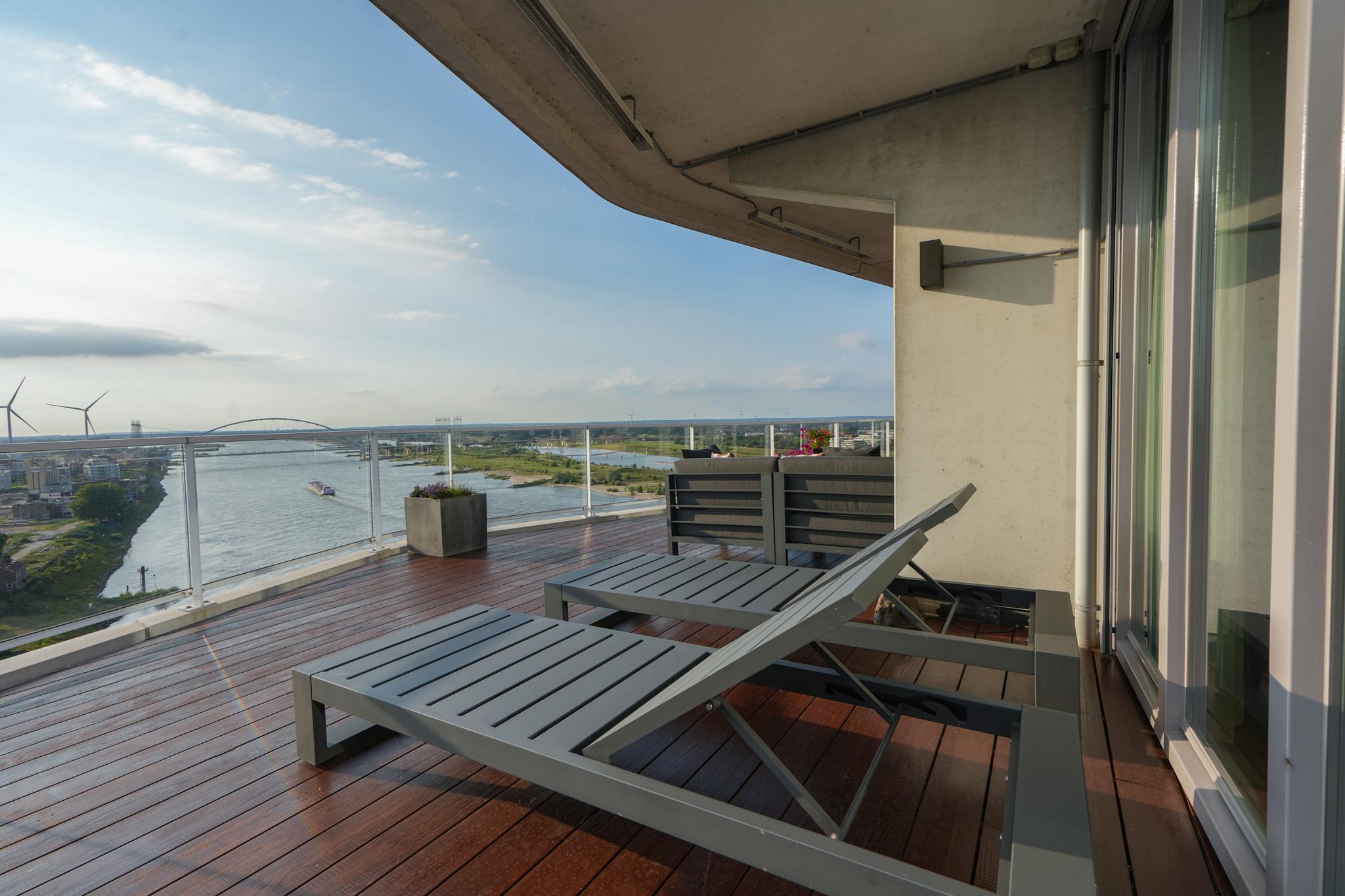 Extremely spacious and very exclusive penthouse with an unparalleled, breathtaking view. Situated on the 16th floor of De Lunet, directly on the bank of Waal River.