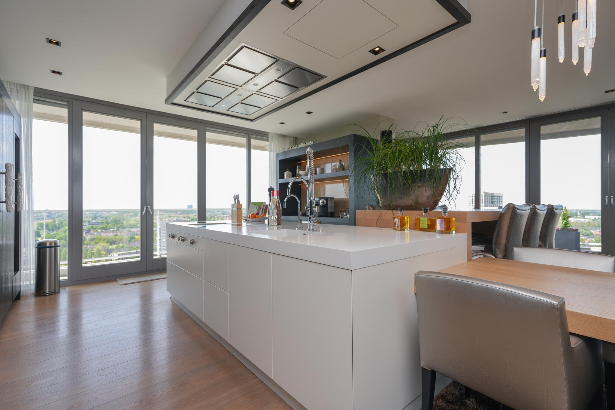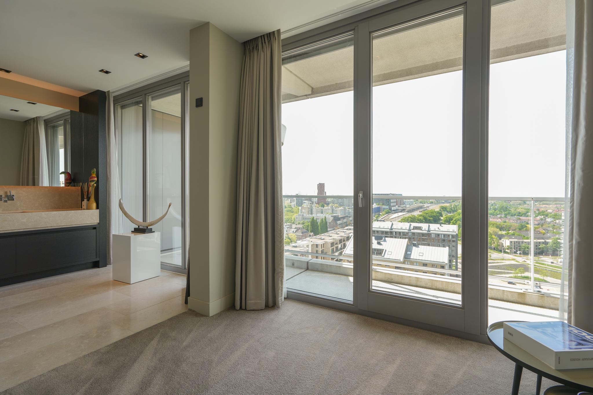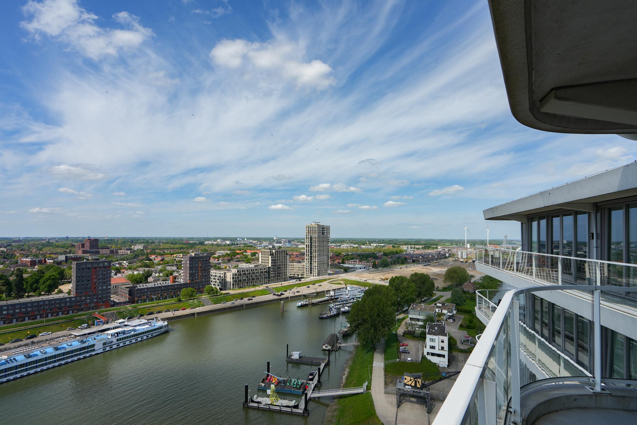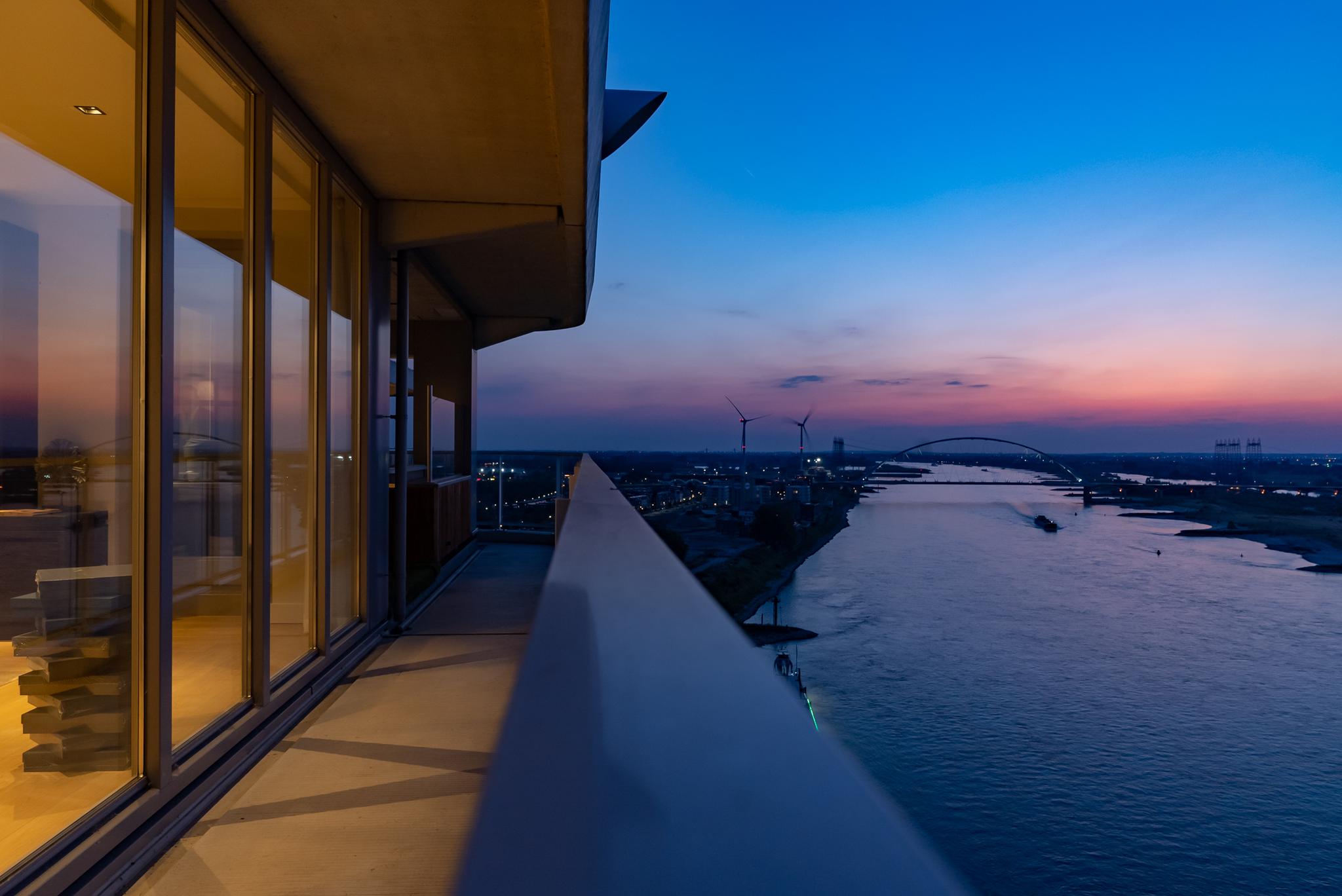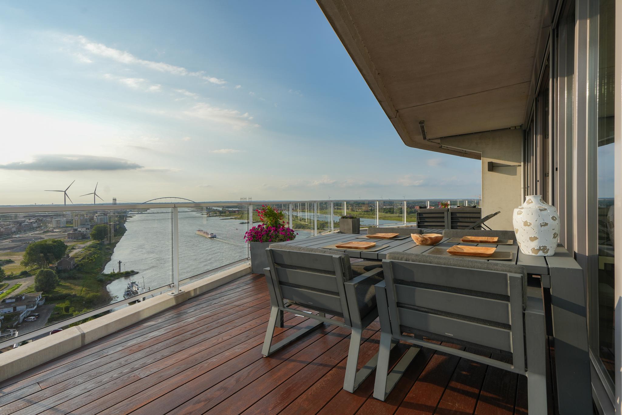 Extremely spacious and very exclusive penthouse with an unparalleled, breathtaking view. Situated on the 16th floor of De Lunet, directly on the bank of Waal River.