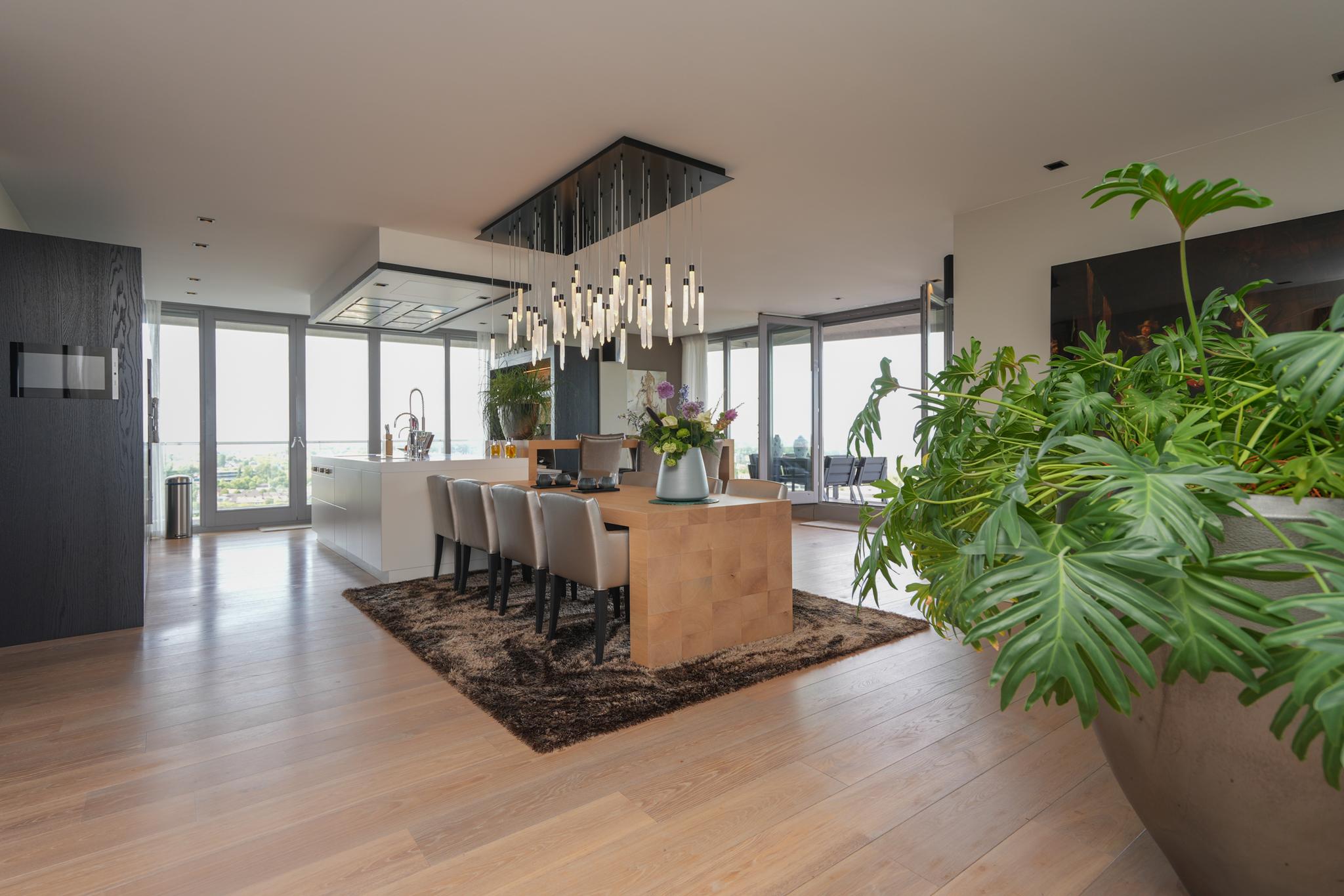 The penthouse can be accessed directly from the parking garage by elevator, which opens on to the hall of the home on the top floor. Majestic, tall hallways lead to each individual room. In addition to the generous yet welcoming living room with a captivating view of Waal River, this extremely luxurious home includes 3 spacious bedrooms with 3 luxury bathrooms. The apartment also accommodates a large office, spacious meeting room, inciting lounge area with a bar, a high-end gym, sauna, steam shower and a convenient laundry/ironing room. Of course, there is plenty of storage in the apartment.