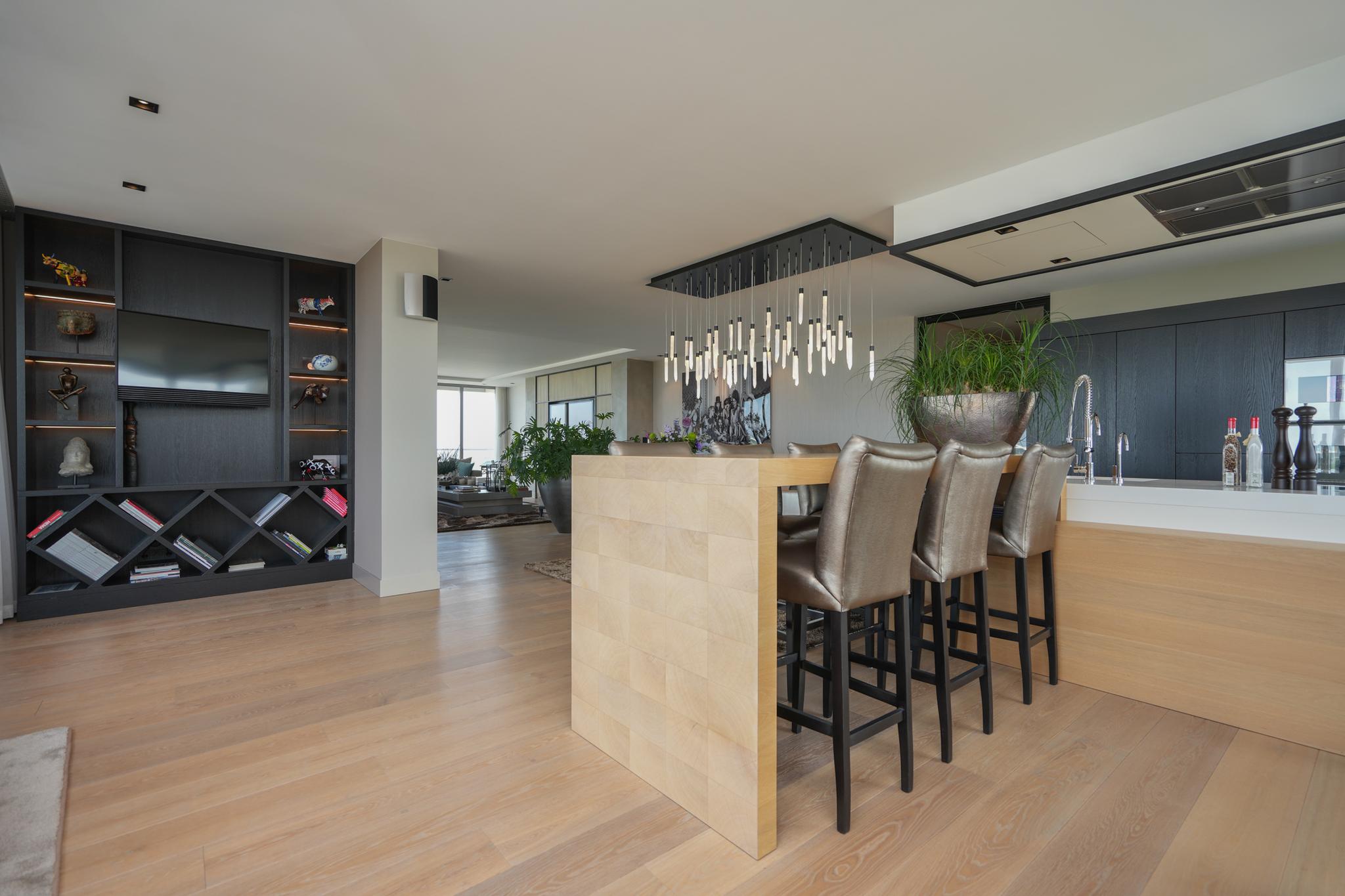 The penthouse is fully furnished by Pieter Laureys. If so desired, the luxury furnishings can be included in the sale.