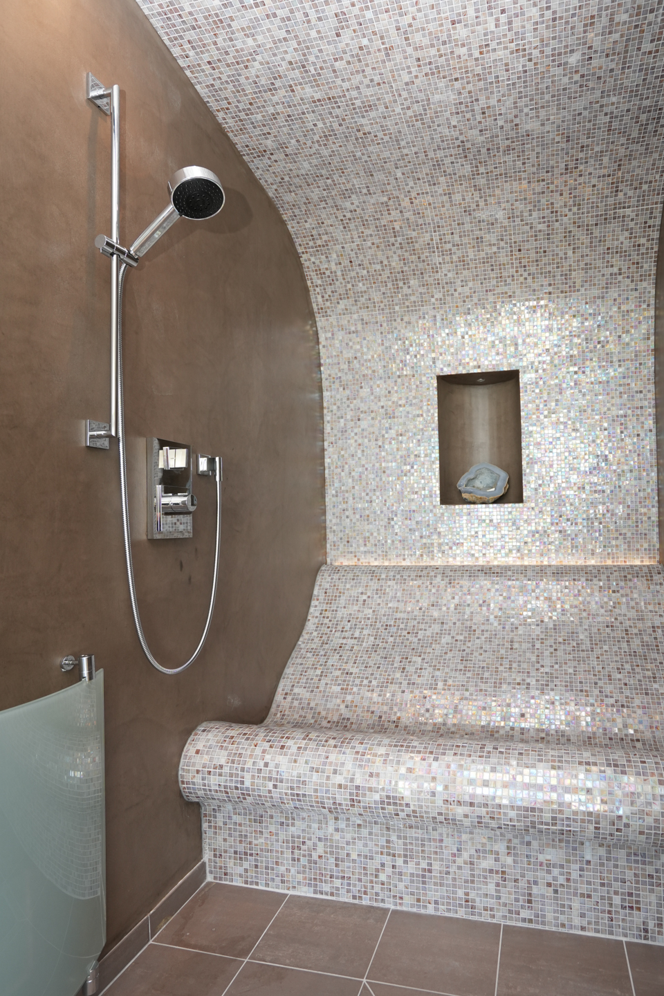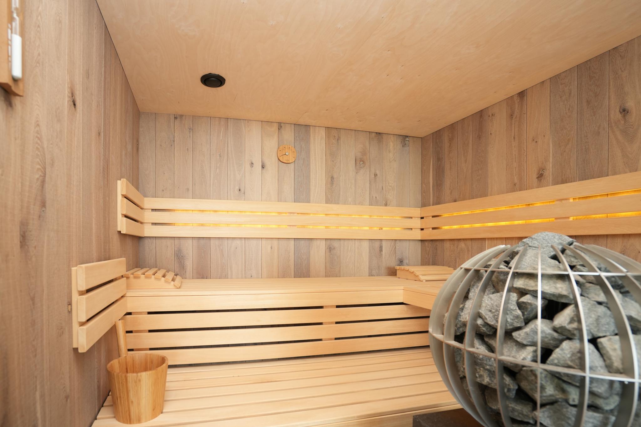 • Large gym with a wide range of advanced fitness equipment and adjacent spa with a sauna and steam shower.