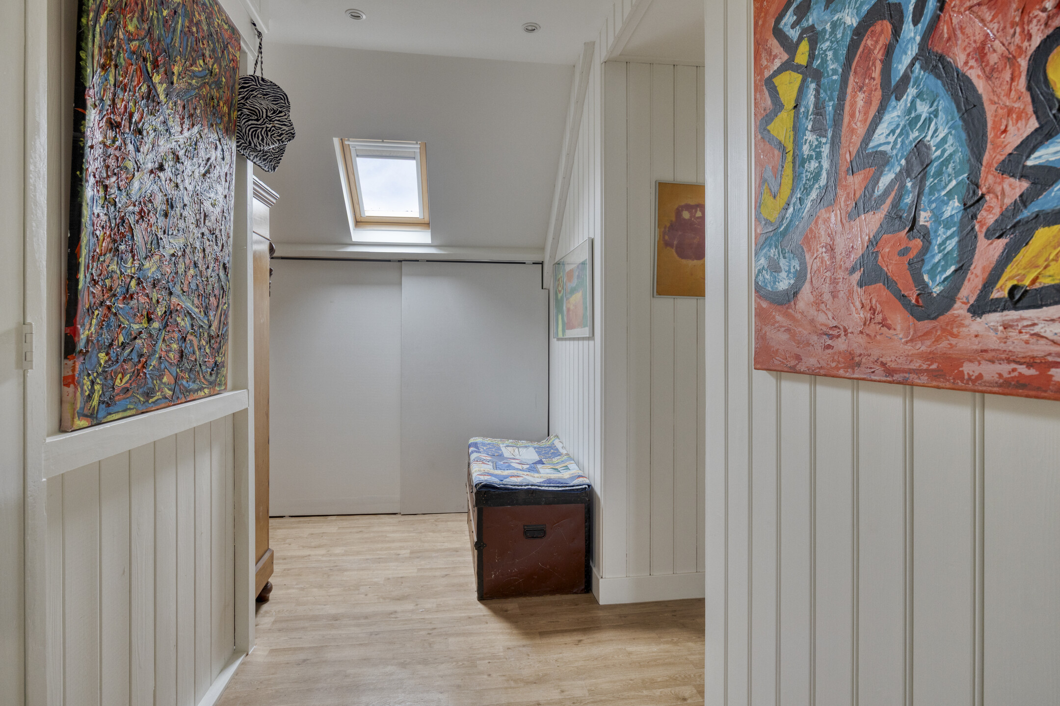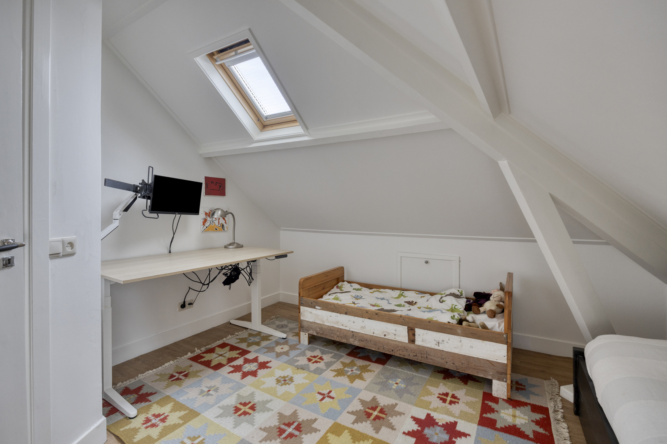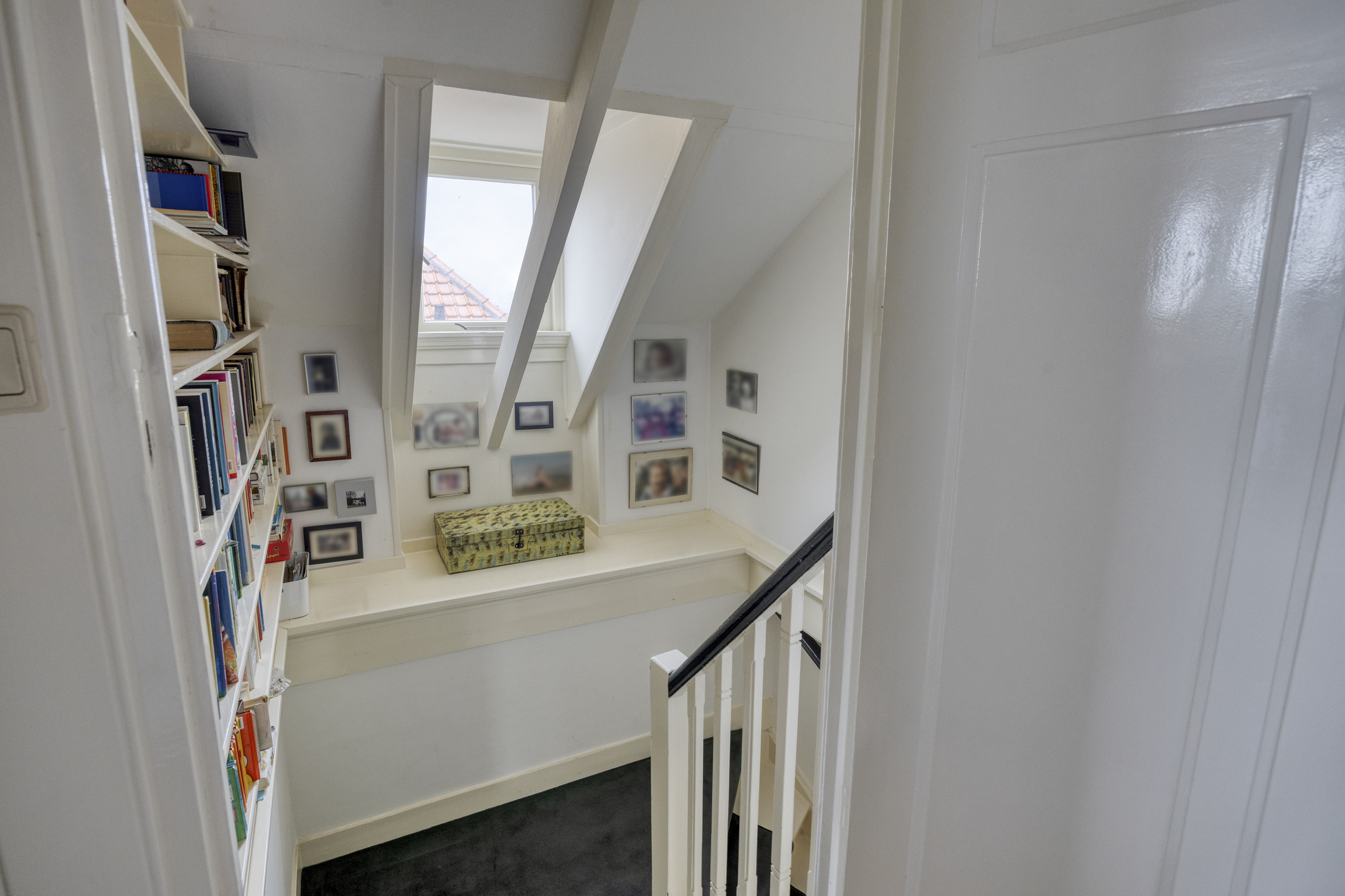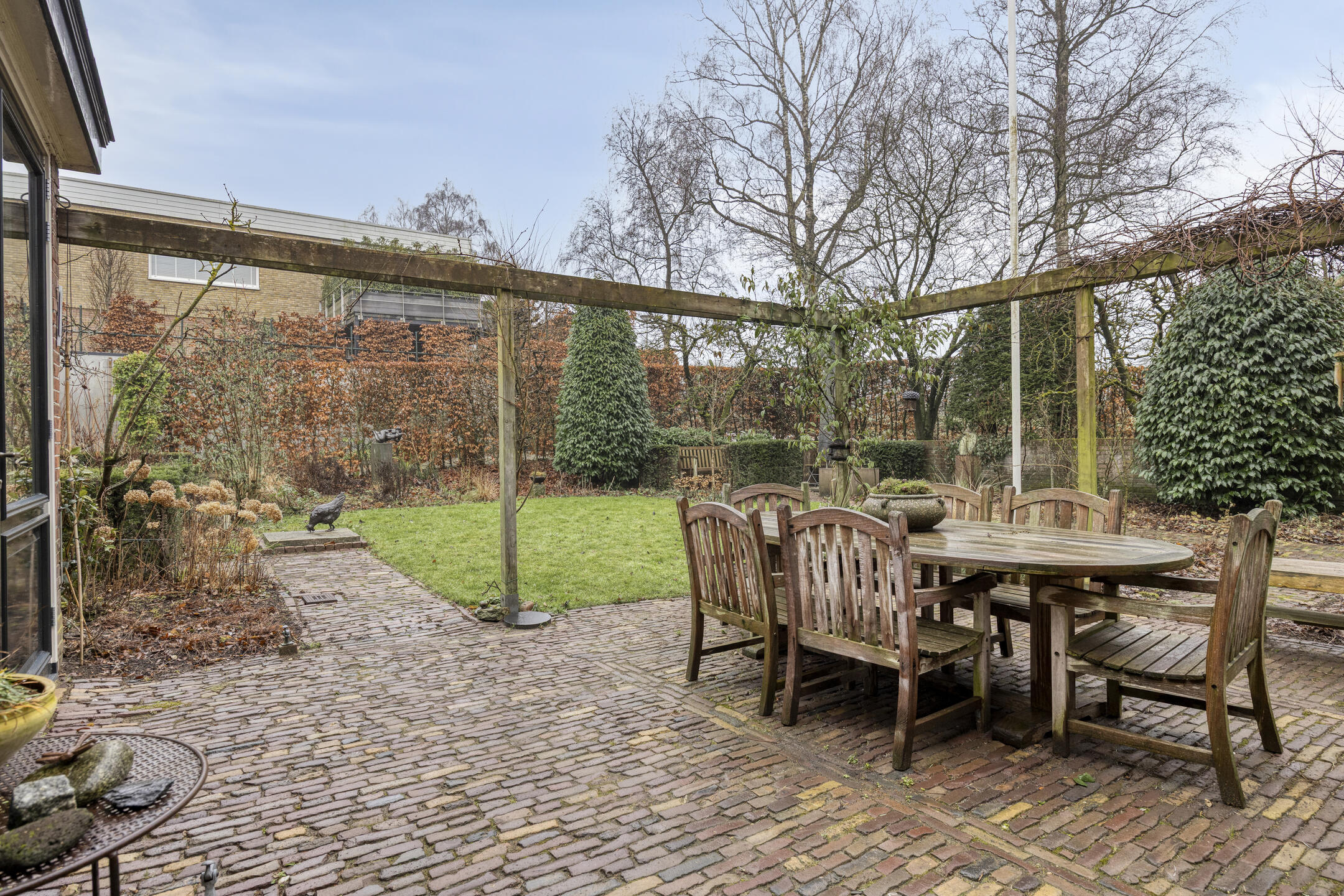 Life along Hoge Haerlaan means enjoying tranquility and space, with daily amenities close by. The ground floor welcomes you via a covered entrance and spacious vestibule, leading to a home office framed by an elegant bay window. The living room’s expansive windows and conservatory invite daylight and open outwards into the serene south east-facing garden, enriched with multiple terraces and layered greenery. A fireplace-warmed kitchen features high-end appliances and opens onto a covered terrace. Practical spaces extend to a larder-height cellar, utility room, and ample garage.