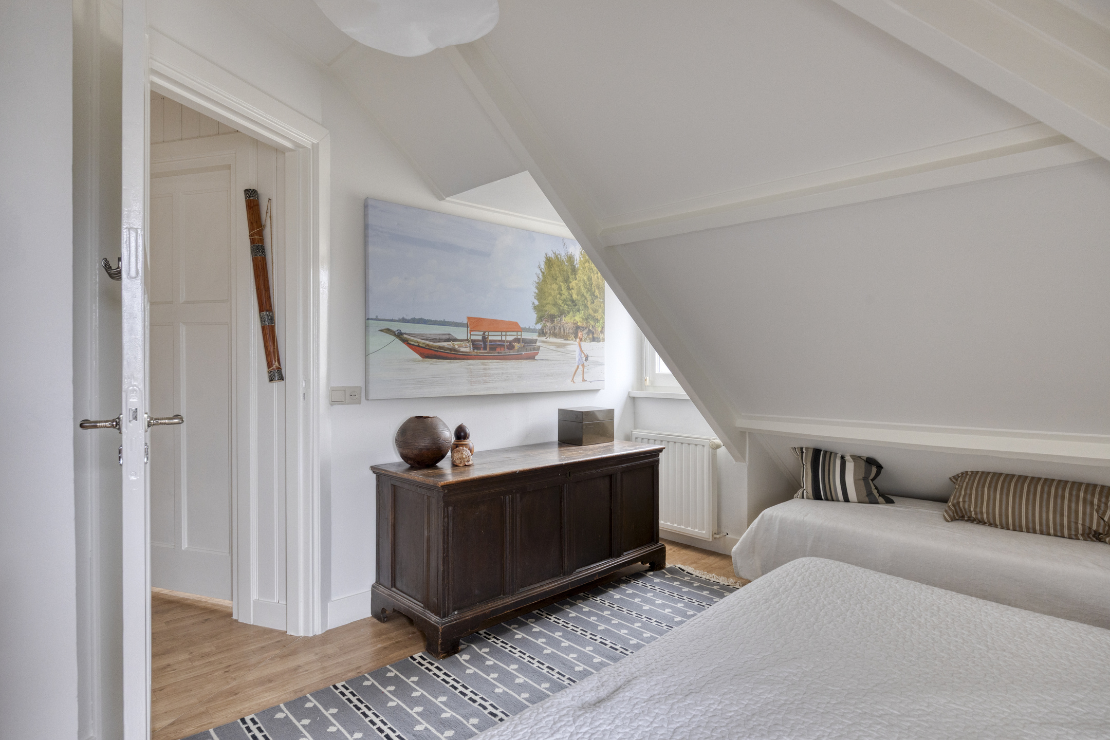 Detached house Oldenzaal provides five bedrooms across three levels, including a master suite with balcony views onto the surrounding countryside. Two bathrooms offer comfort, while original joinery, partial underfloor heating, solar panels, comprehensive insulation, and energy class C add further appeal. A sense of privacy, architectural quality, and continuity is felt in every space.