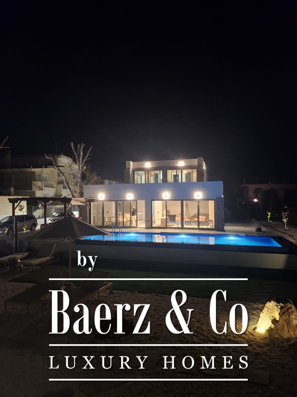 This beachfront villa Politika Beach stands directly on the shoreline, offering absolute privacy and uninterrupted sea views that frame the North Euboean Gulf. With no roads or barriers, the transition from home to beach is fluid, reinforcing a rare sense of tranquility and exclusivity. The property occupies a 1,000 m² private plot and provides 170 m² of living space focused on seamless indoor-outdoor living, panoramic vistas, and natural light.