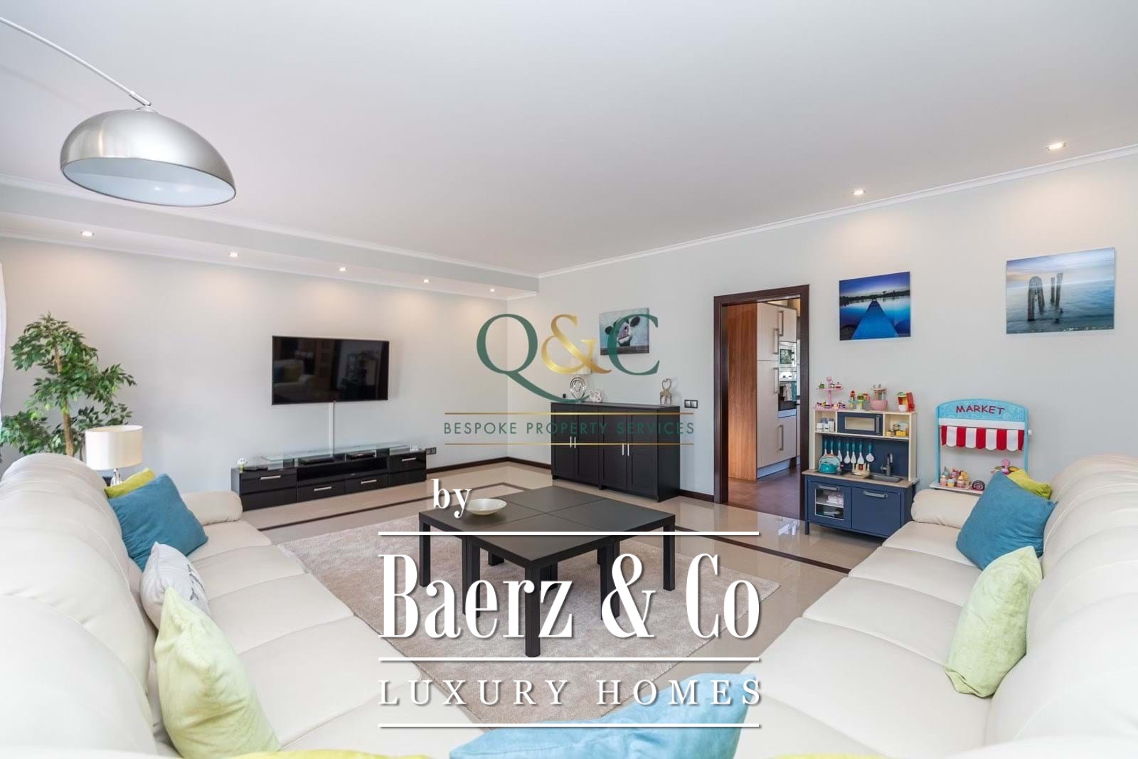 On the mezzanine, two bright double bedrooms share a private balcony that spans the villa, inviting sunlight and privacy. A double garage with electric gates and integrated storage anchors the basement, while refined protections such as a security alarm system, CCTV, and smart remote monitoring provide reassurance. The mature garden ensures secluded recreation, complemented by a shaded terrace ideal for alfresco dining.