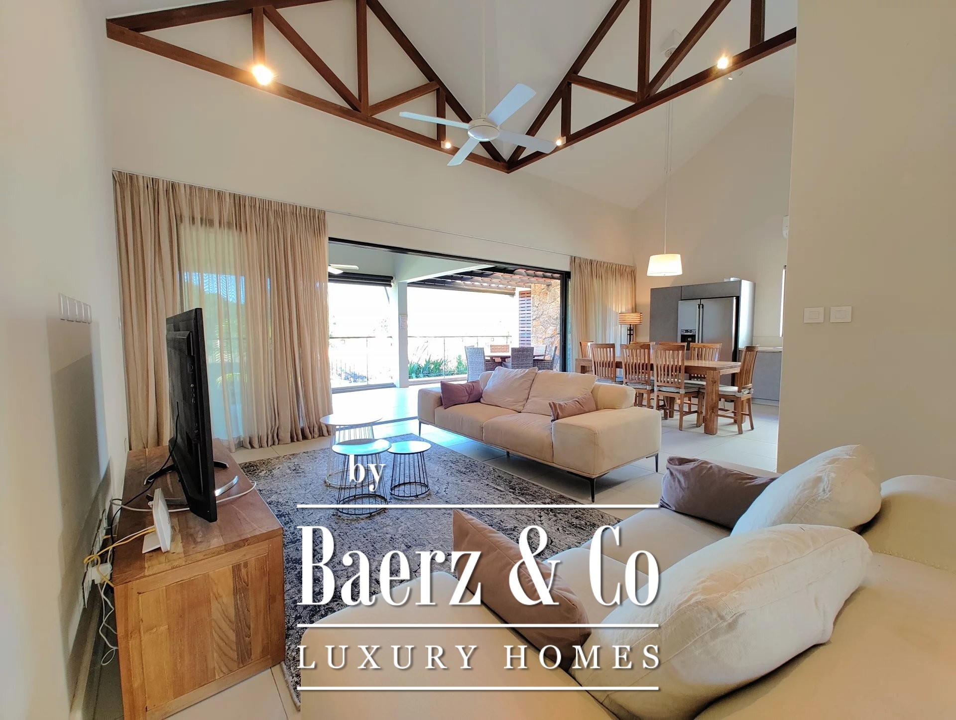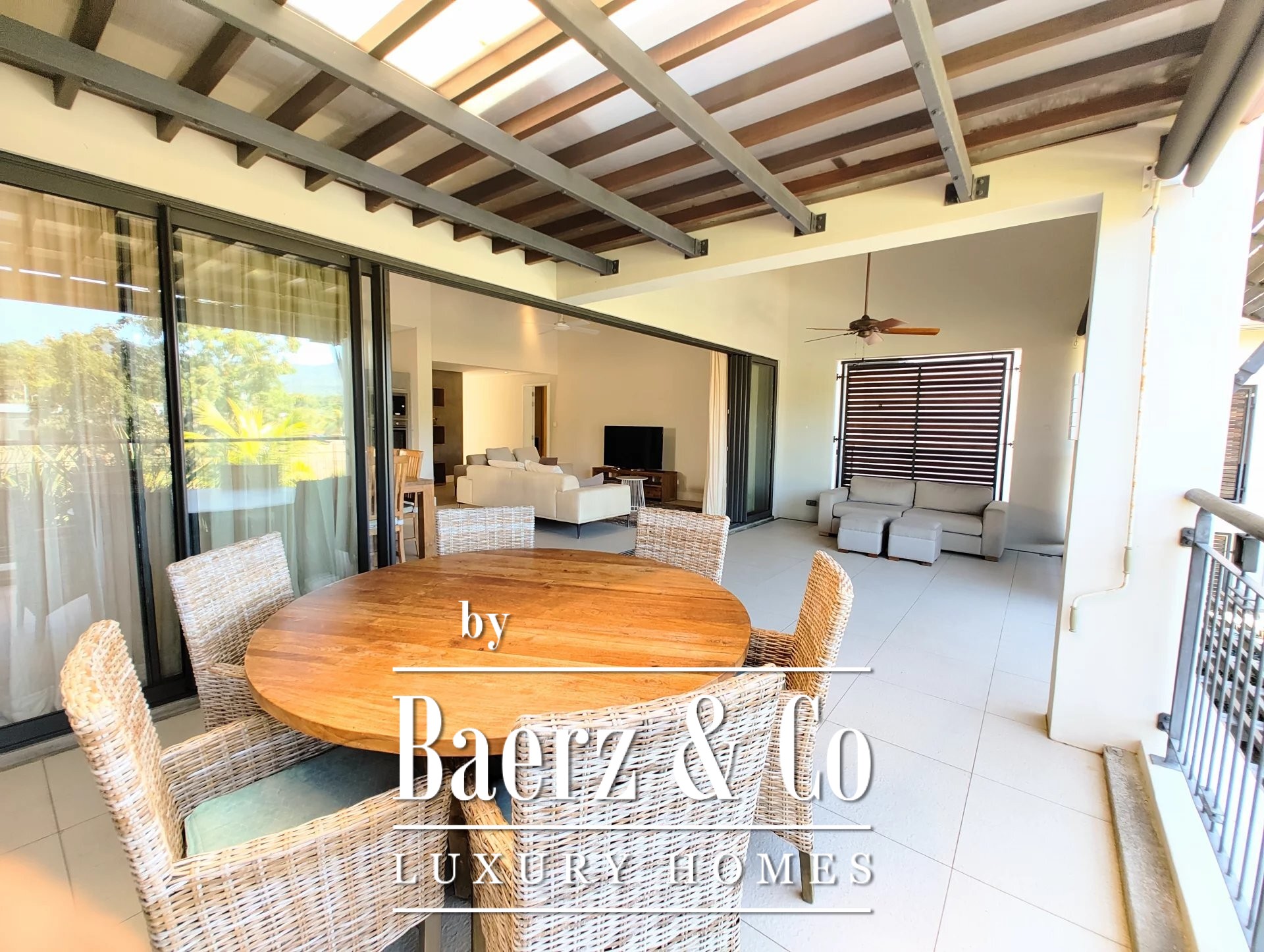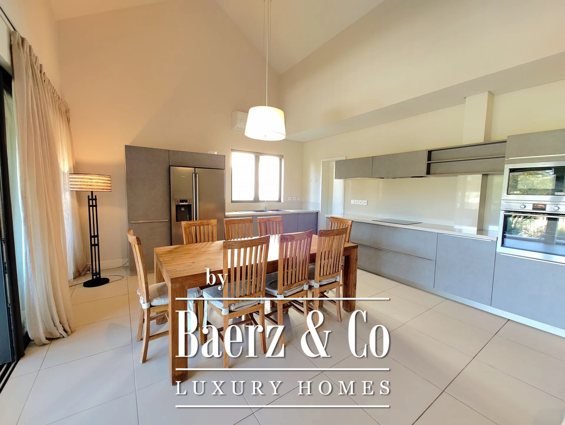 The covered terrace invites open-air moments, blurring indoor and outdoor living and enhancing the Mediterranean atmosphere. Nearby, renowned restaurants, a tennis court, and a spa offer daily delight, while the proximity to shops, top schools, the beaches of Le Morne, and three leading golf courses supports both leisure and investment appeal. Tailored maintenance and dedicated boat services provide a sense of discretion and ease for those seeking a secure and effortless lifestyle.