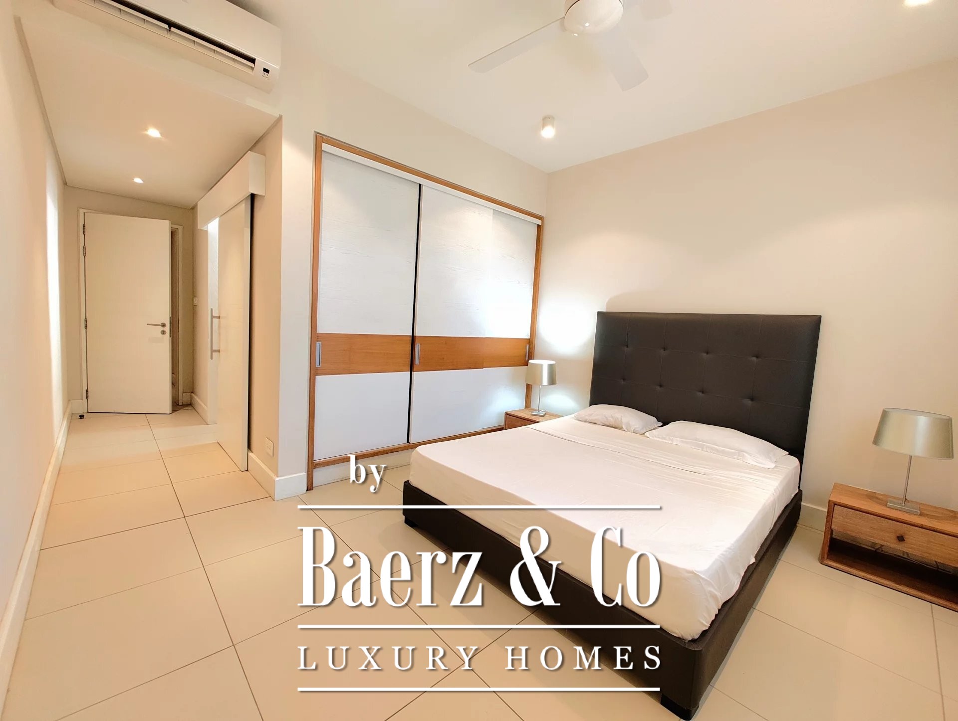 Air-conditioning, double glazing, and security service support comfort and peace of mind. This luxury apartment for sale in Mauritius is situated in a sought-after condominium with pool and fitness access, embracing both the energy of Rivière Noire and the serenity of island life.