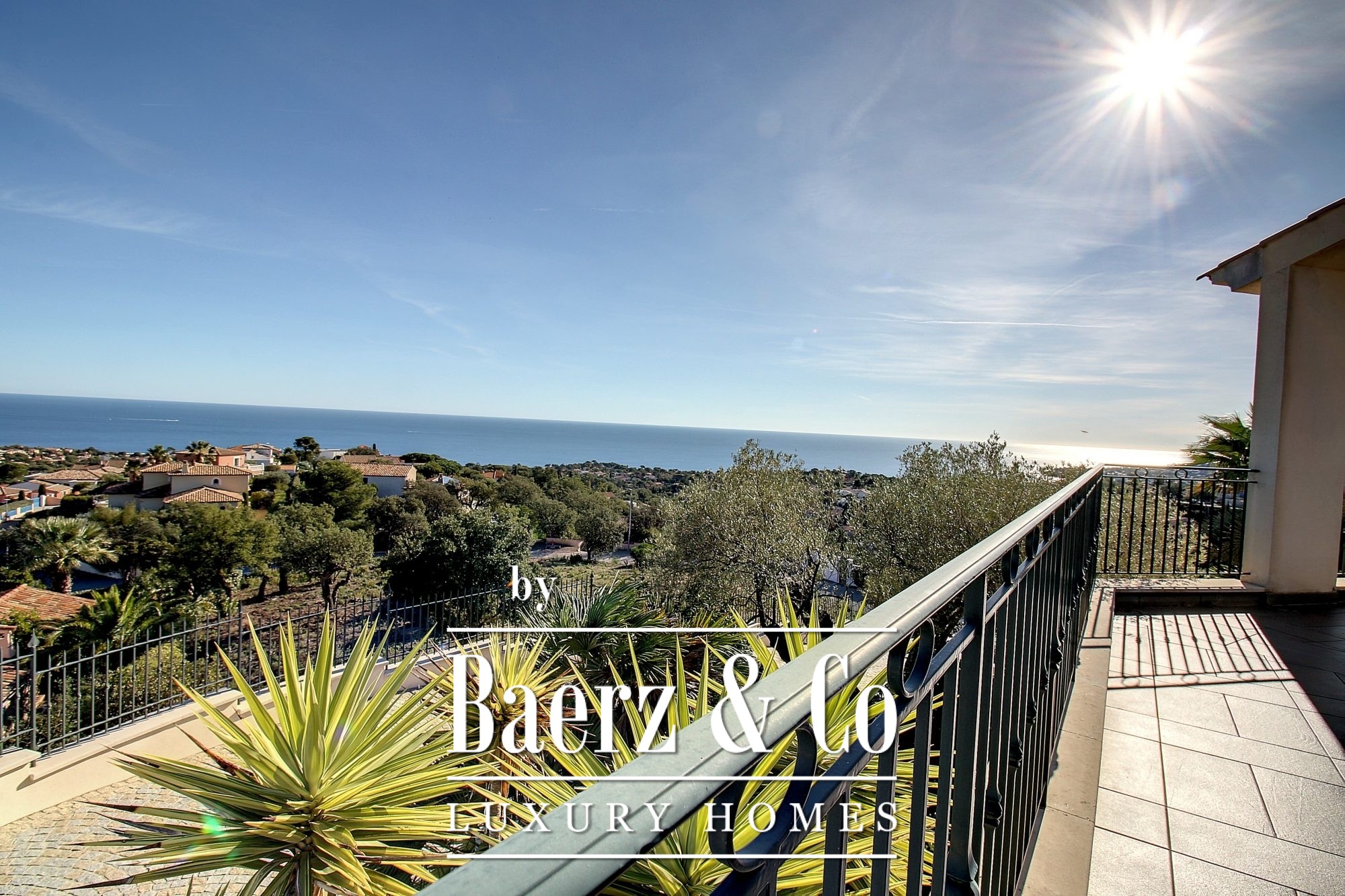 Villa Saint-Aygulf with panoramic sea view blends architectural comfort with considered design, set in a prestigious setting. This property offers approximately 200 m² arranged over three levels, where every element is curated for those who favour restrained elegance and sweeping Mediterranean vistas.